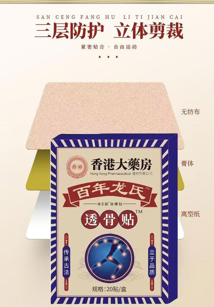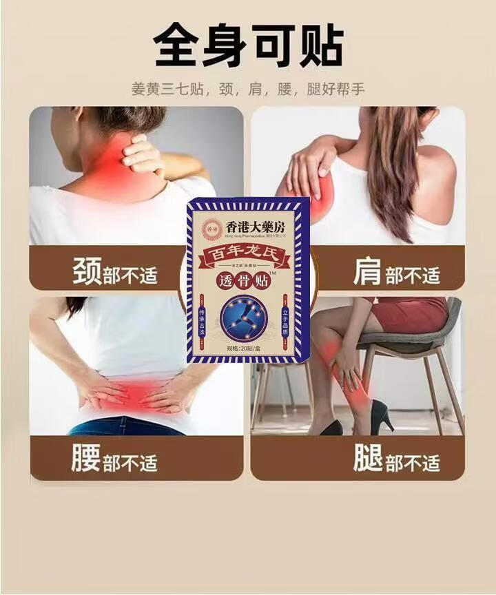 颈椎腰椎膝盖肩周贴关节疼痛发热膏药贴关节折骨贴正宗香港透骨贴 一盒1袋20贴【体验装】