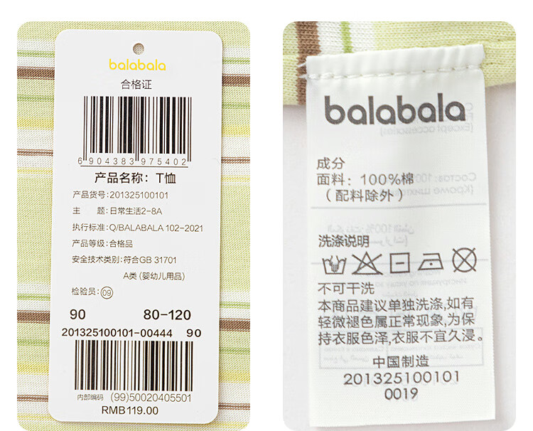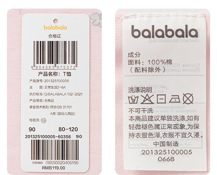 迷你巴拉巴拉男女童长袖套装潮流拼色上衣长裤两件套春季新款 海盐千层 100 【91-100cm 12-16kg】
