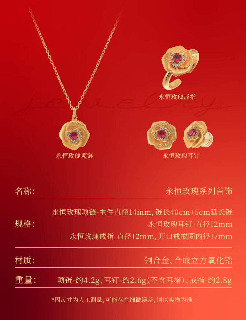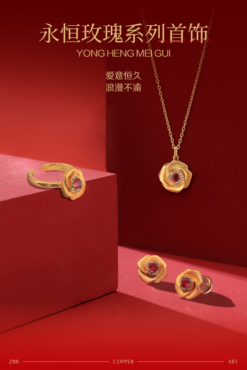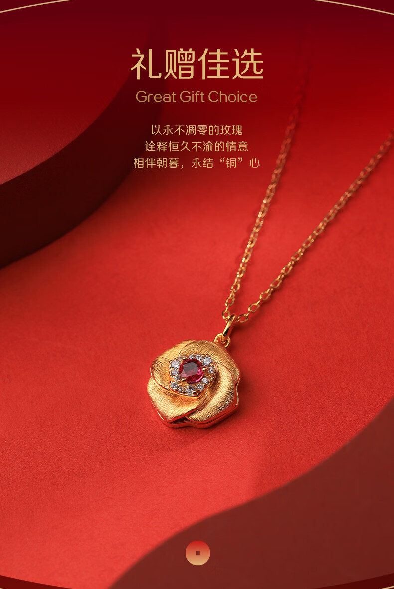 朱炳仁铜永恒玫瑰首饰套装首饰项链手链耳钉 礼物送女友母亲铜首饰挂件 永恒玫瑰项链