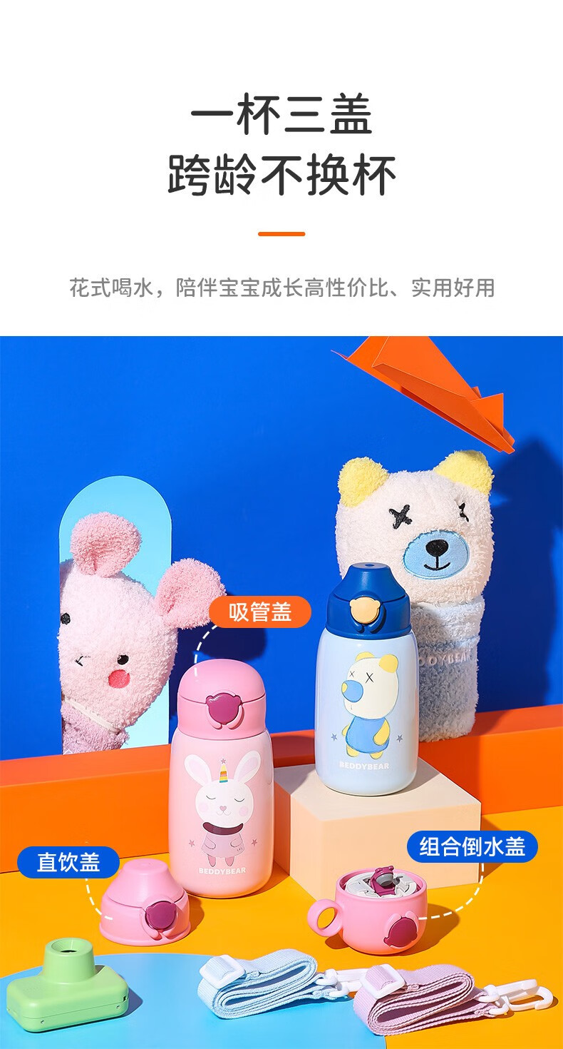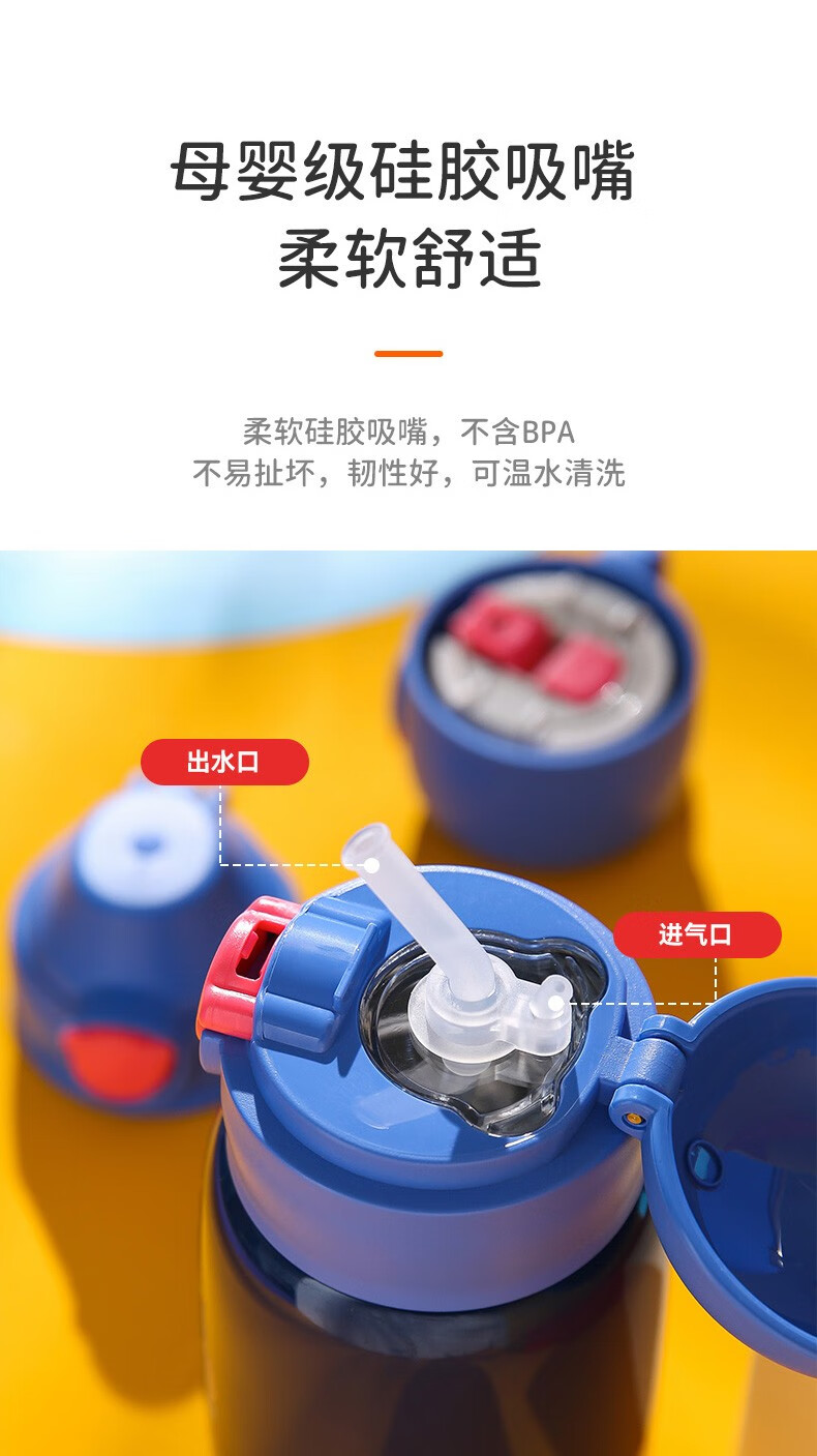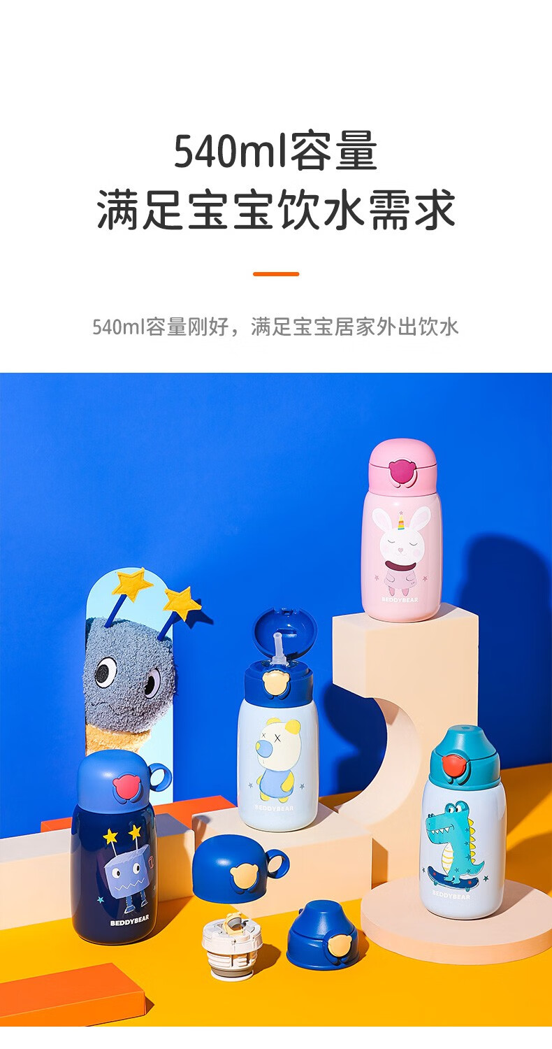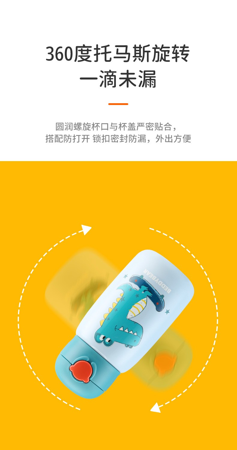 杯具熊(BEDDYBEAR)儿童保温杯小学生3-6岁水杯大容量吸管杯 小拱门杯-幸运恐龙480ml【一杯两盖】