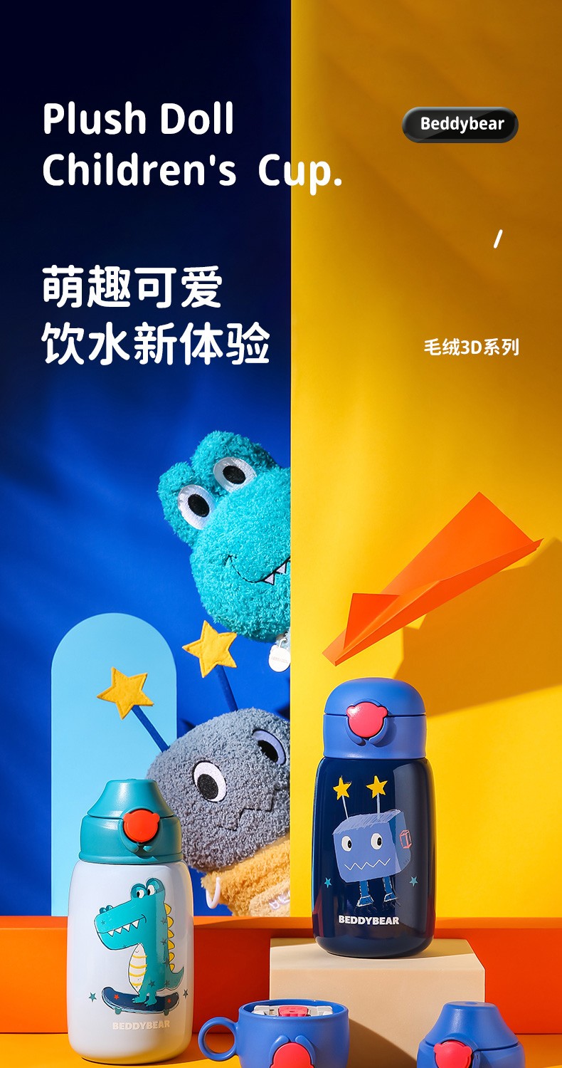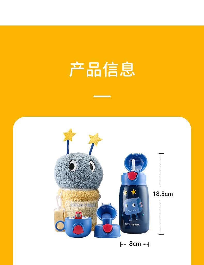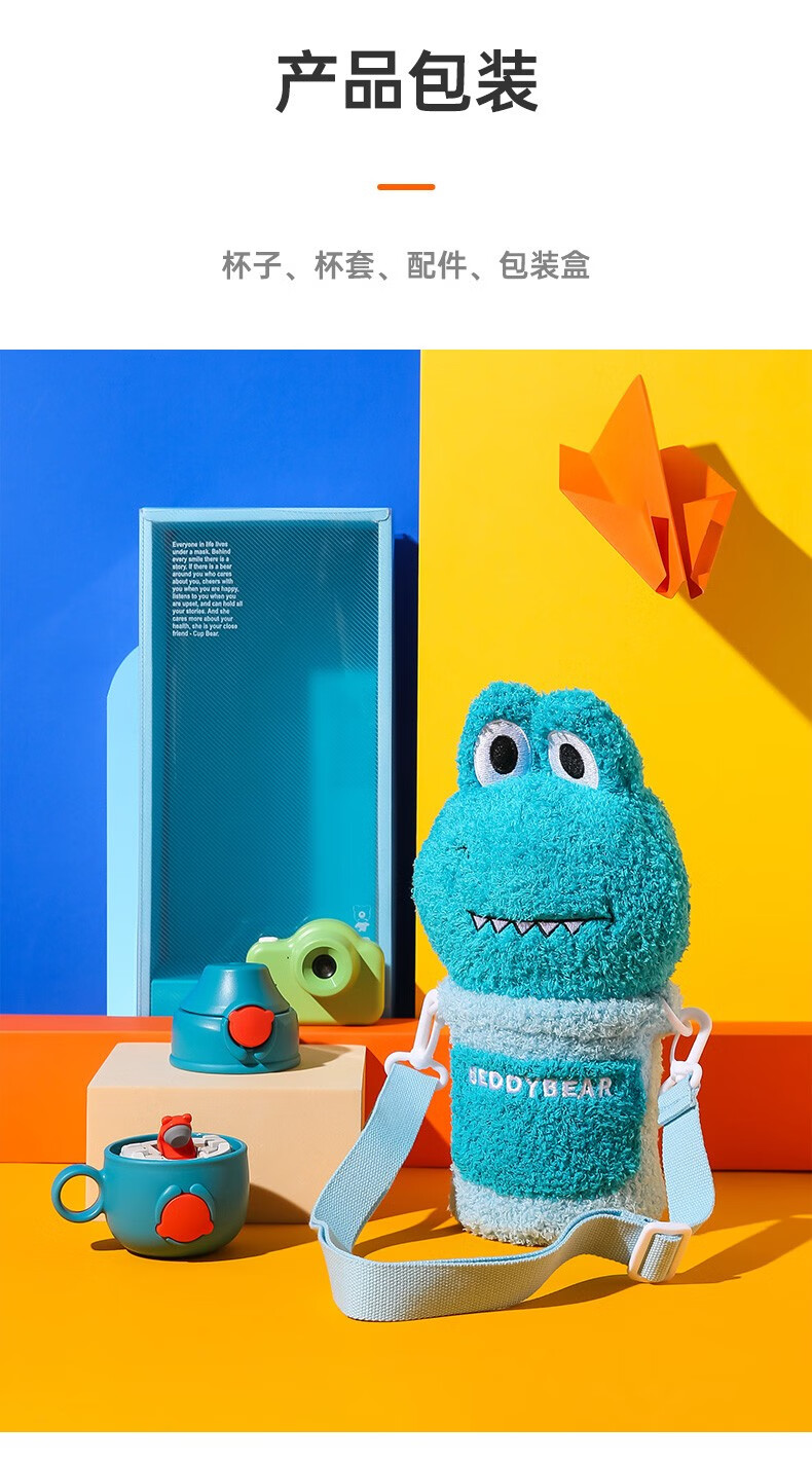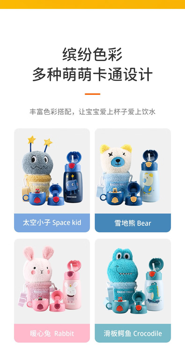 杯具熊(BEDDYBEAR)儿童保温杯小学生3-6岁水杯大容量吸管杯 小拱门杯-幸运恐龙480ml【一杯两盖】