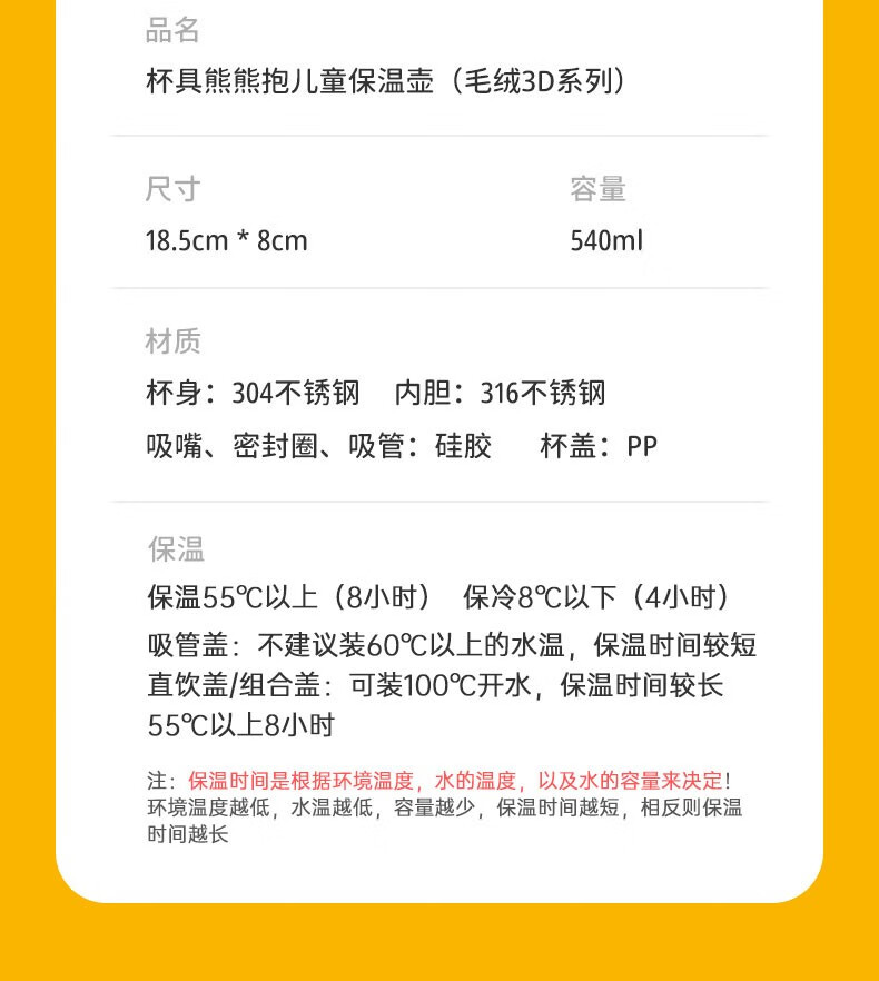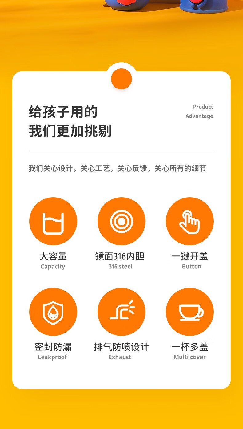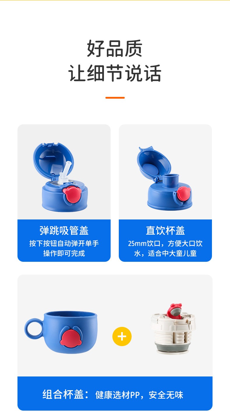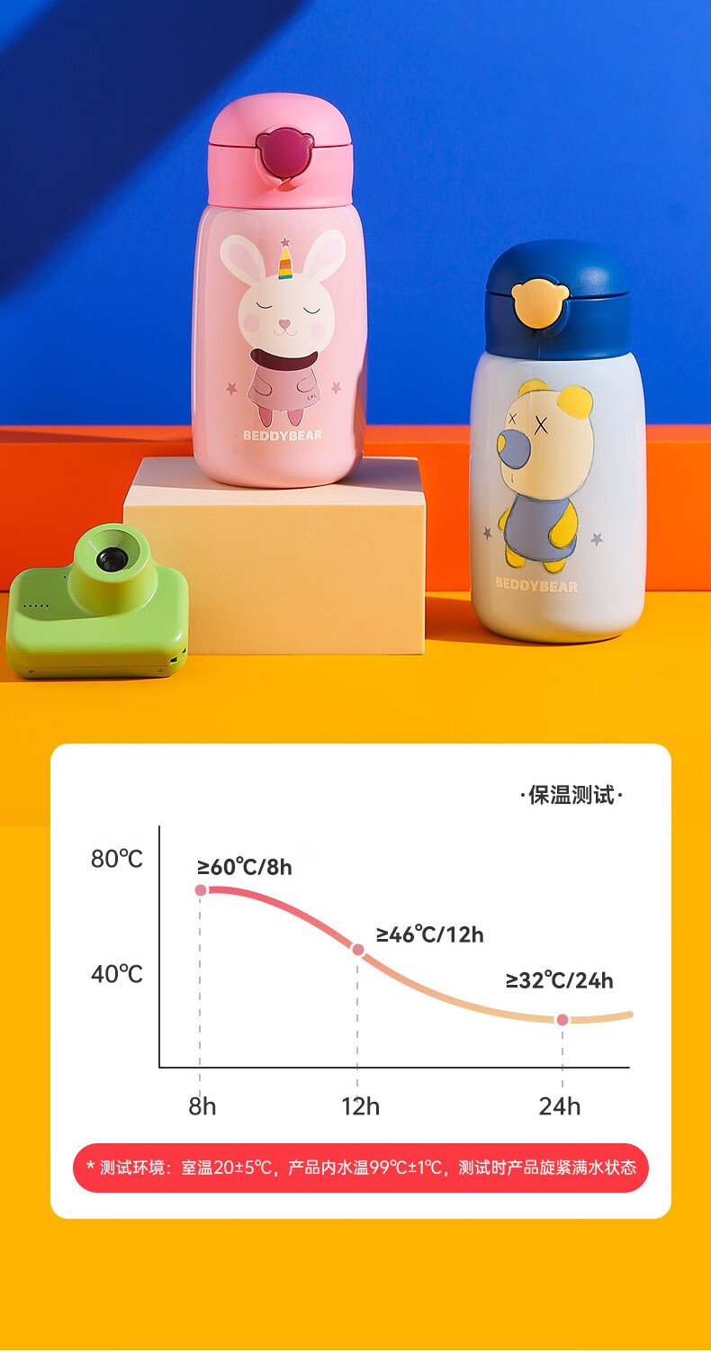 杯具熊(BEDDYBEAR)儿童保温杯小学生3-6岁水杯大容量吸管杯 小拱门杯-幸运恐龙480ml【一杯两盖】