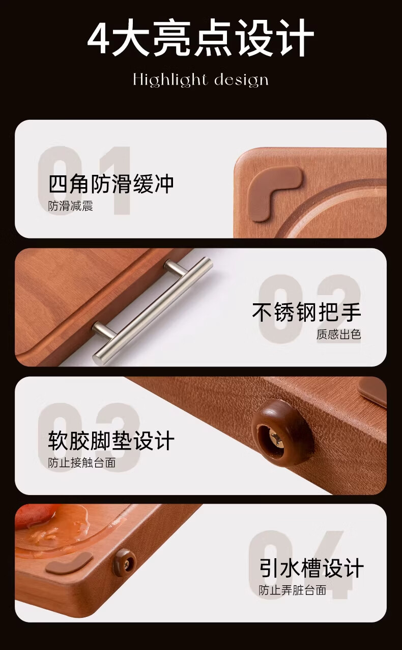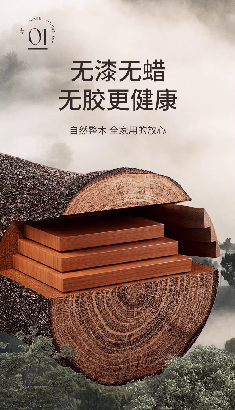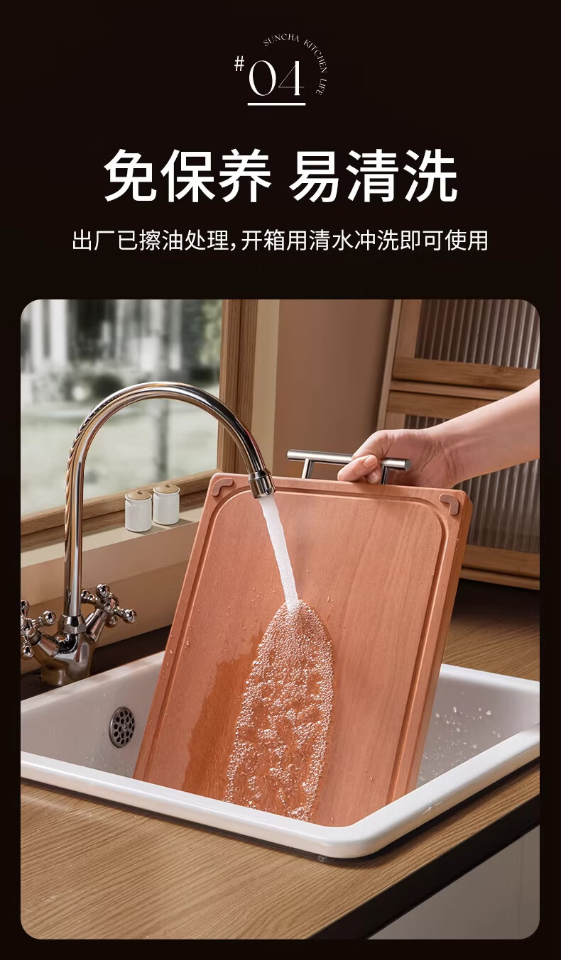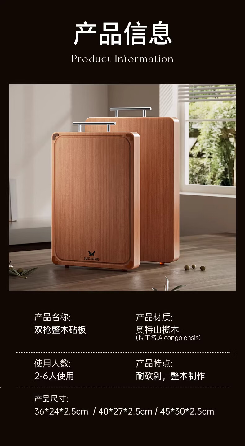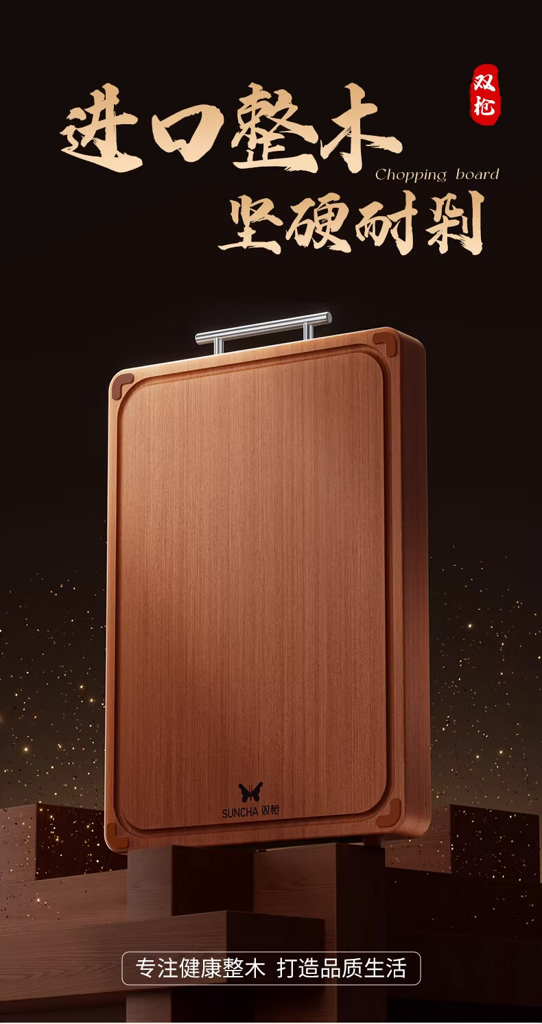 双枪整木菜板防霉抗菌切菜板家用食品级砧板实木案板 40*27*2.5cm