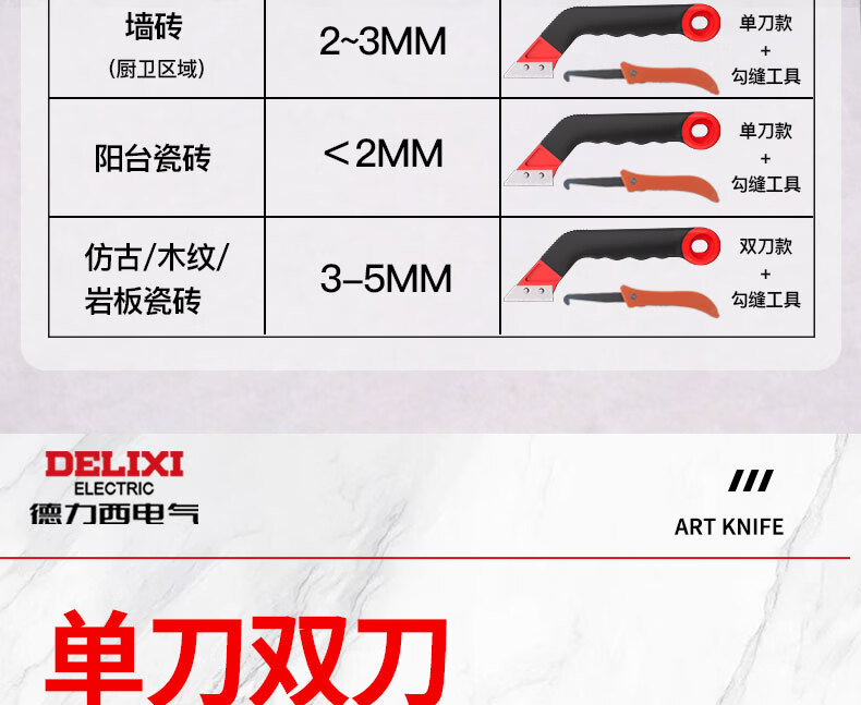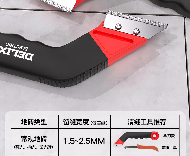 德力西电气清缝刀勾缝刀地砖水泥扣缝美缝剂施工疏缝刀 【单刀款】1手柄+4刀片+勾缝刀