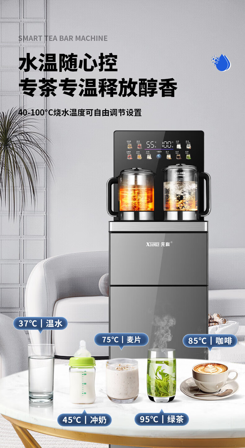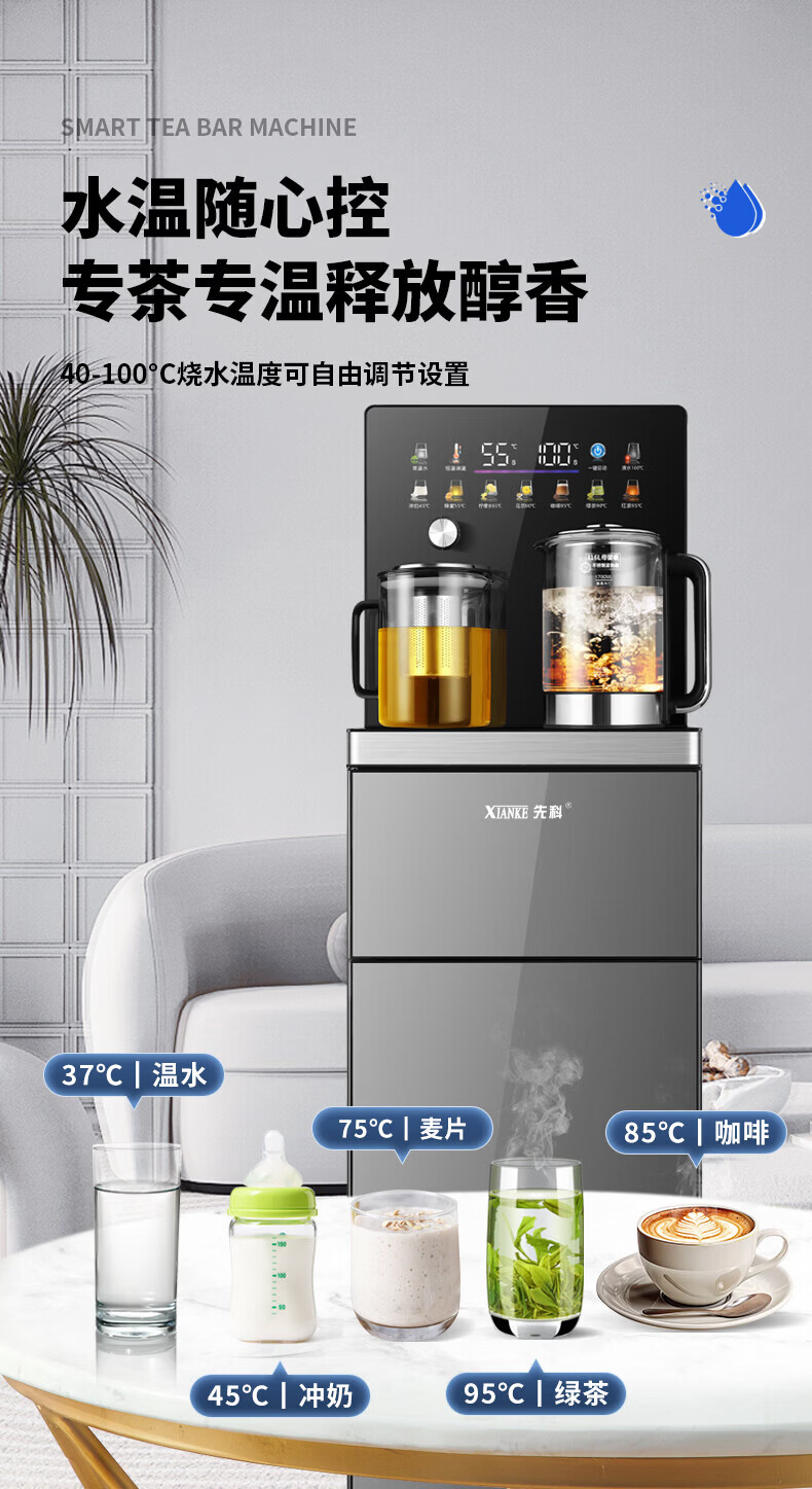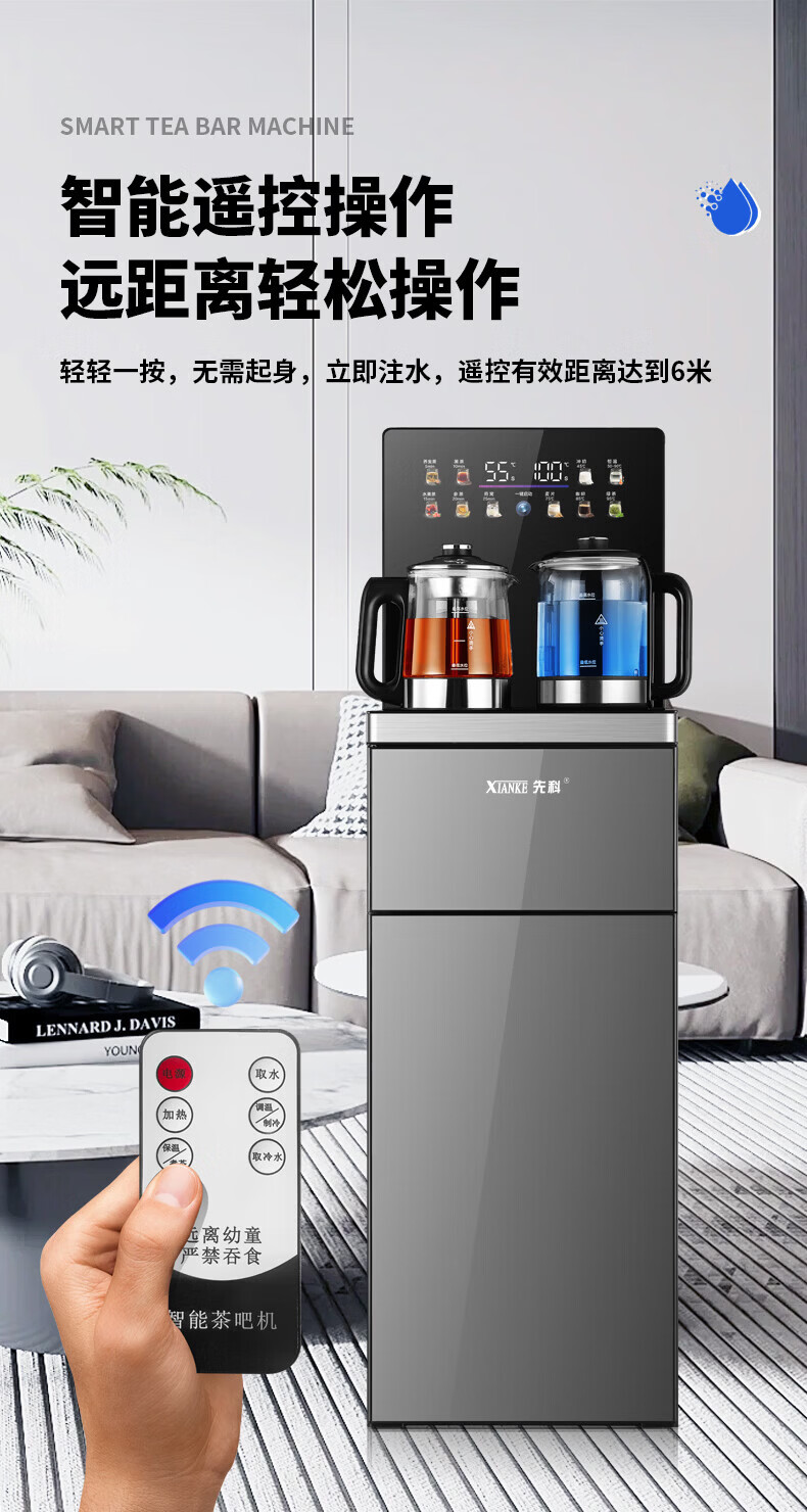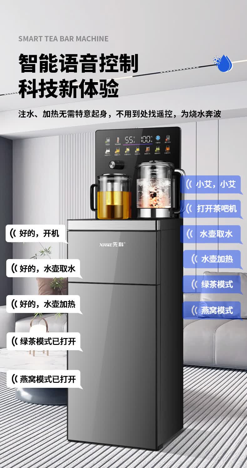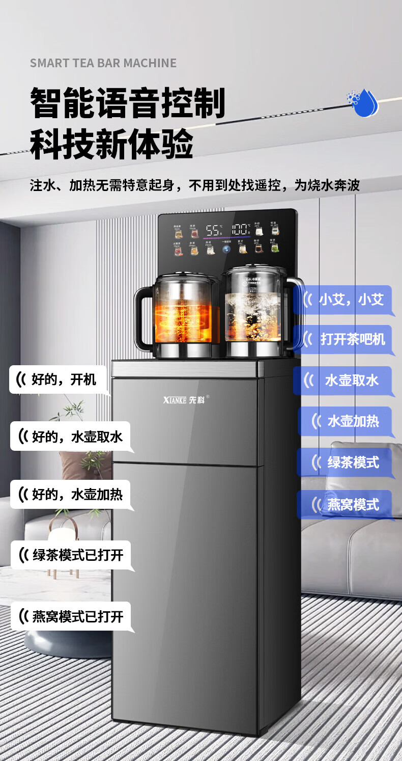 先科(XIANKE)茶吧机高端智能语音茶吧机多功能全自动下置水桶冷热两用饮水机家用客厅 灰色保温-双显语音【升级内衬+24小时保温】 即热型 冰温热款