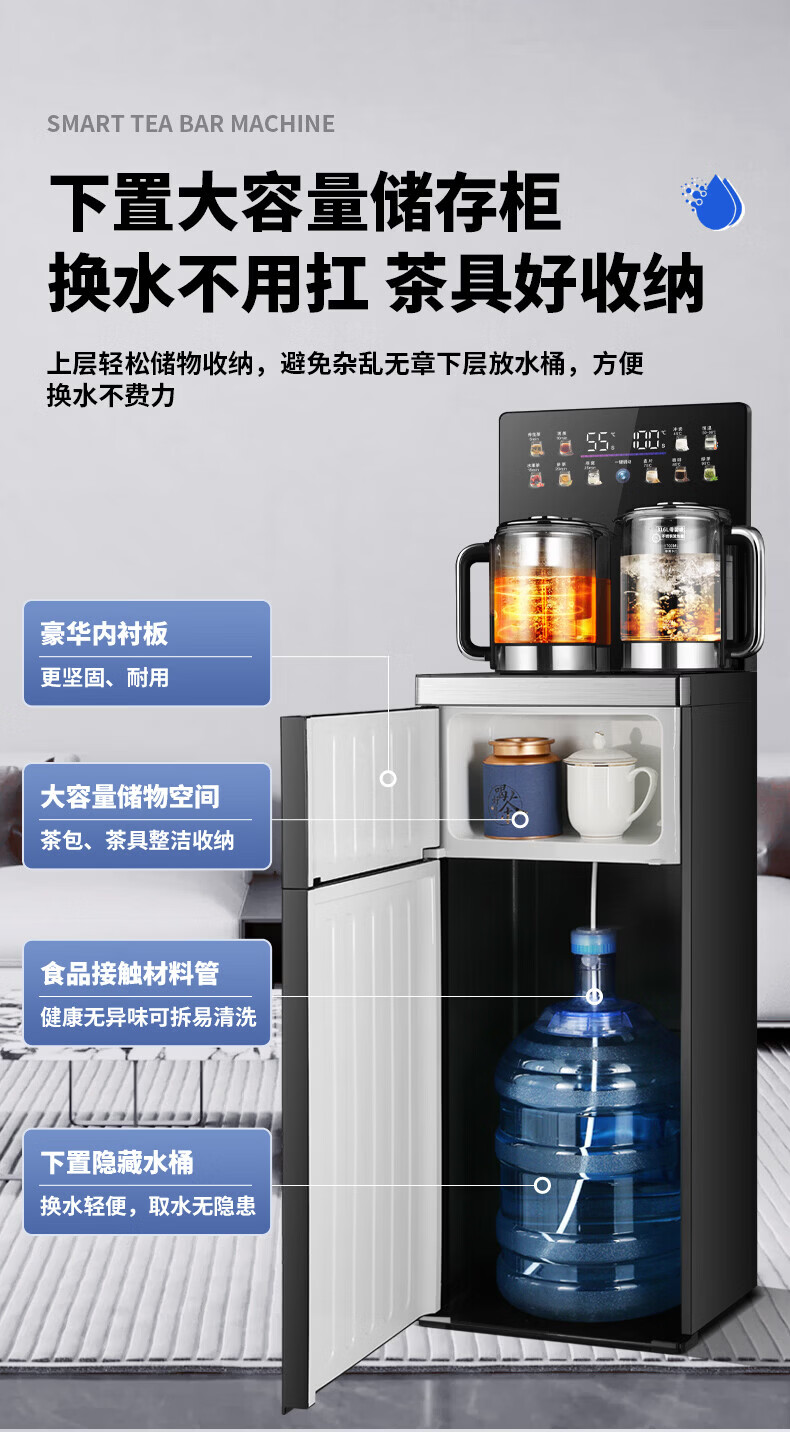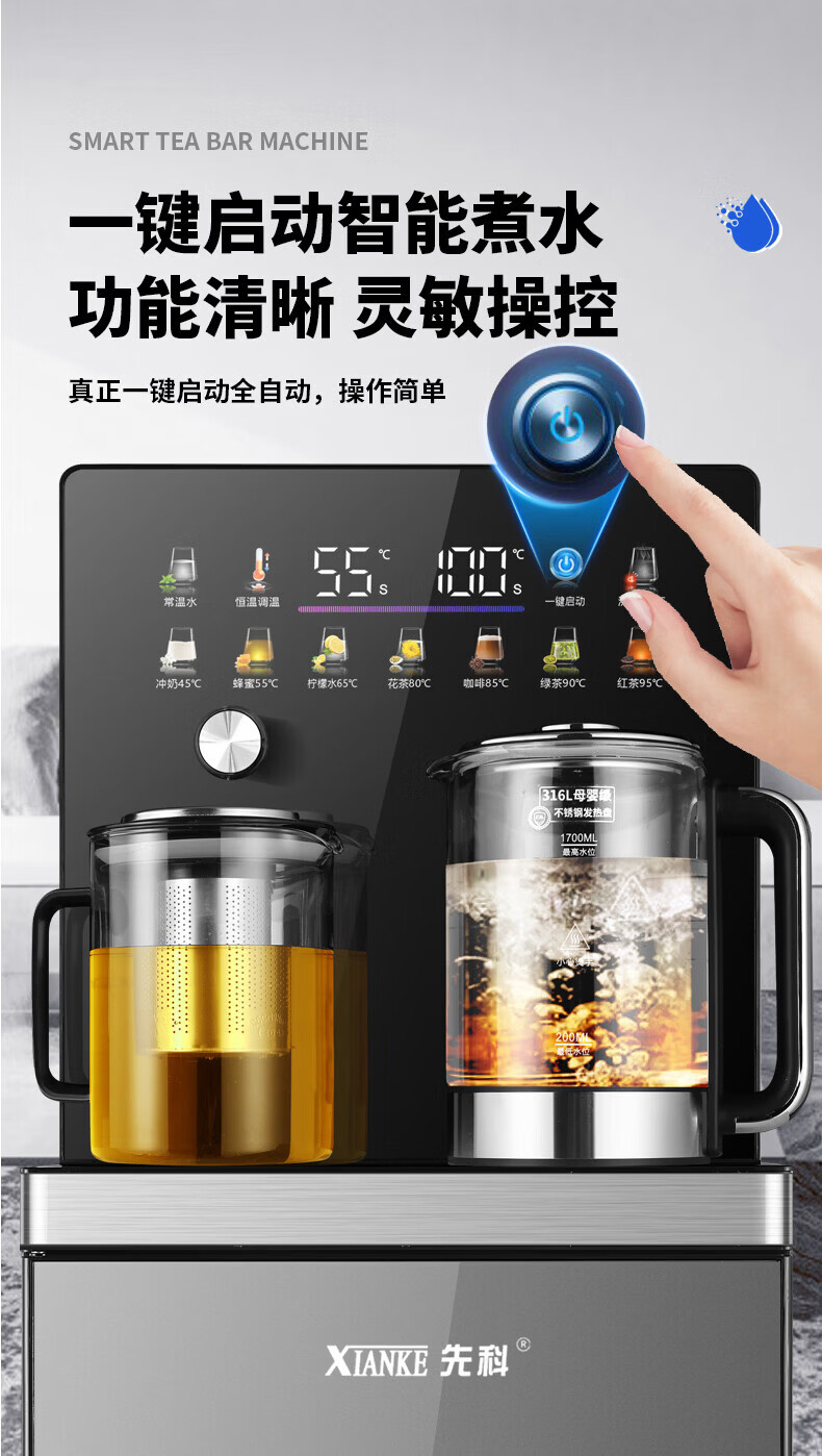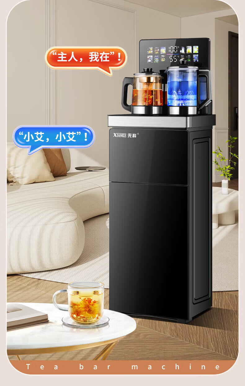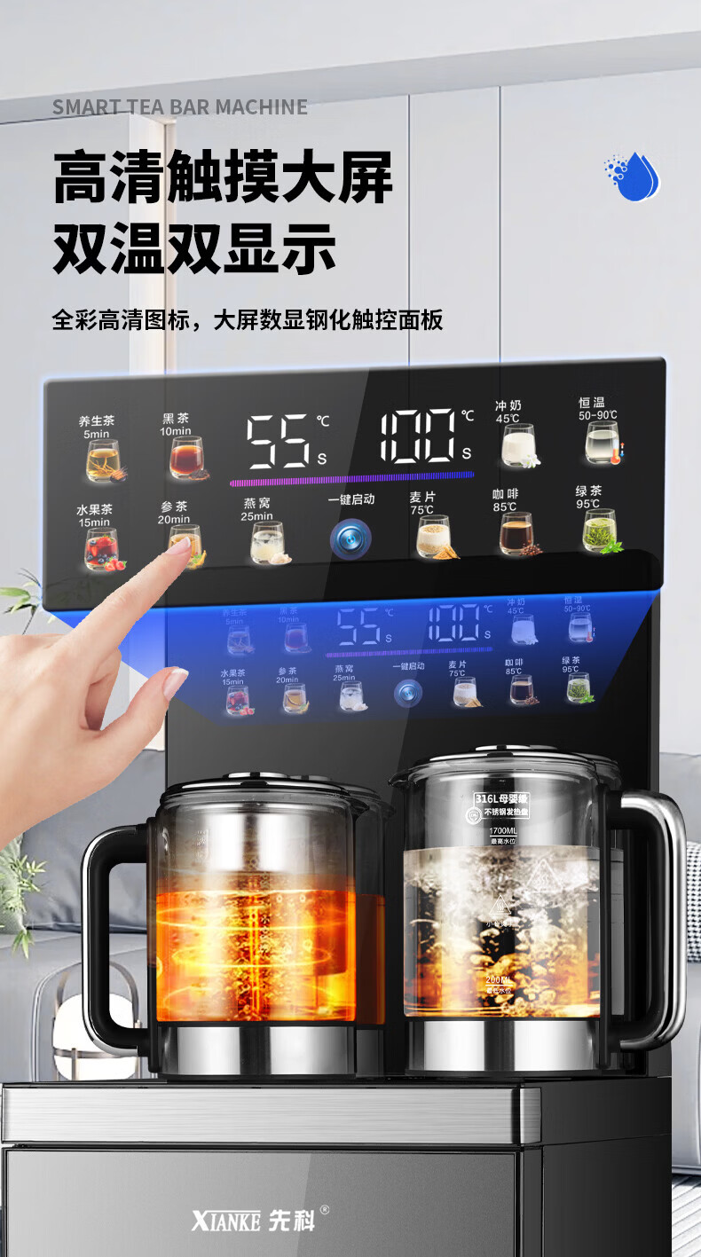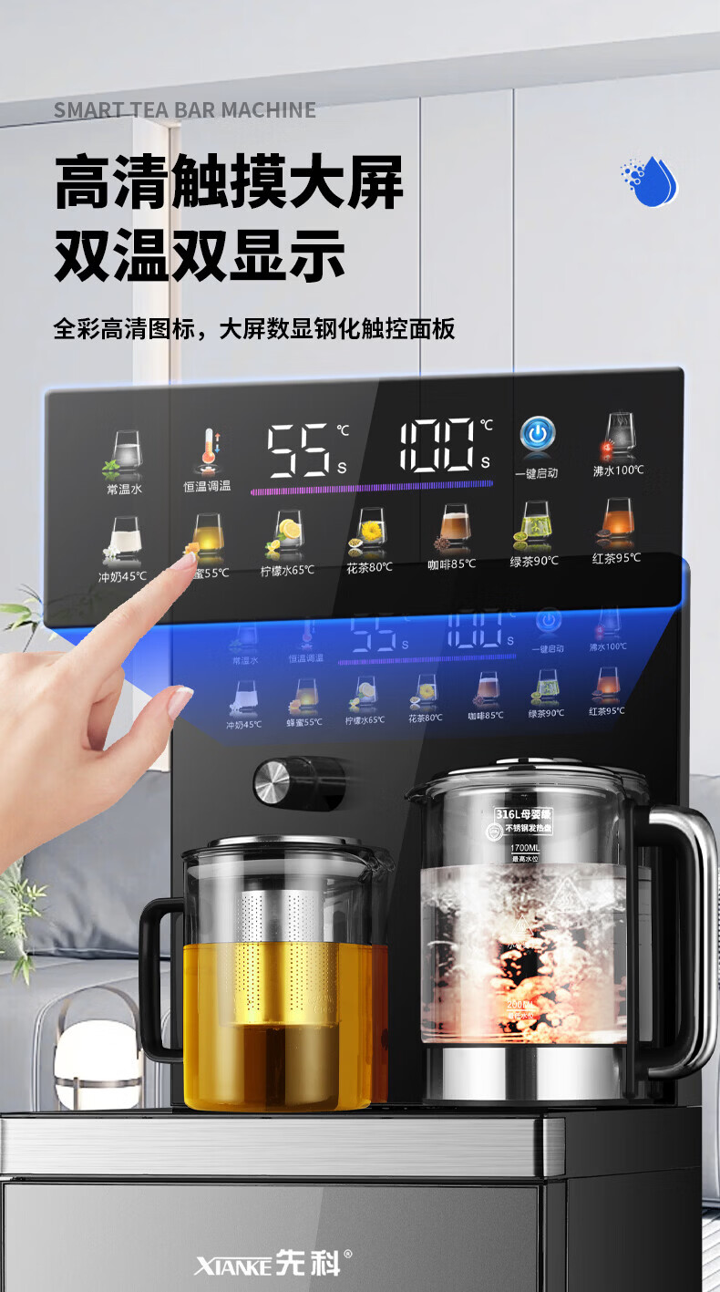 先科(XIANKE)茶吧机高端智能语音茶吧机多功能全自动下置水桶冷热两用饮水机家用客厅 灰色保温-双显语音【升级内衬+24小时保温】 即热型 冰温热款