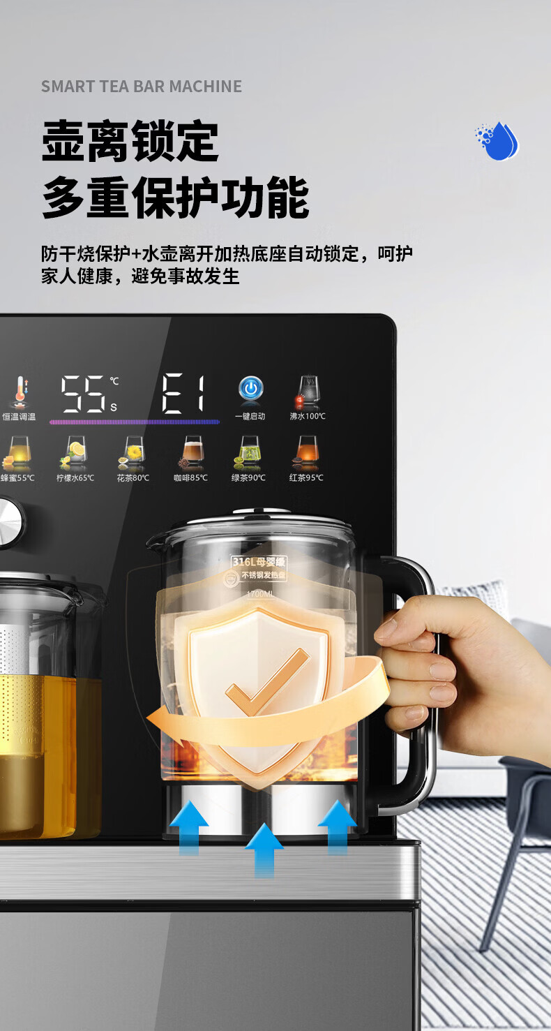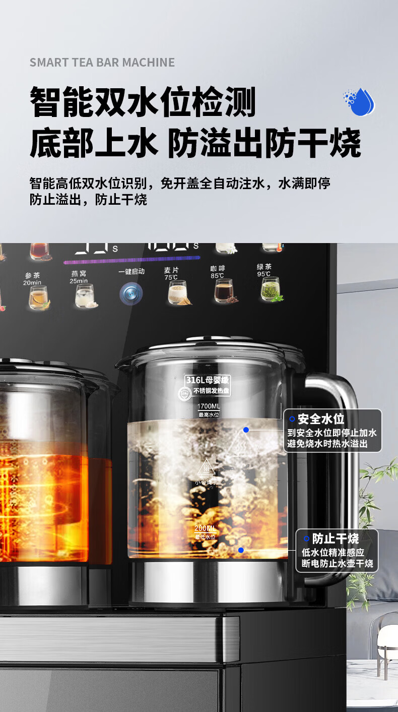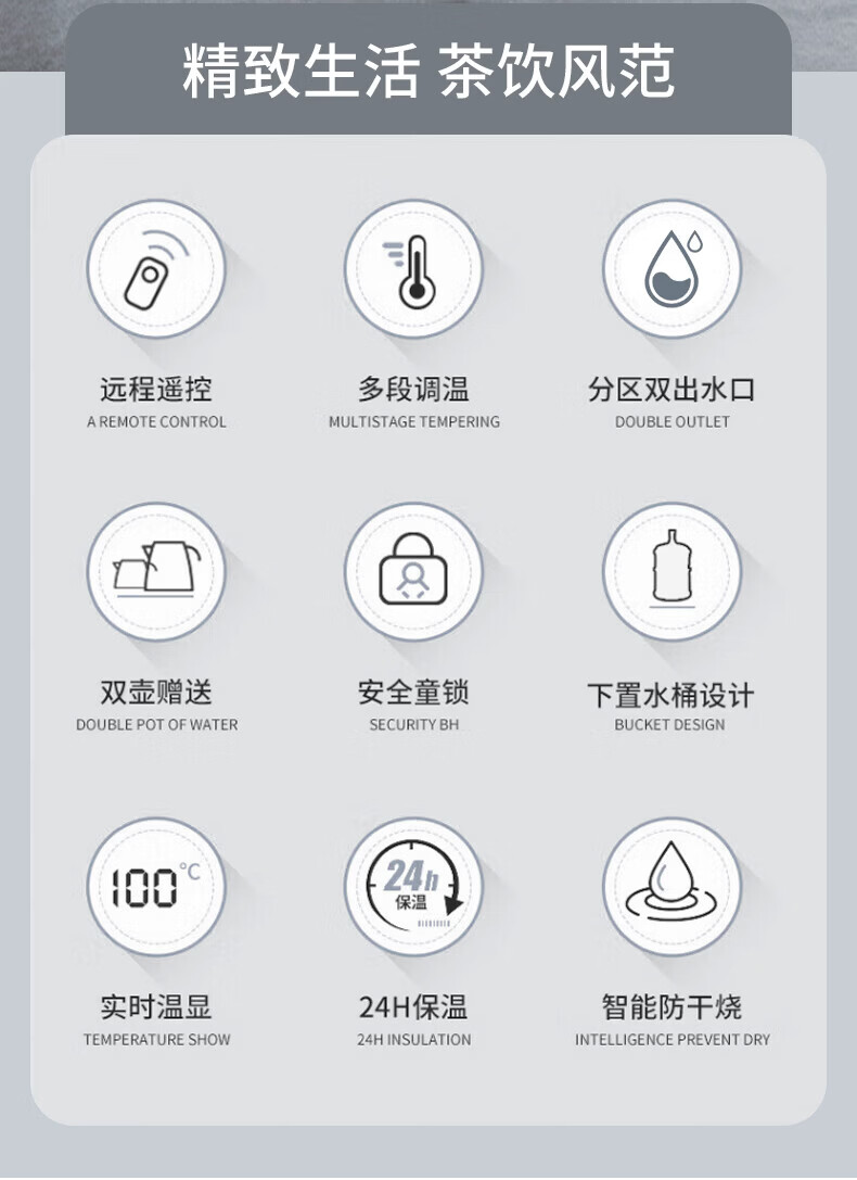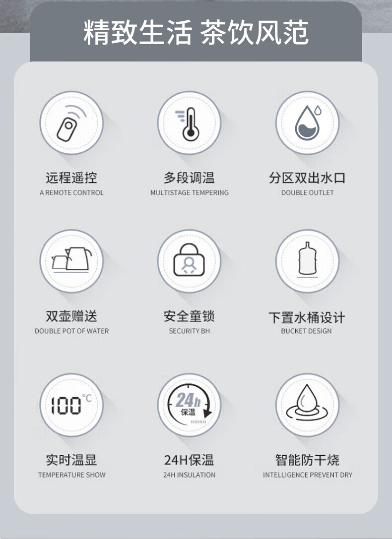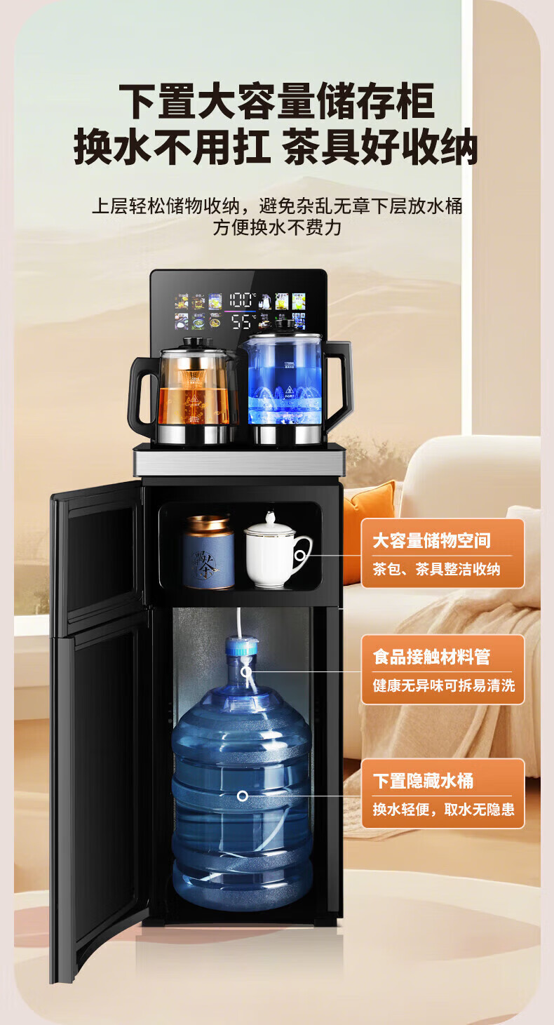 先科(XIANKE)茶吧机高端智能语音茶吧机多功能全自动下置水桶冷热两用饮水机家用客厅 灰色保温-双显语音【升级内衬+24小时保温】 即热型 冰温热款