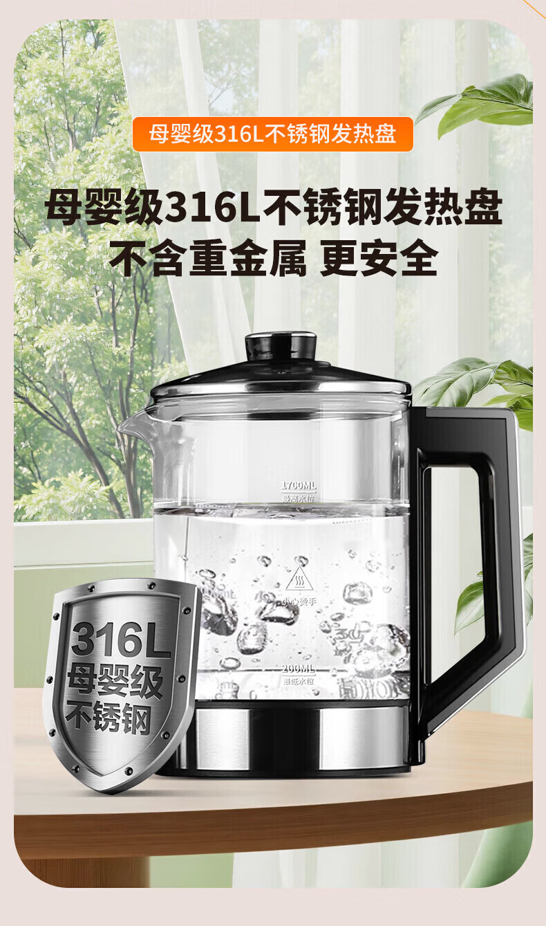 溥畔电陶炉煮茶小型煮茶器煮茶炉2026新款烧水泡茶电磁炉养生茶壶 木纹色电陶炉+禅道壶(蒸煮双胆)1000ML