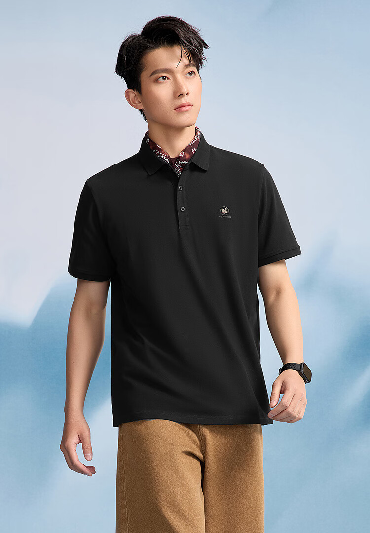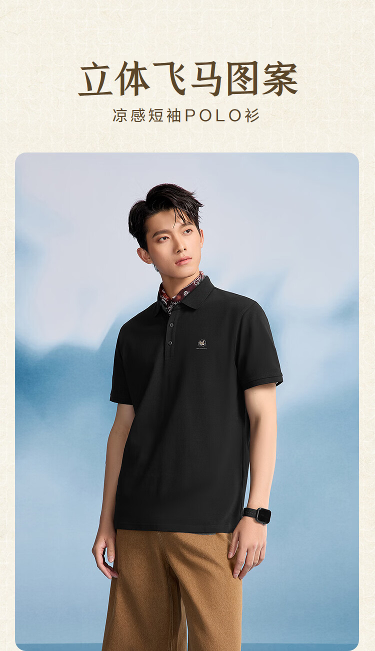 海澜之家(HLA)短袖POLO衫男26新款飞马刺绣凉感短袖男夏季 黑色7E 2XL 185/100A 推荐165~180斤