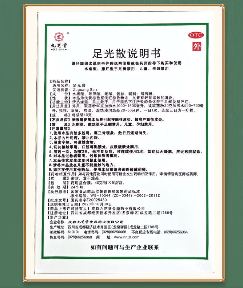 九芝堂足光散40g*5袋足光粉治脚气中药泡脚止痒清热燥湿杀虫敛汗治疗手足癣京东自营