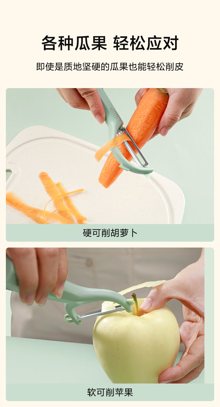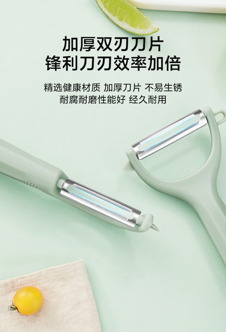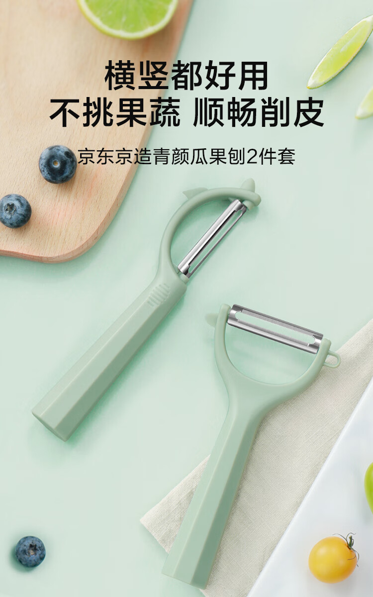 京东京造 青颜水果刀 削刮皮家用不锈钢多功能【P+Y型】刮刨2件套