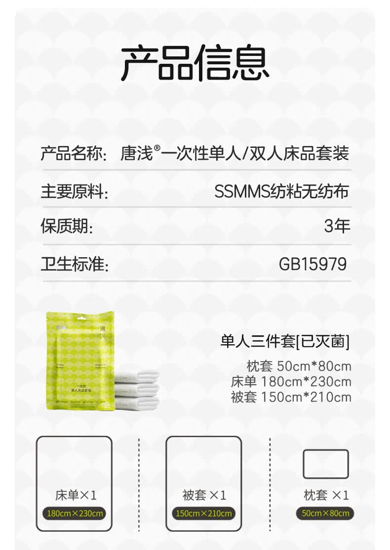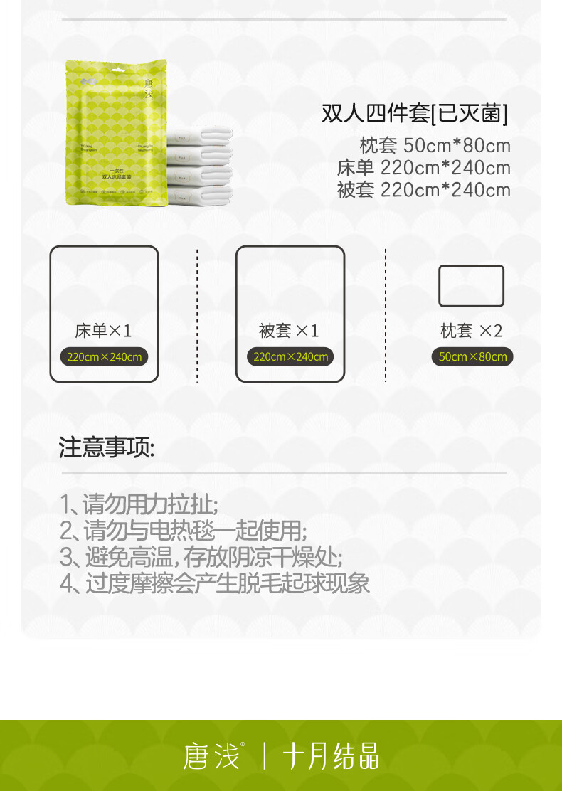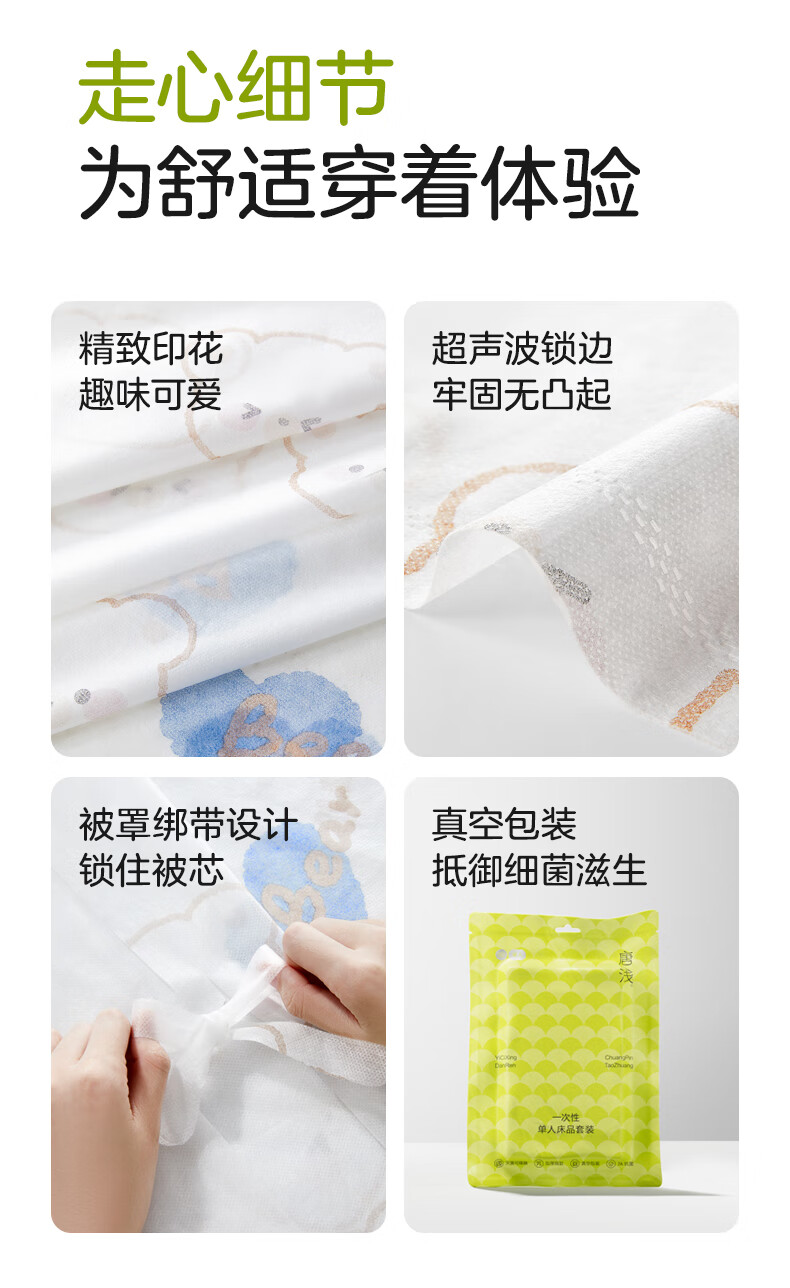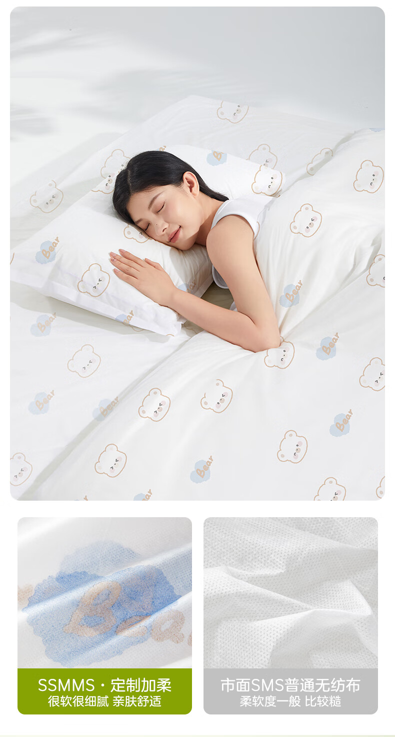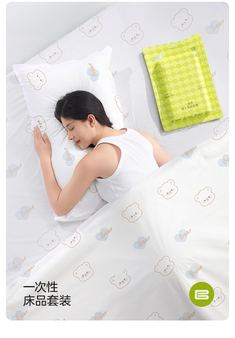 十月结晶唐浅一次性四件套差旅行酒店隔脏枕套被罩床单便携床上用品 小熊