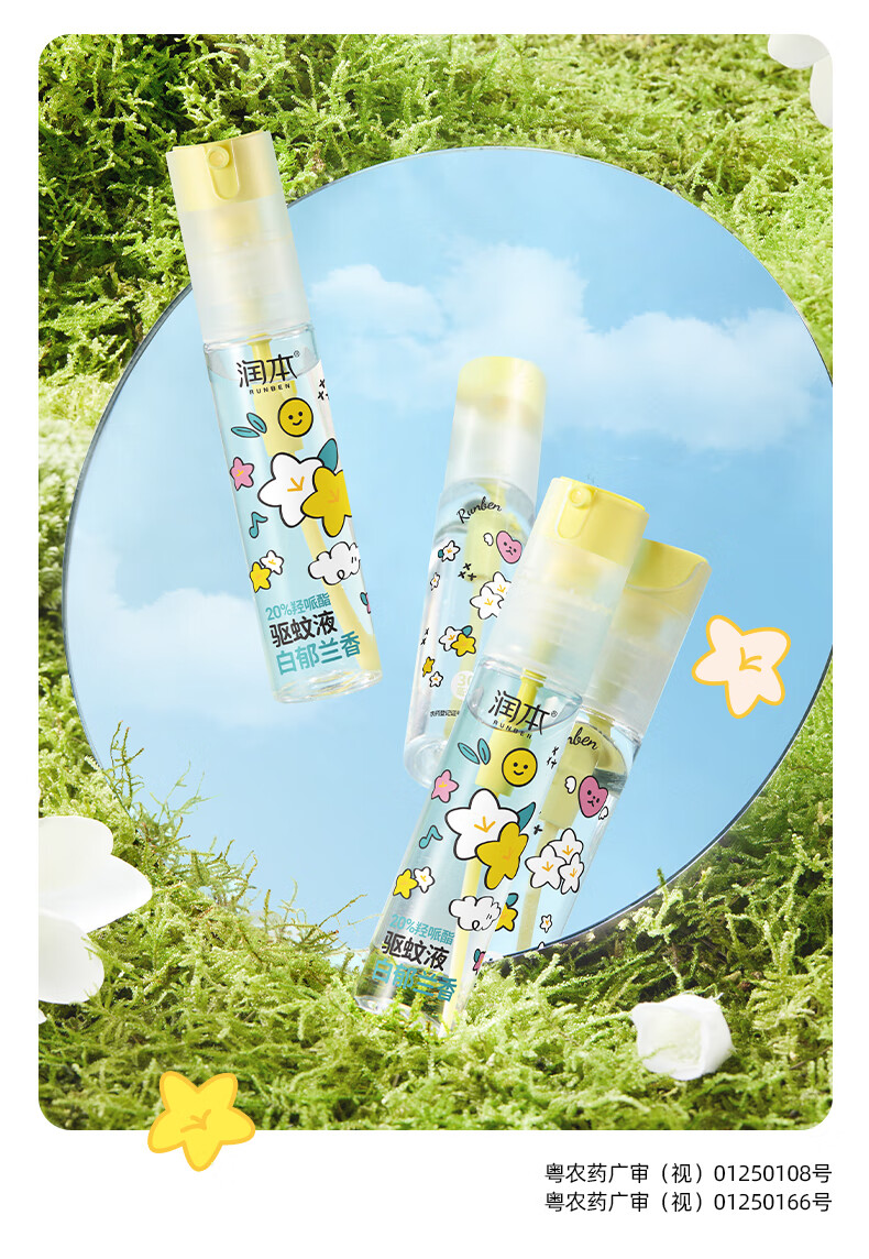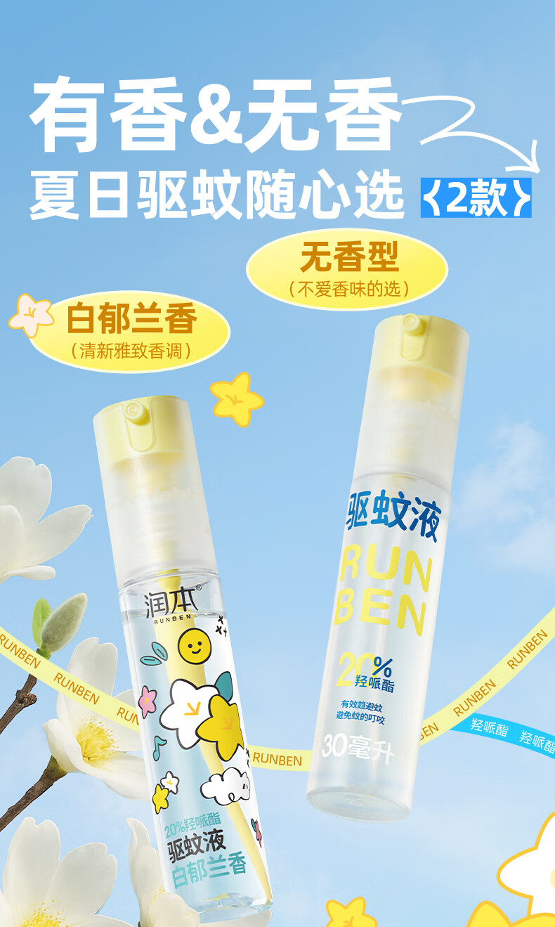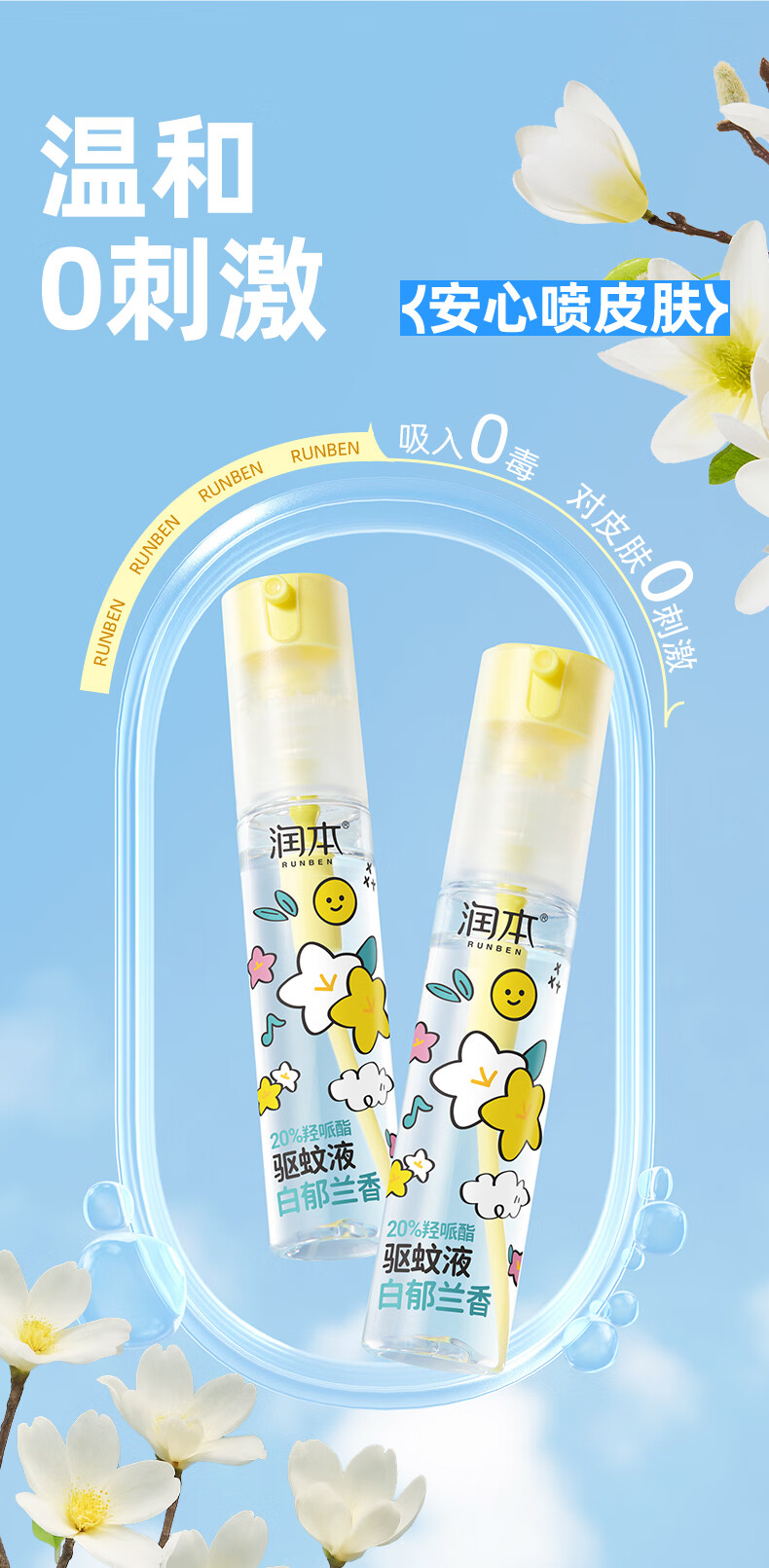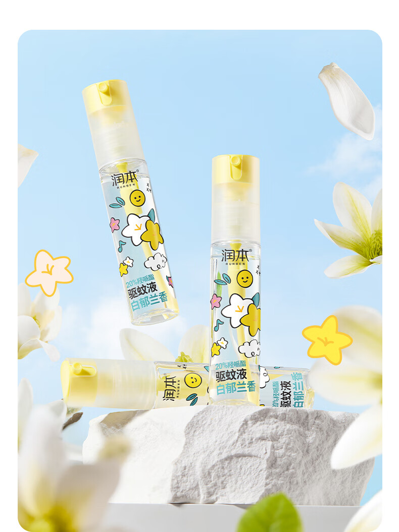 润本驱蚊液驱蚊喷雾花露水防蚊虫叮驱蚊水20%派卡瑞丁白郁兰香30ml*2