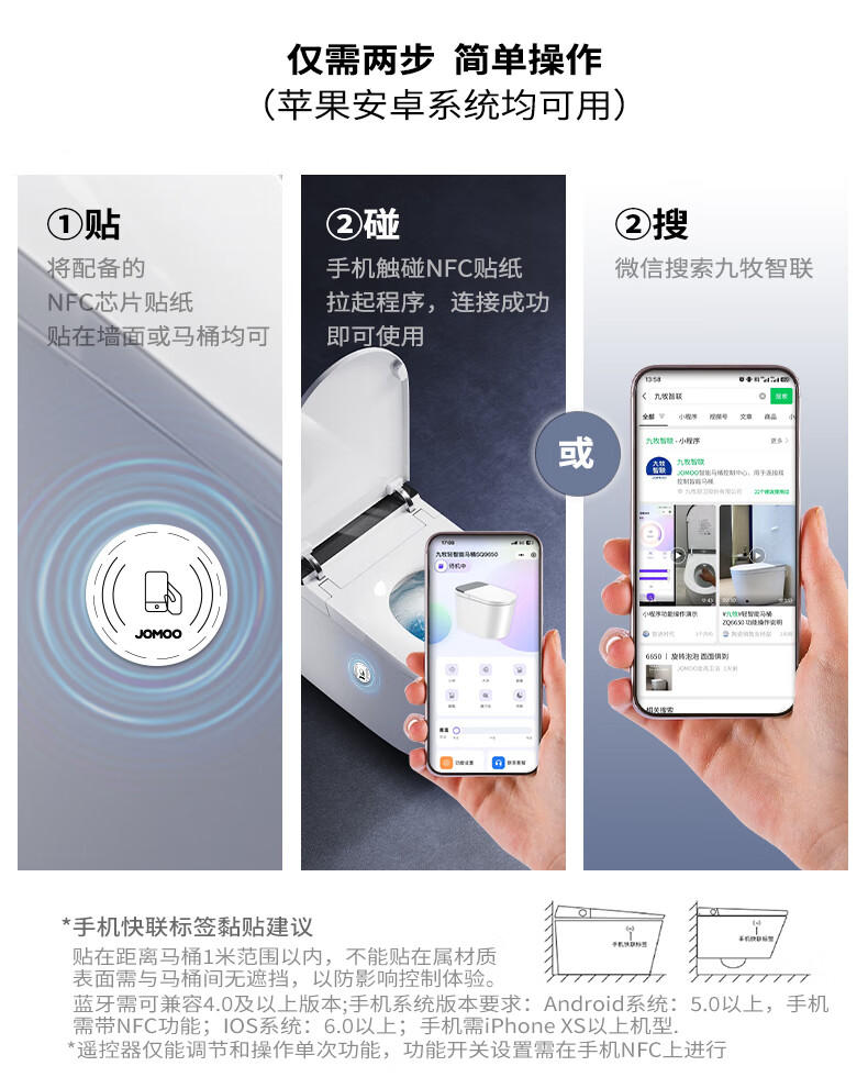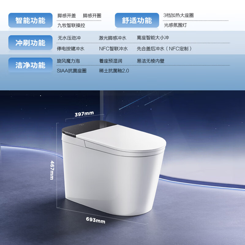 九牧(JOMOO)轻智能马桶黑魔方无水压旋风魔力泡NFC免触翻盖SQ9650-SA-CJM305