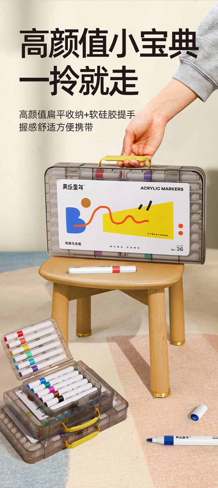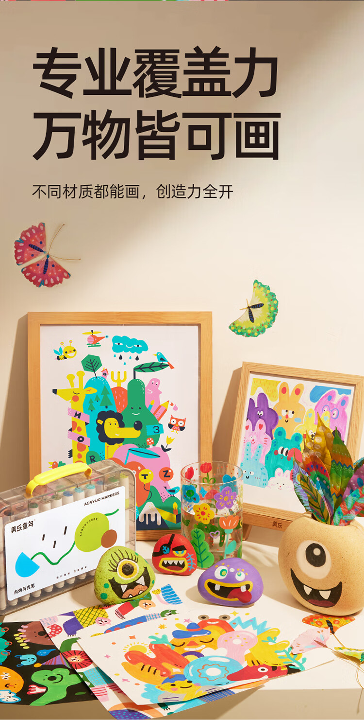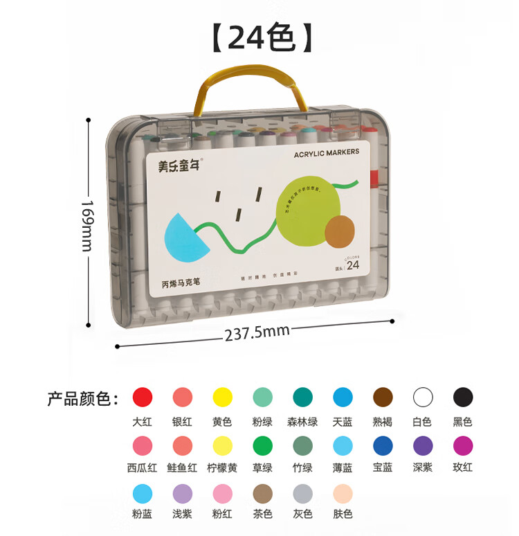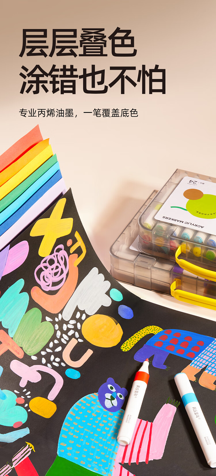 美乐童年丙烯马克笔24色儿童水彩笔绘画笔小学生防水不透纸幼儿园礼物