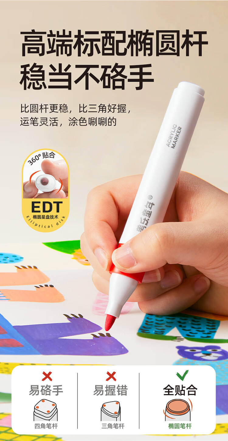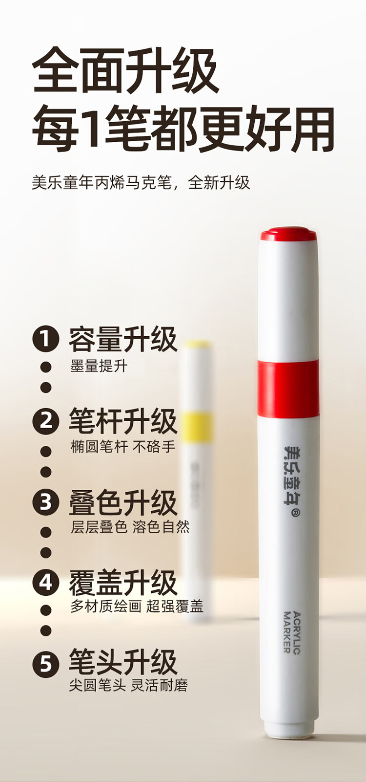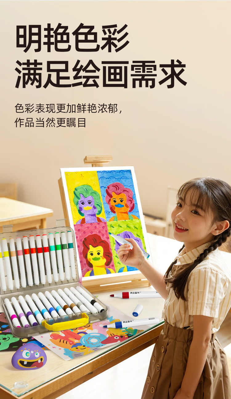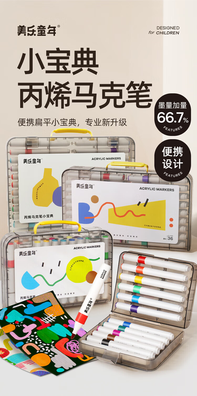 美乐童年丙烯马克笔24色儿童水彩笔绘画笔小学生防水不透纸幼儿园礼物
