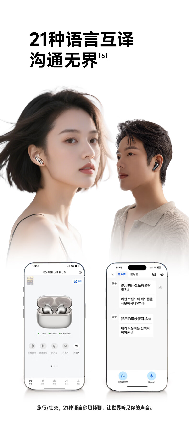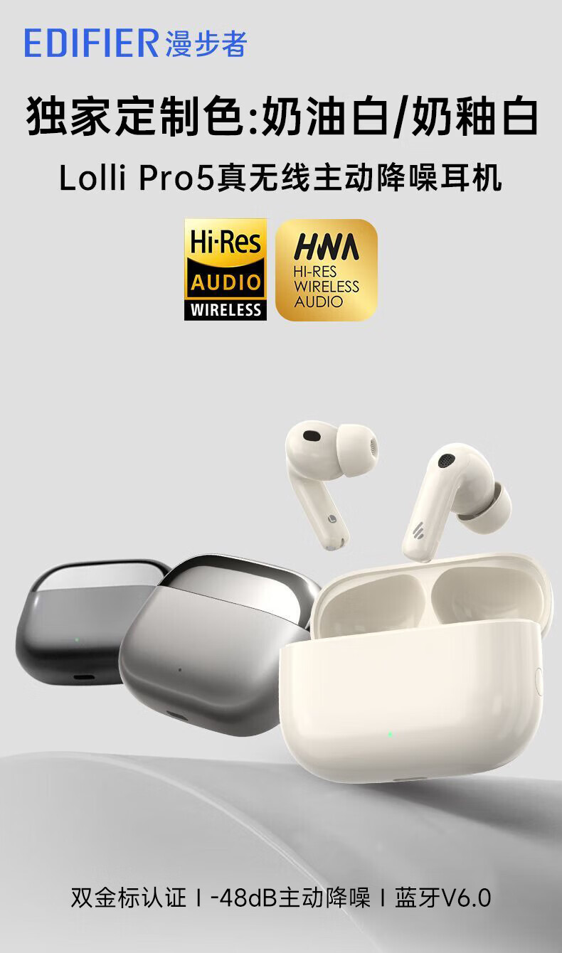 漫步者(EDIFIER) Lolli Pro5 真无线主动降噪蓝牙耳机入耳式 AI翻译耳机运动跑步音乐游戏电竞适配苹果华为安卓 星空灰+柯基耳机套+晒单20元红包