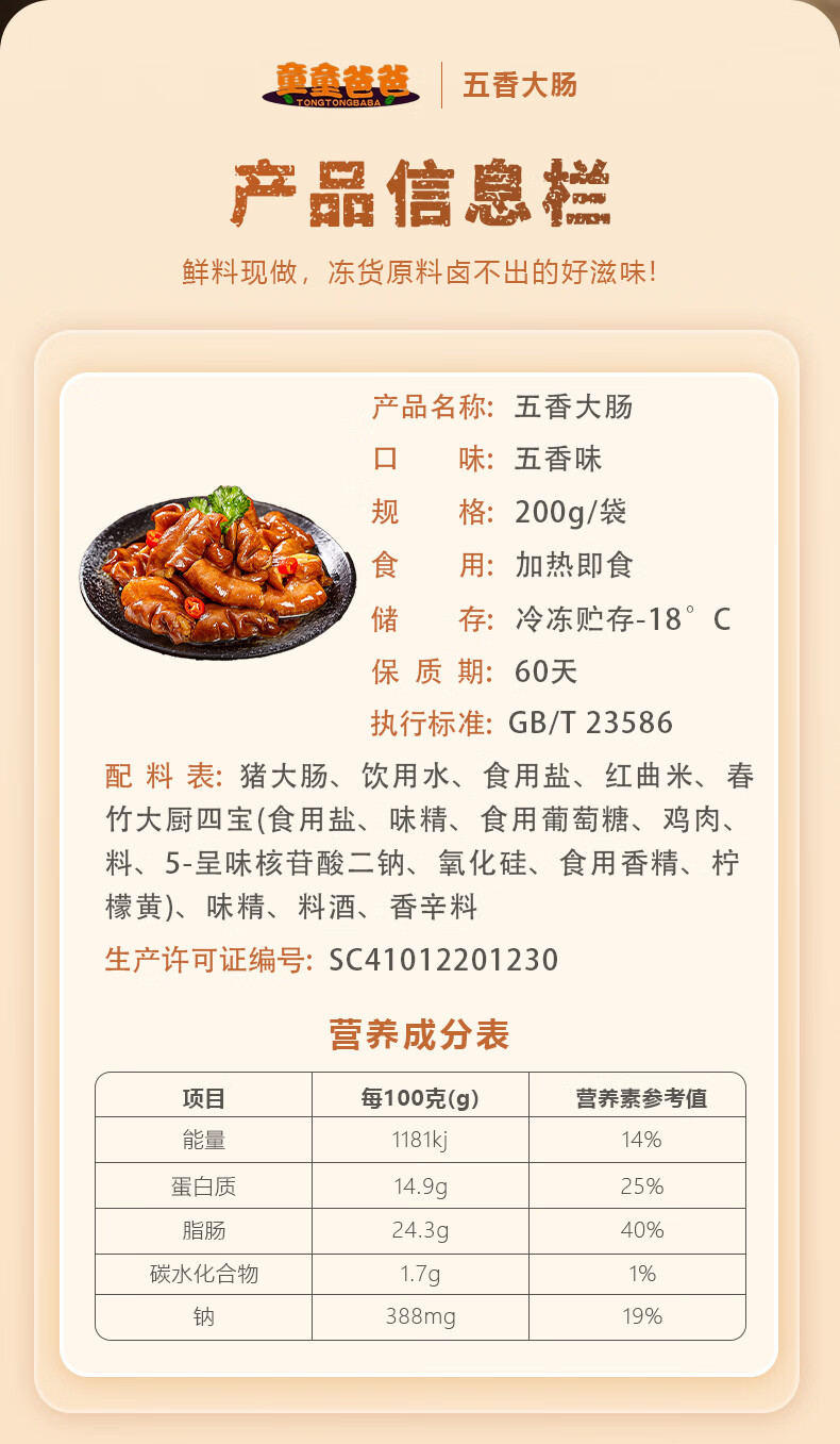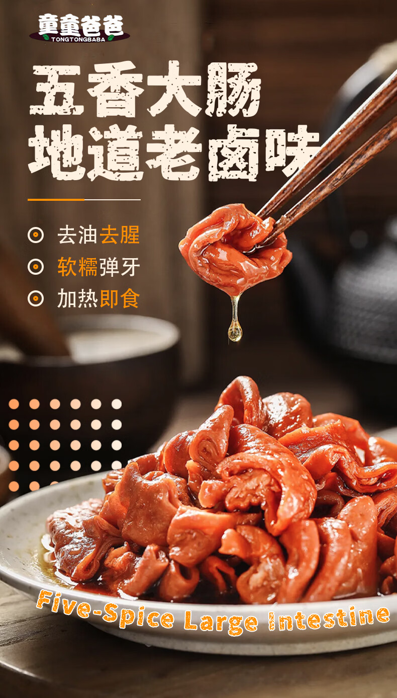 童童爸爸拉丝大肠头 五香大肠 酱卤肉制品 冷冻熟食 加热即食下酒菜 卤香肥肠200g