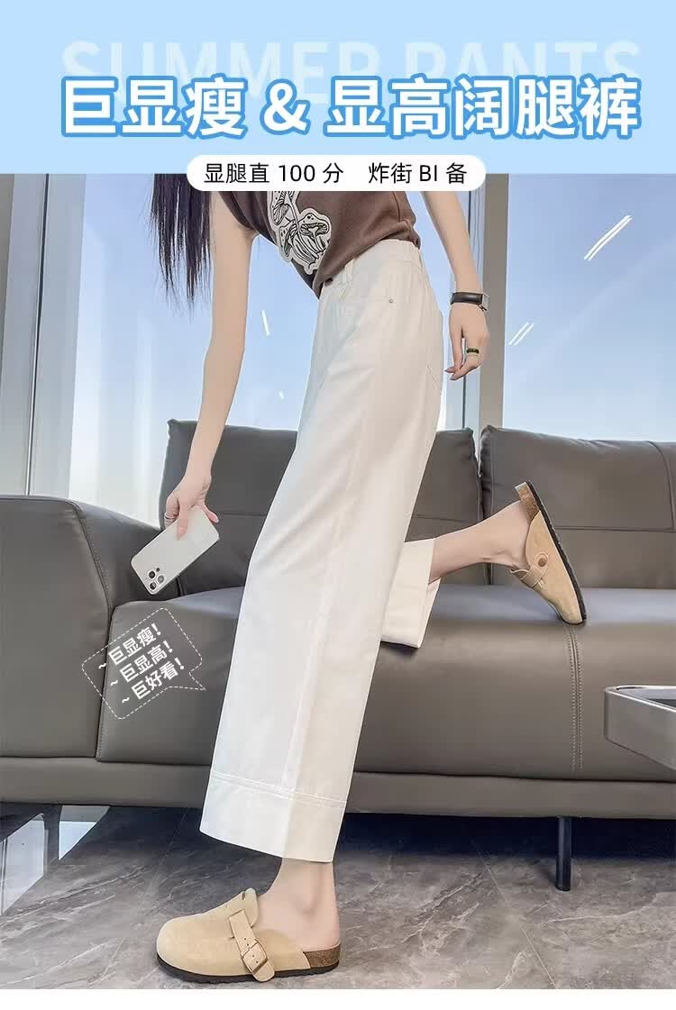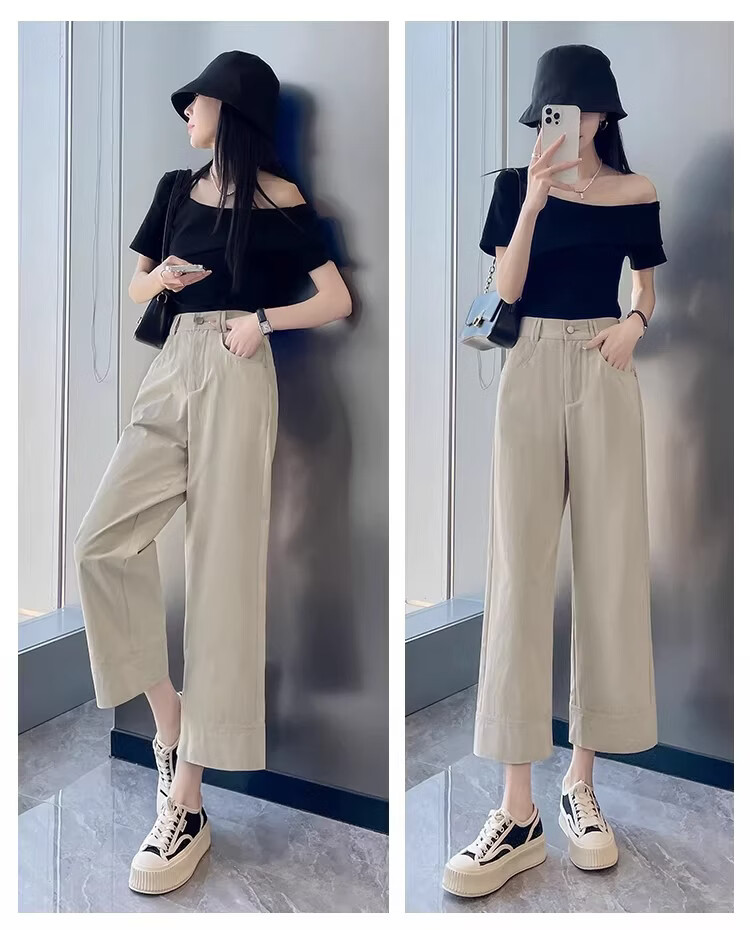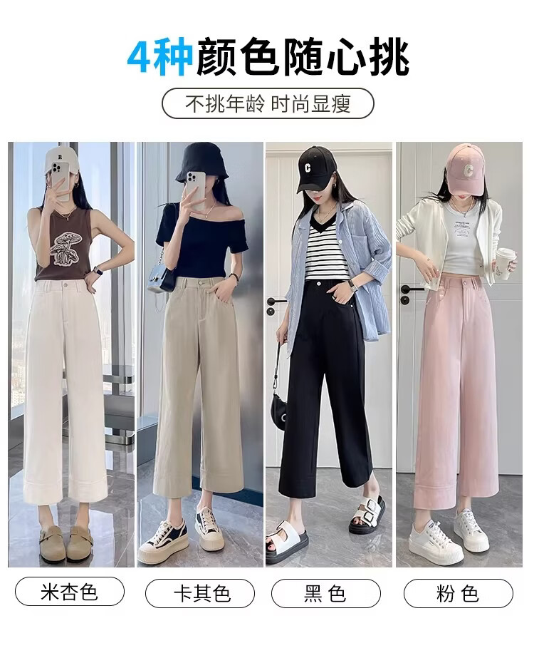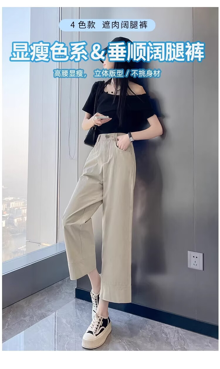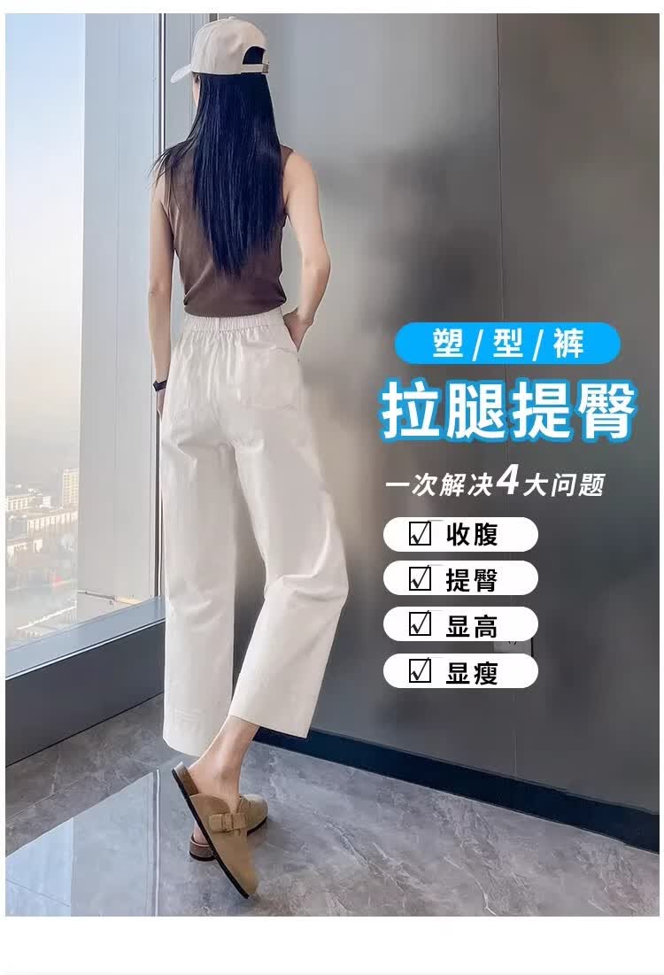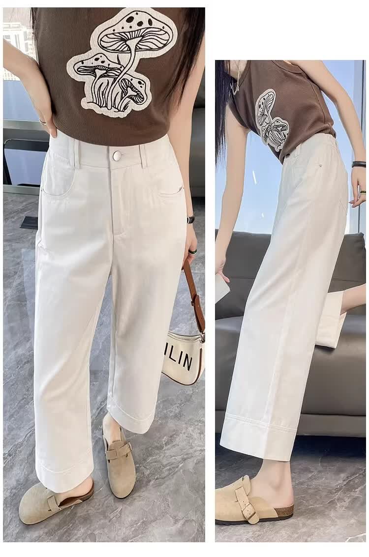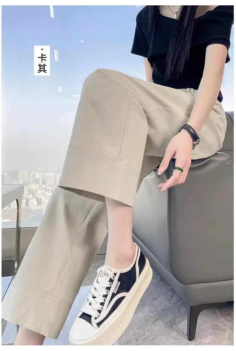 简蜓九分卷边阔腿裤女夏季薄款纯棉高腰小个子宽松日系八分直筒烟管裤 黑色-九分裤 L 【建议105-115斤】