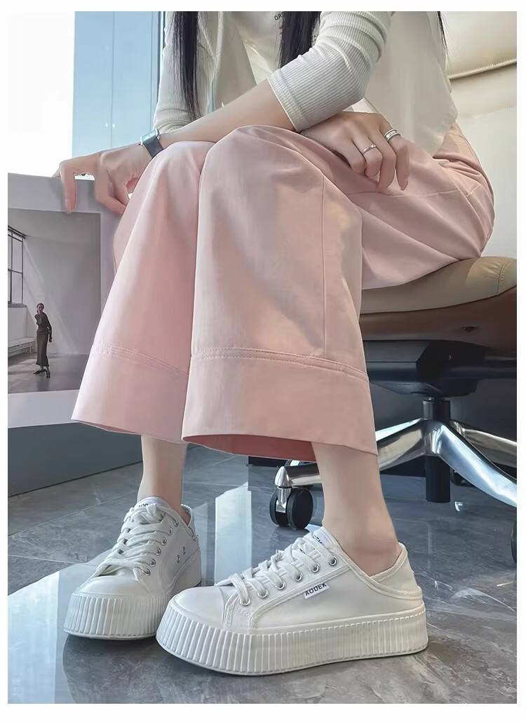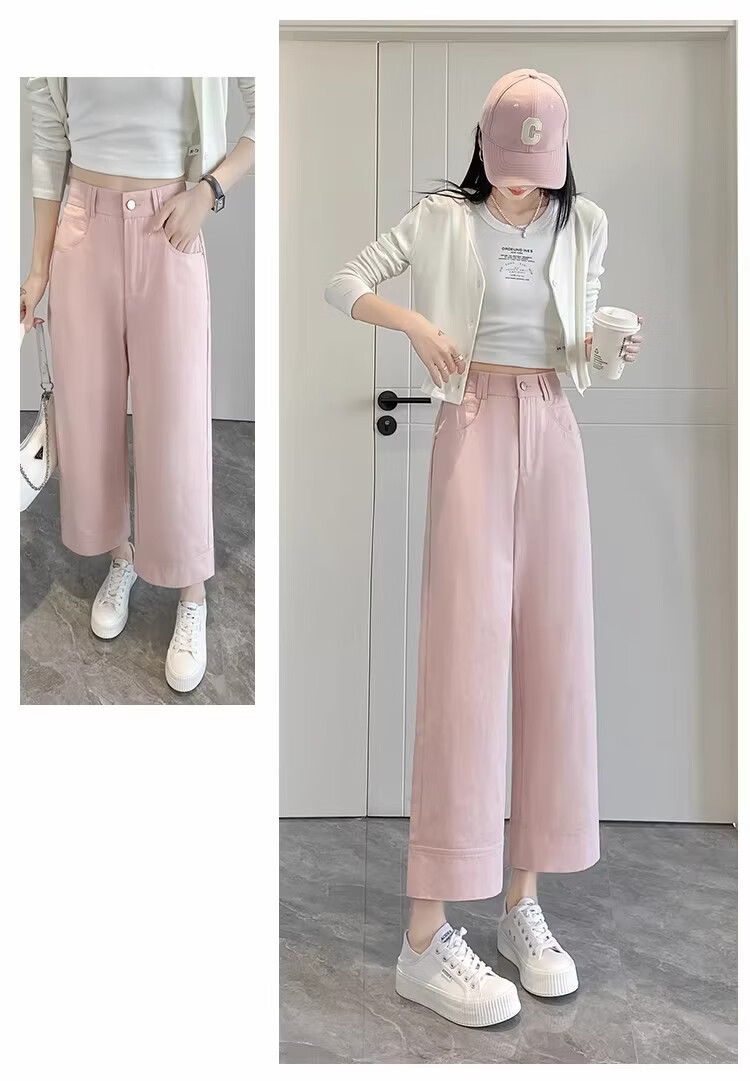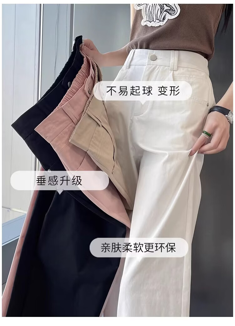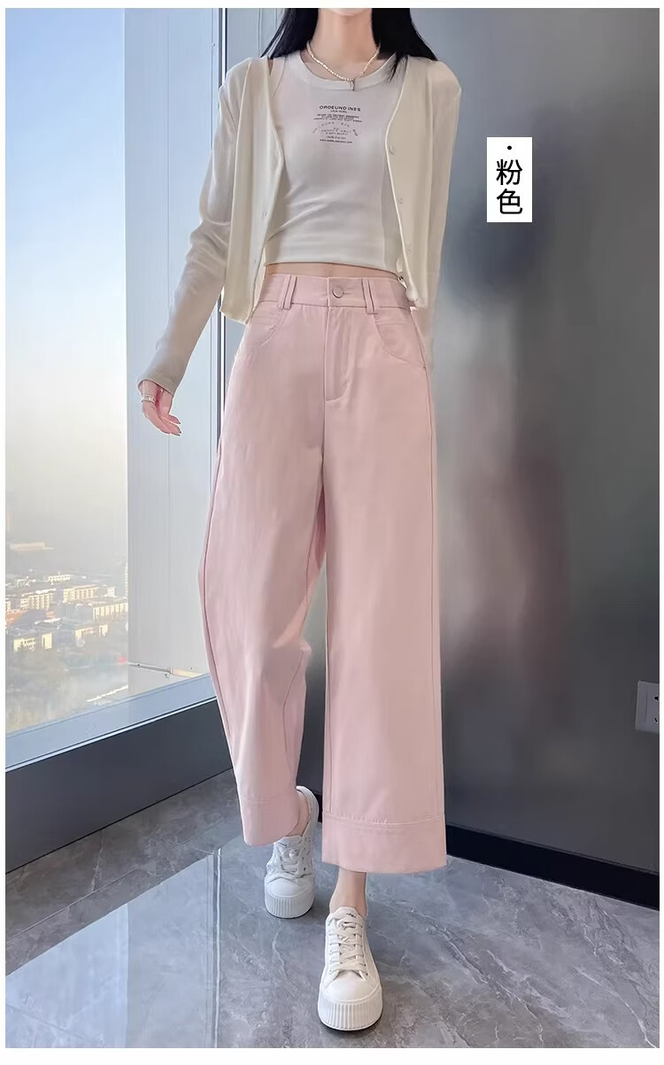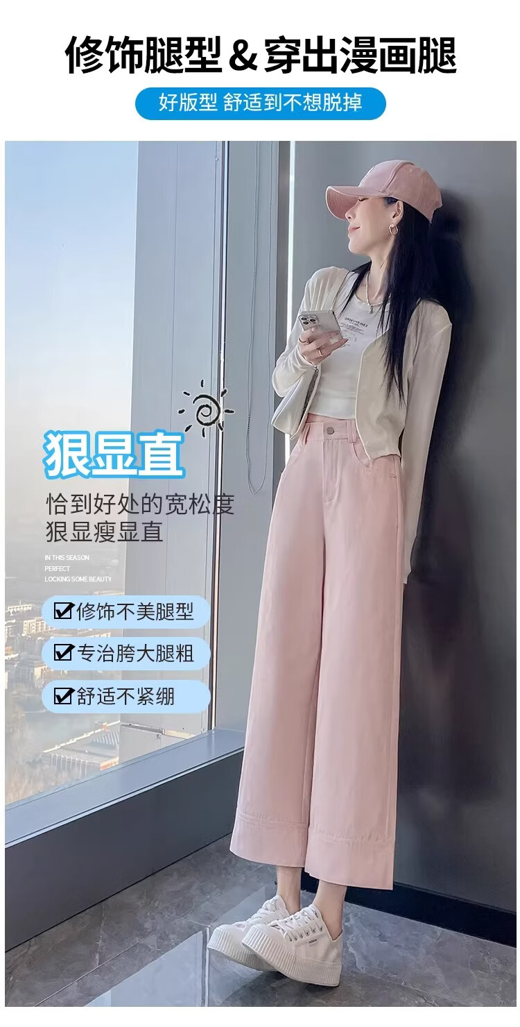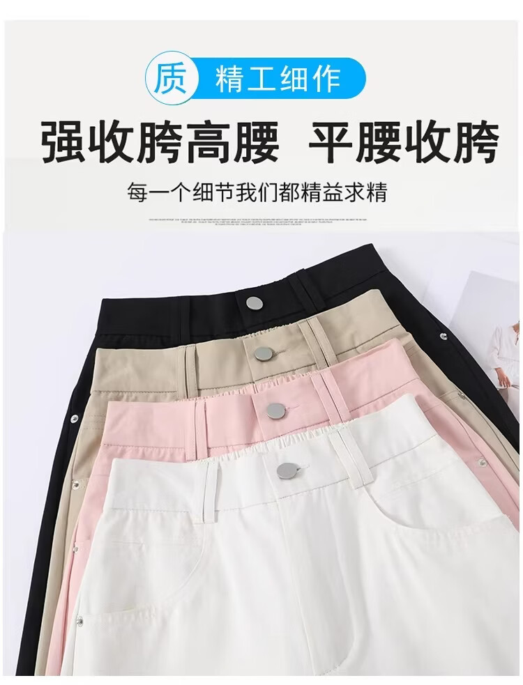 简蜓九分卷边阔腿裤女夏季薄款纯棉高腰小个子宽松日系八分直筒烟管裤 黑色-九分裤 L 【建议105-115斤】