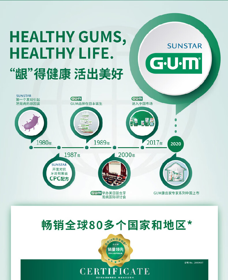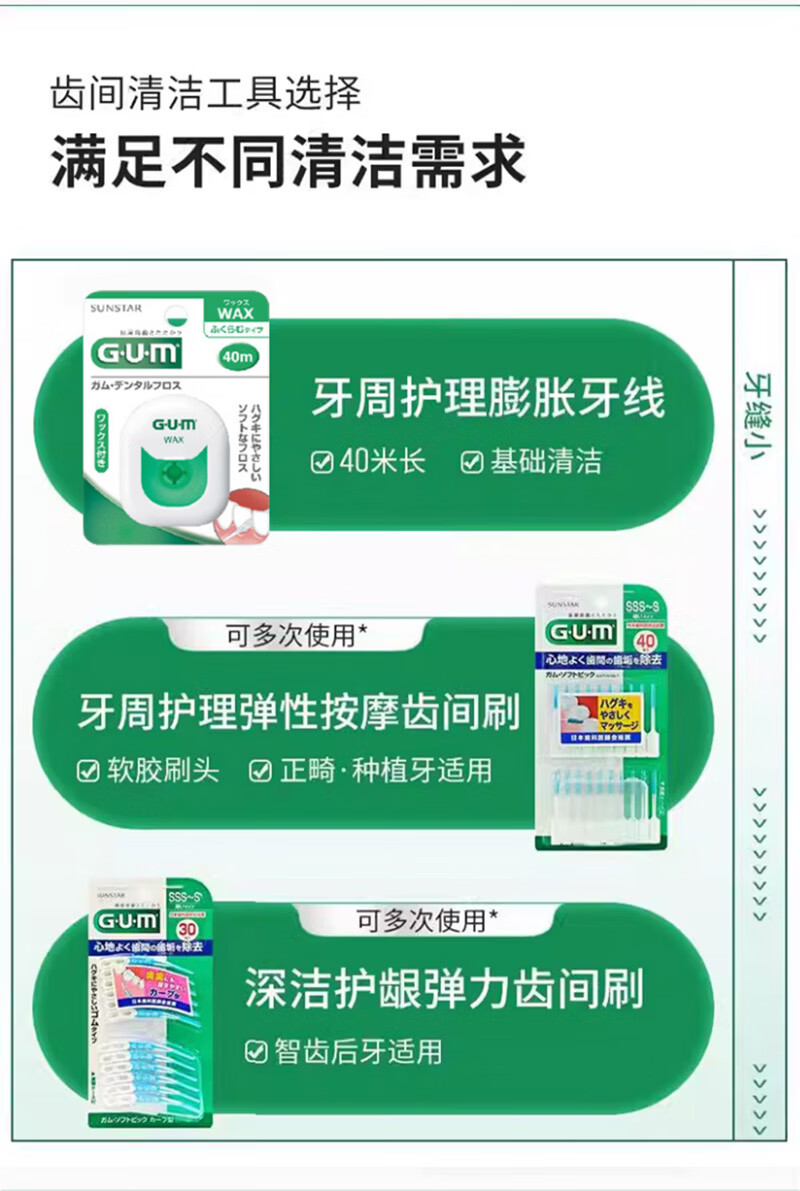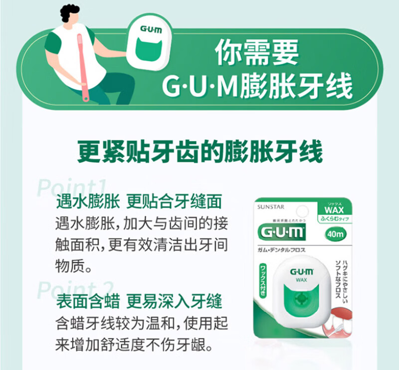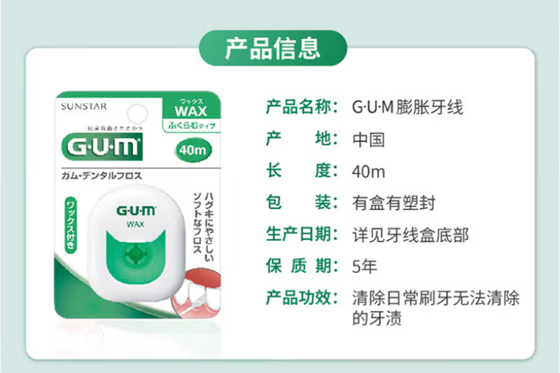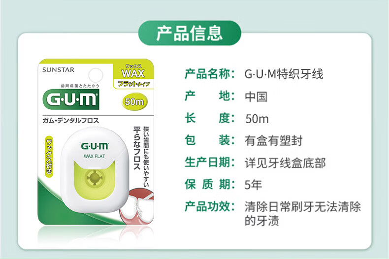 G·U·M康齿家牙周护理清洁牙线剔牙签清洁齿便携家庭装 含蜡牙线50M(温和护龈)1盒