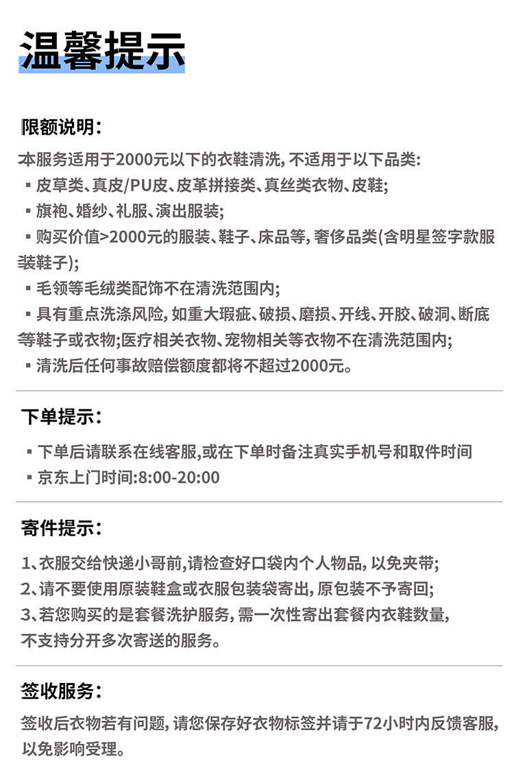 伊如新京东洗衣服务 衣鞋任洗 上门取件 干洗水洗 洗衣服洗鞋 去渍熨烫 杀菌消毒 价值2000元以下 3件/双 预约当天(下单后一小时左右取件)