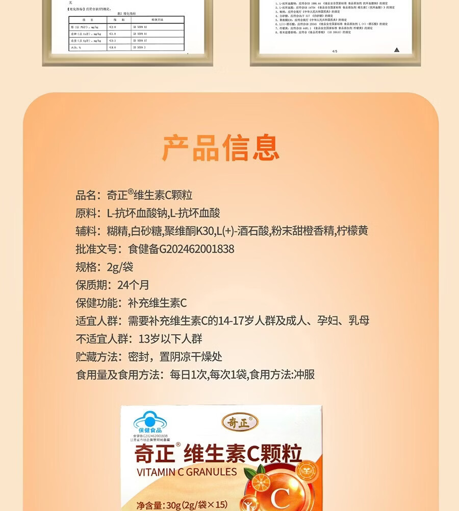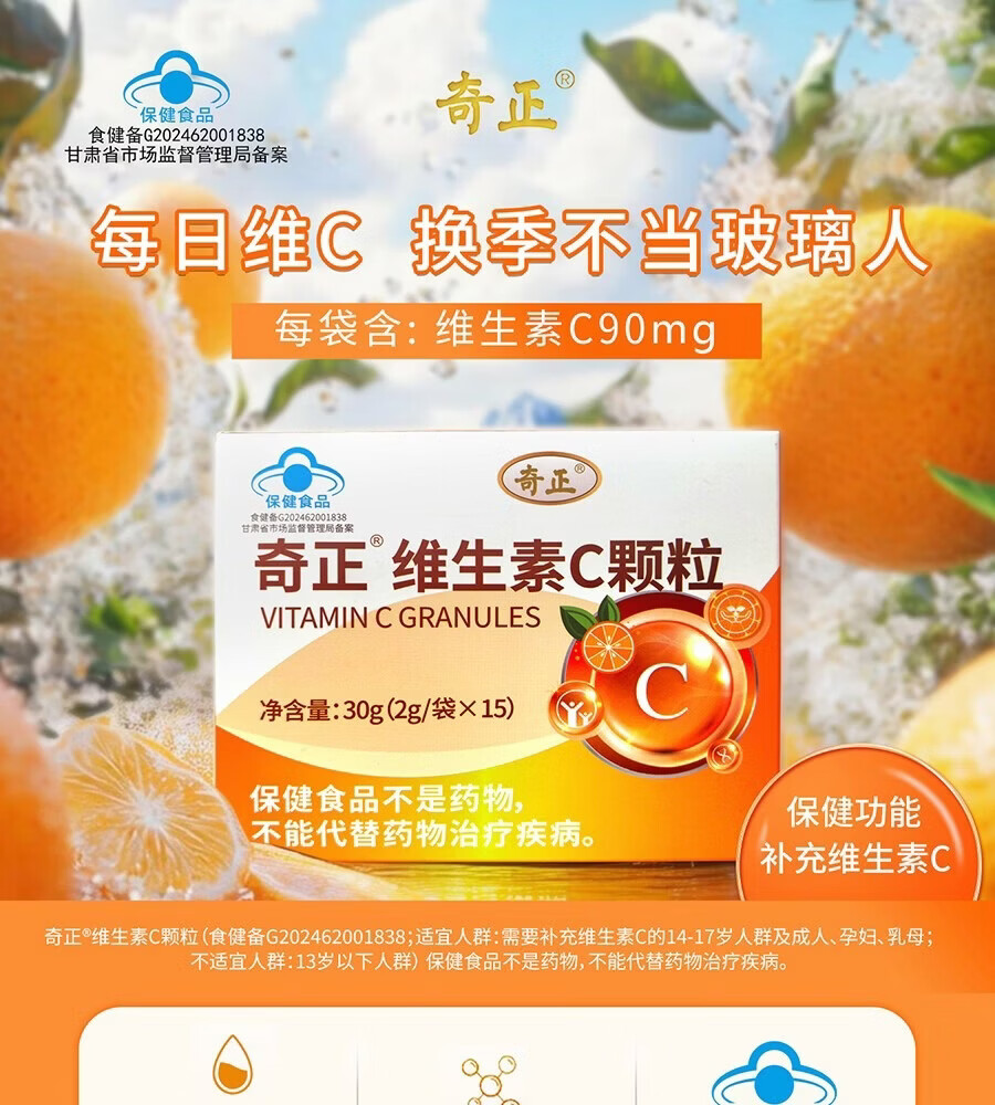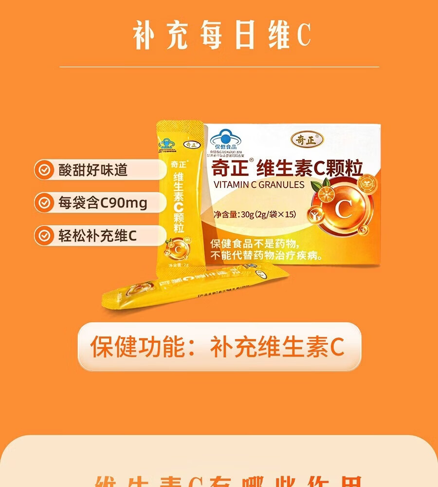 奇正维生素C颗粒补充维生素C颗粒青少年成人孕妇乳母15袋/盒 15袋*1盒