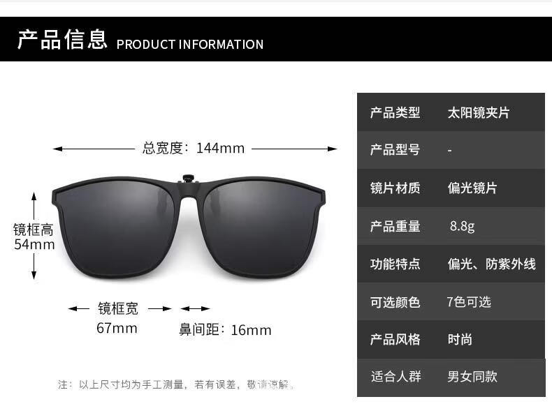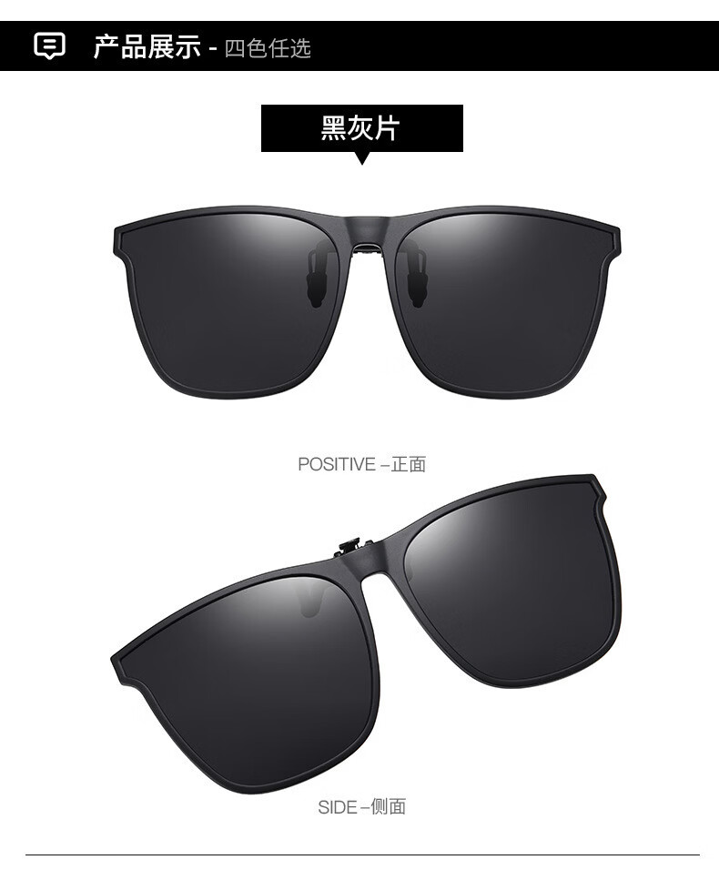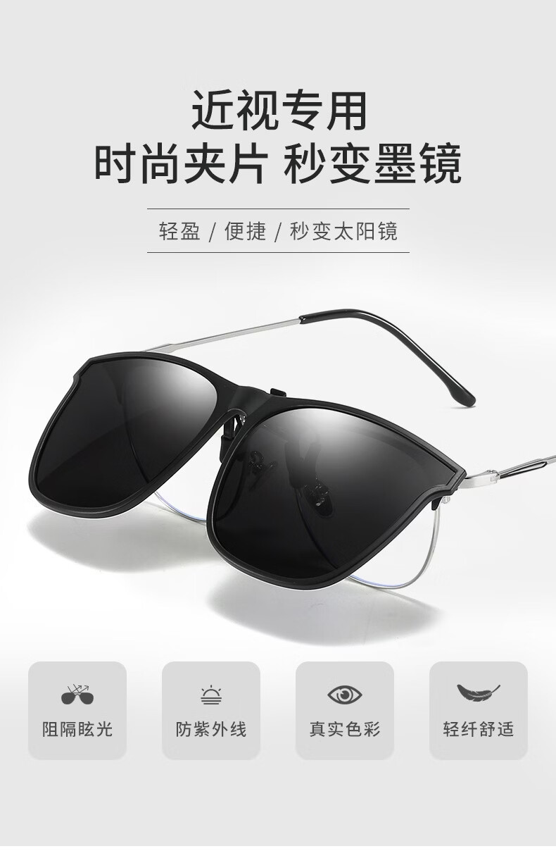 罗登堡偏光墨镜夹片近视男士变色防紫外线开车夜视太阳镜片眼镜夹片式女 高清偏光黑灰片 隐藏夹子