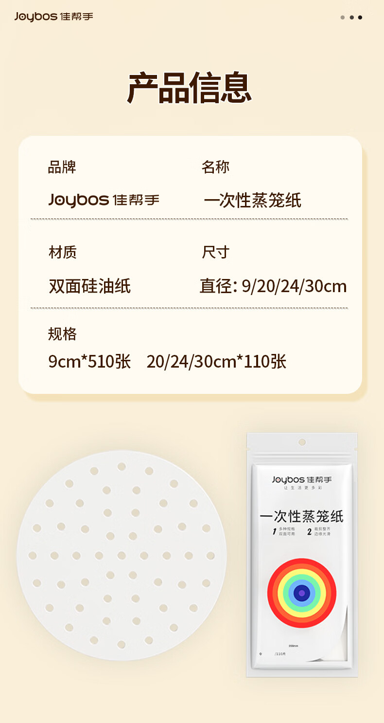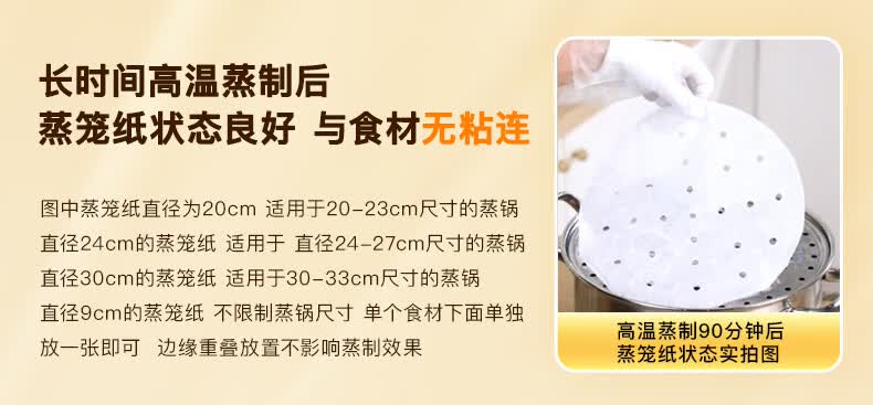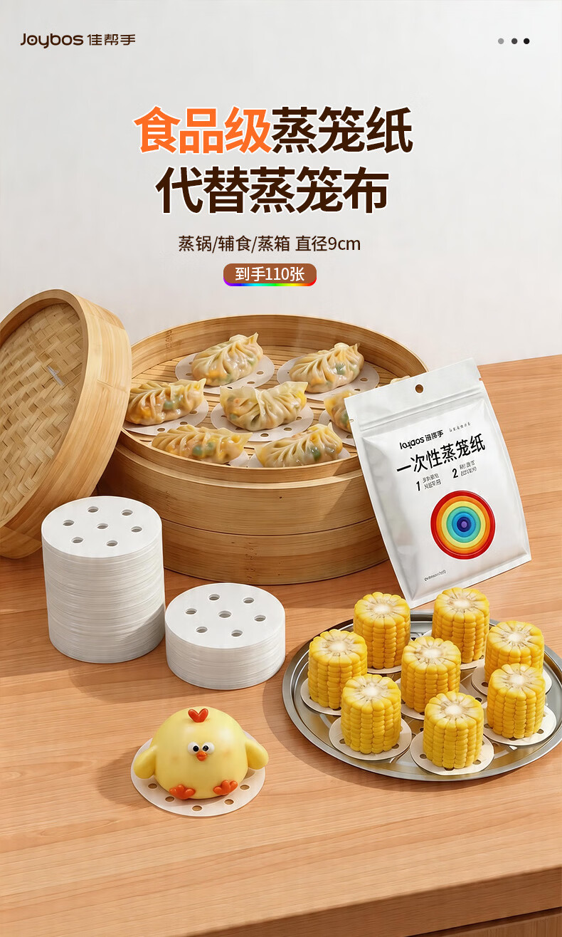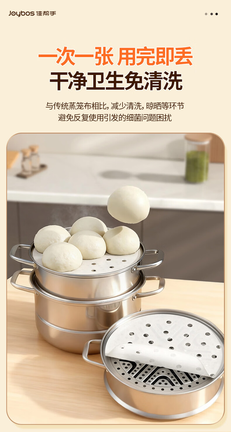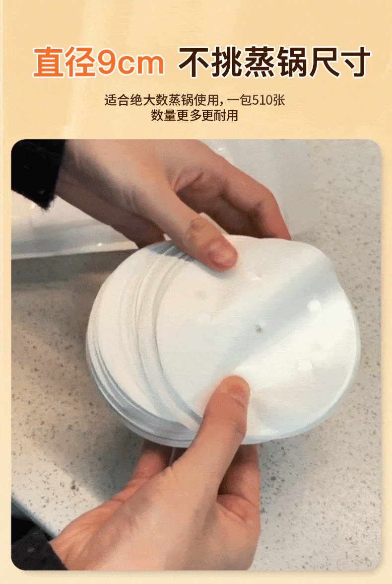 佳帮手【谢霆锋推荐】蒸笼纸圆形一次性不粘蒸锅纸加厚垫纸510张 9cm