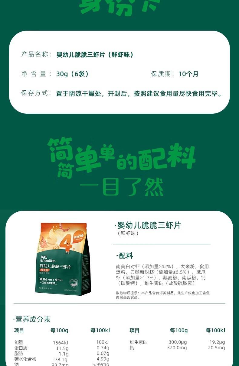 英氏(Engnice)婴幼儿鲜虾片宝宝婴儿零食非油炸磨牙饼干30g零食解馋鲜香