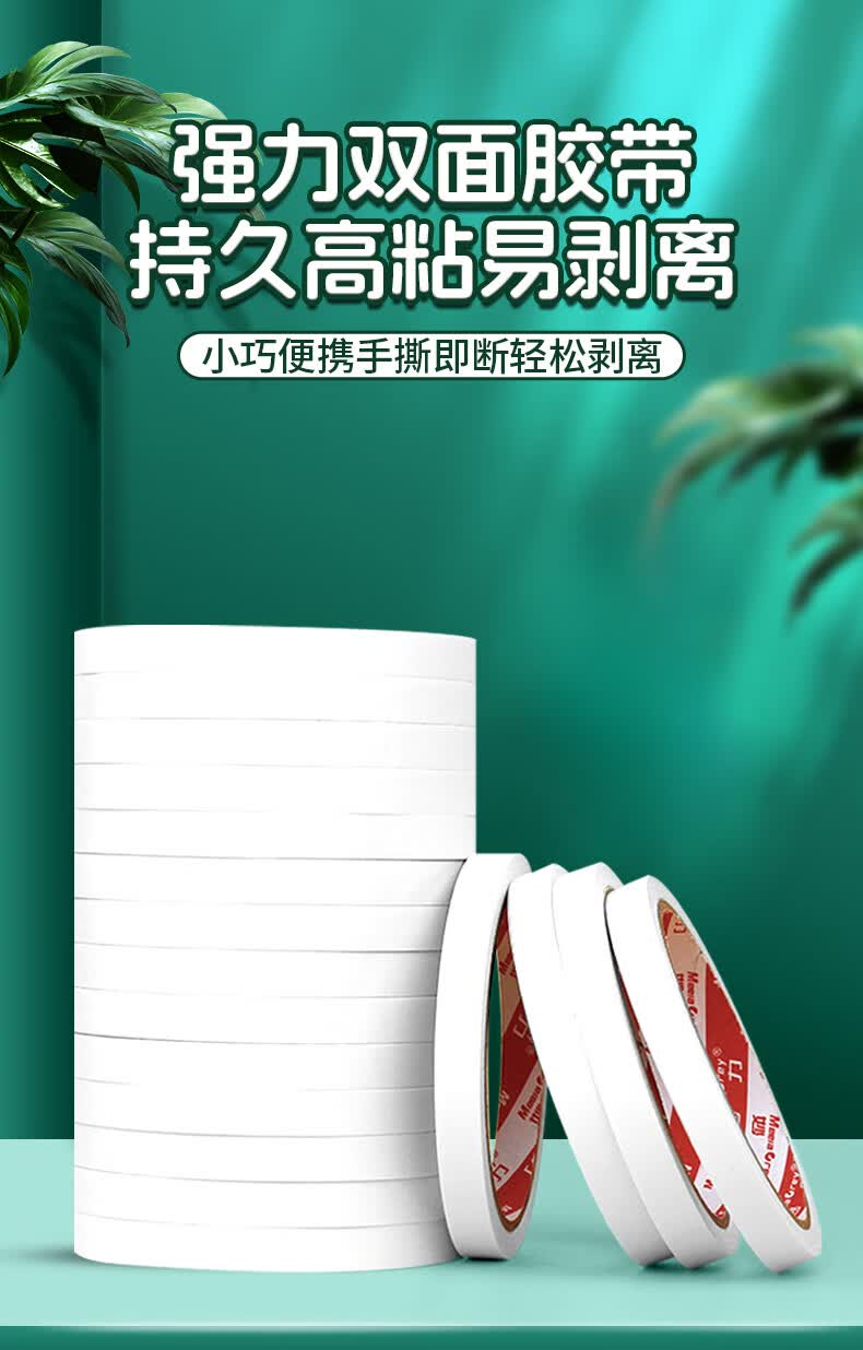 双面胶带棉纸双面胶带 可手撕粘性强不易残胶 手工diy礼品活动包装布置适用 双面胶-宽8mm*10y【6卷】