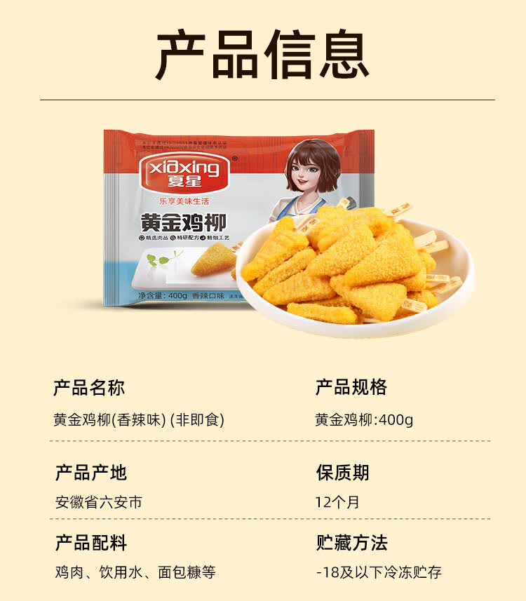 夏星黄金鸡柳1kg鸡柳半成品空气炸锅冷冻小吃 油炸鸡肉串牙签肉商用 黄金鸡柳1kg*1袋