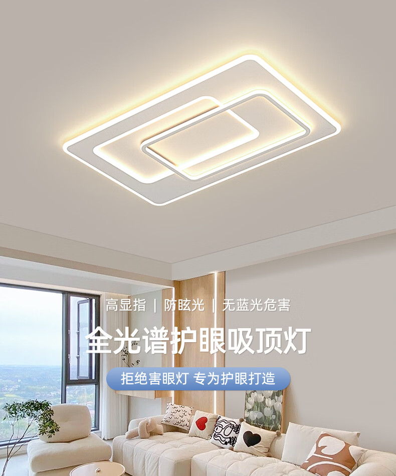 欧普照明(OPPLE)吸顶灯客厅灯现代简约大气卧室灯2026新款室内全屋护眼方型灯具 白色【包安装】客厅灯 智能调光调色(送遥控) 110x60x4cm x 88W