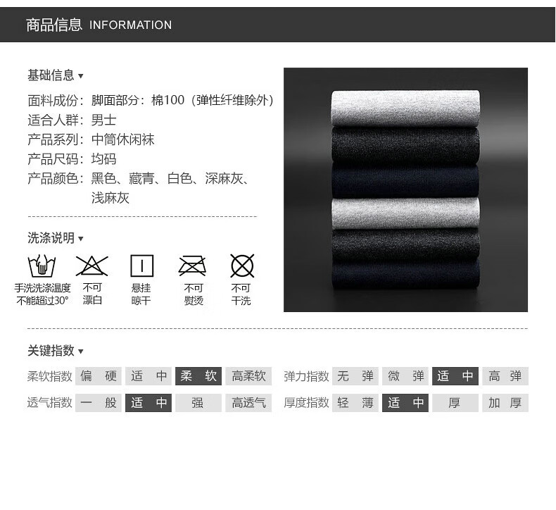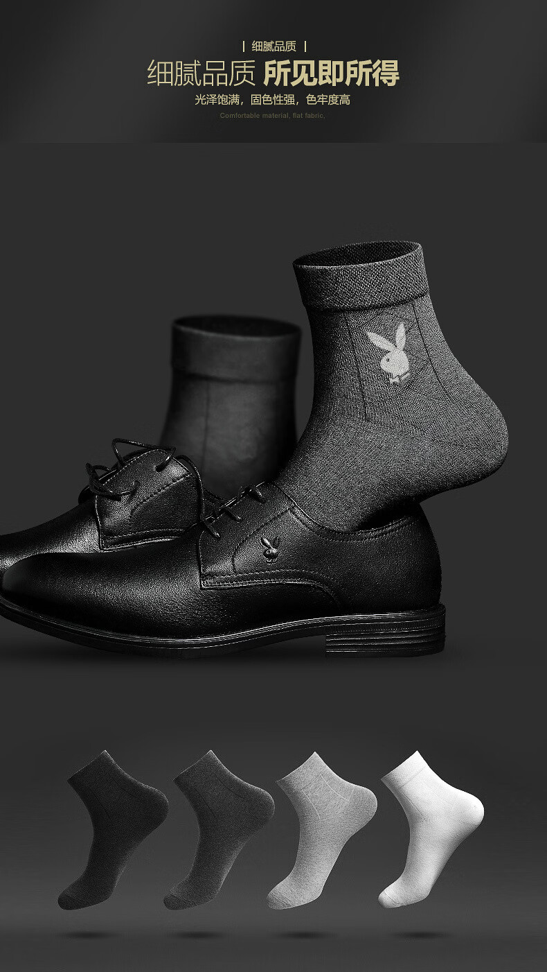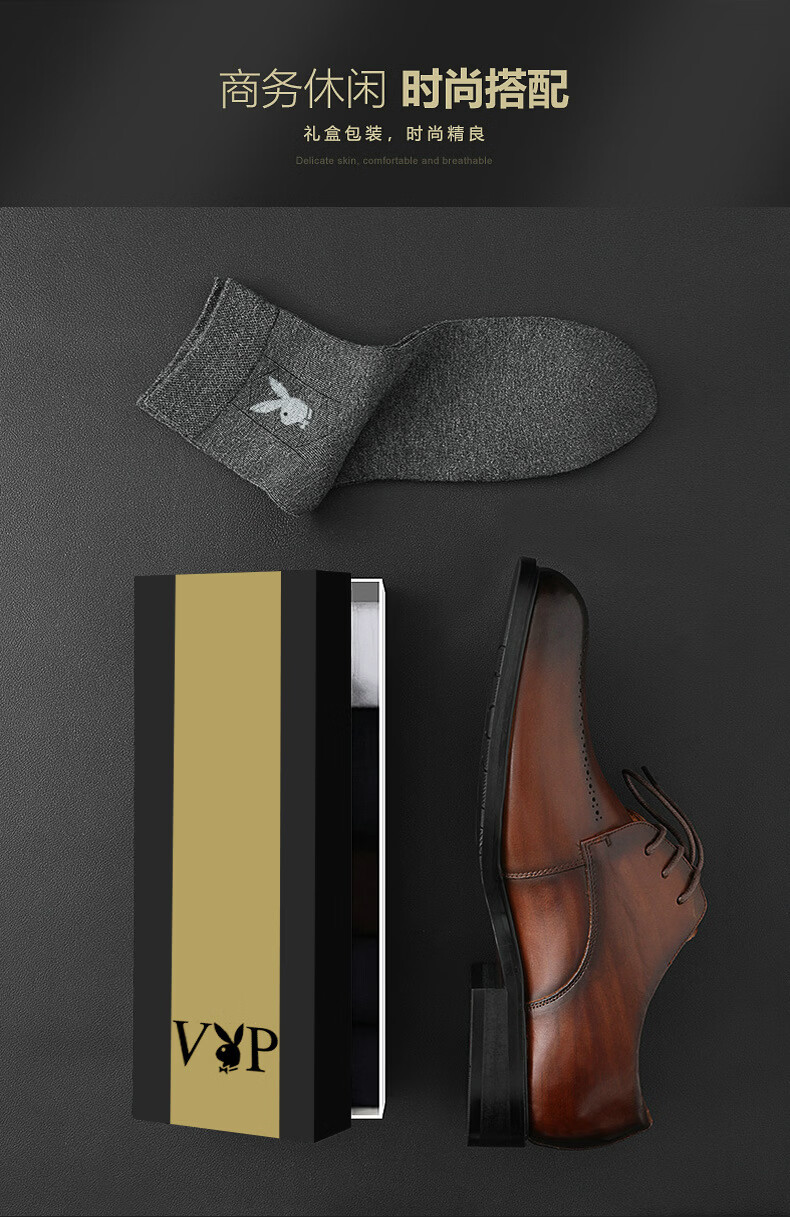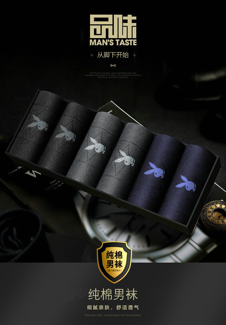 花花公子袜子男士纯棉中筒运动潮袜吸汗轻奢舒适透气 盒装【VIP6612】 6双 均码 (39-44码)