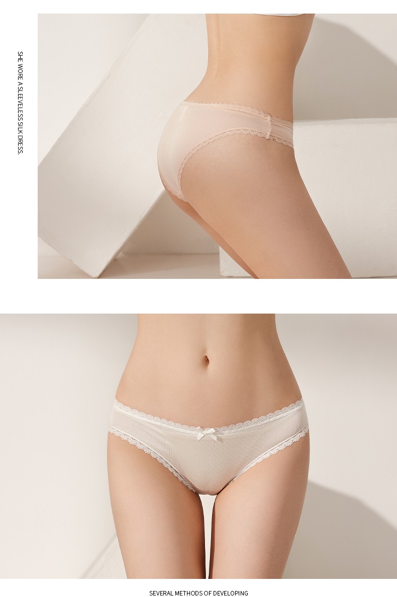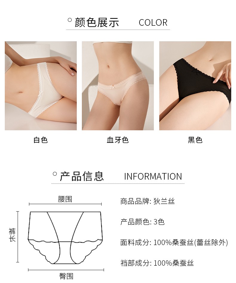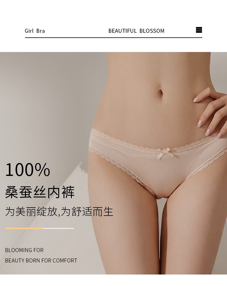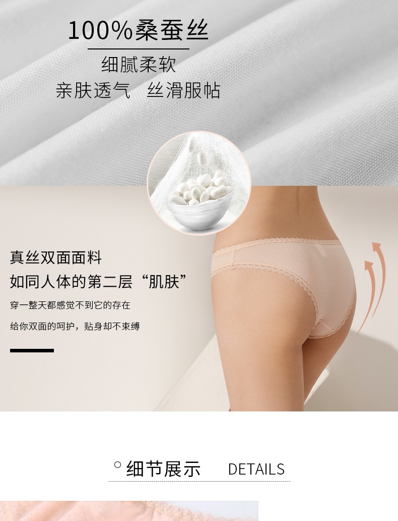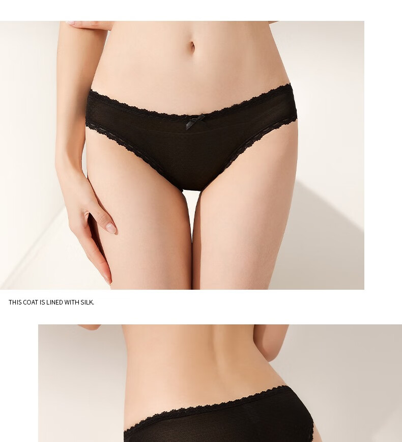 狄兰丝(dilansi)清苍真丝内裤女低腰三角裤可爱小底裤100%桑蚕丝春夏凉感蕾丝花边 灰色 1条 L (建议100-115斤)
