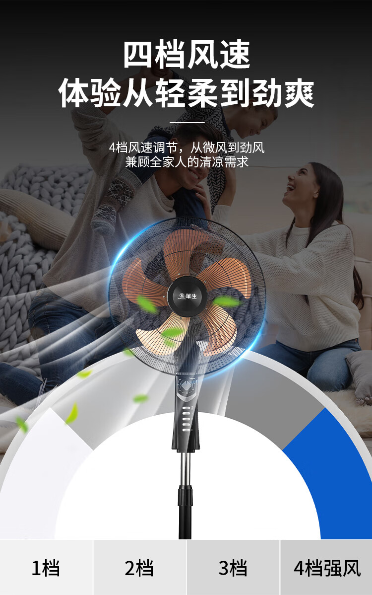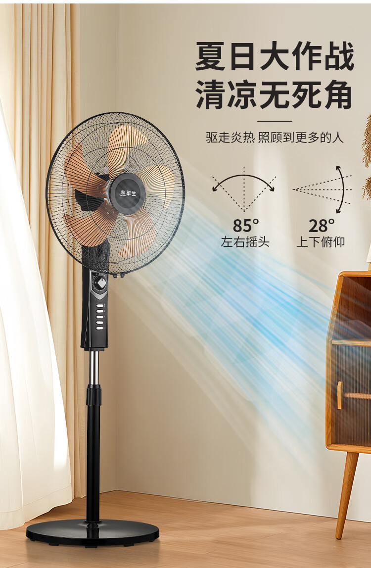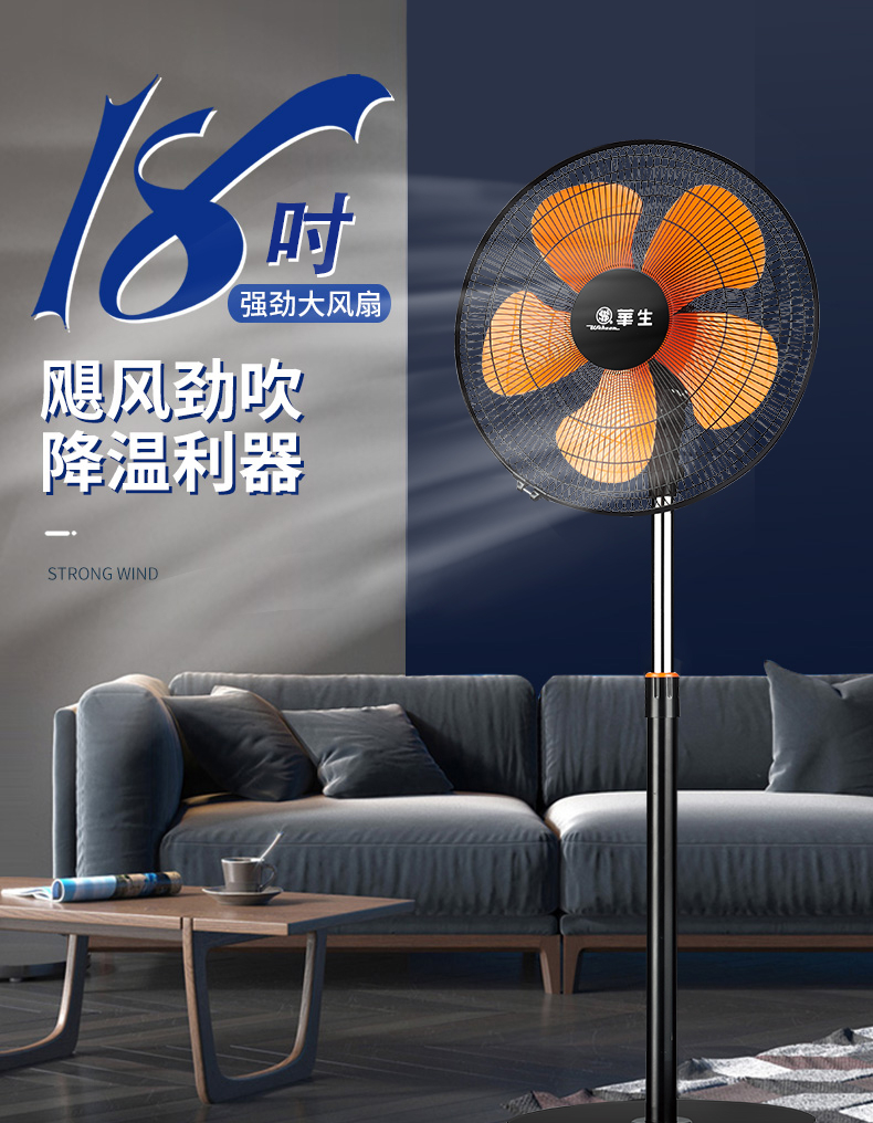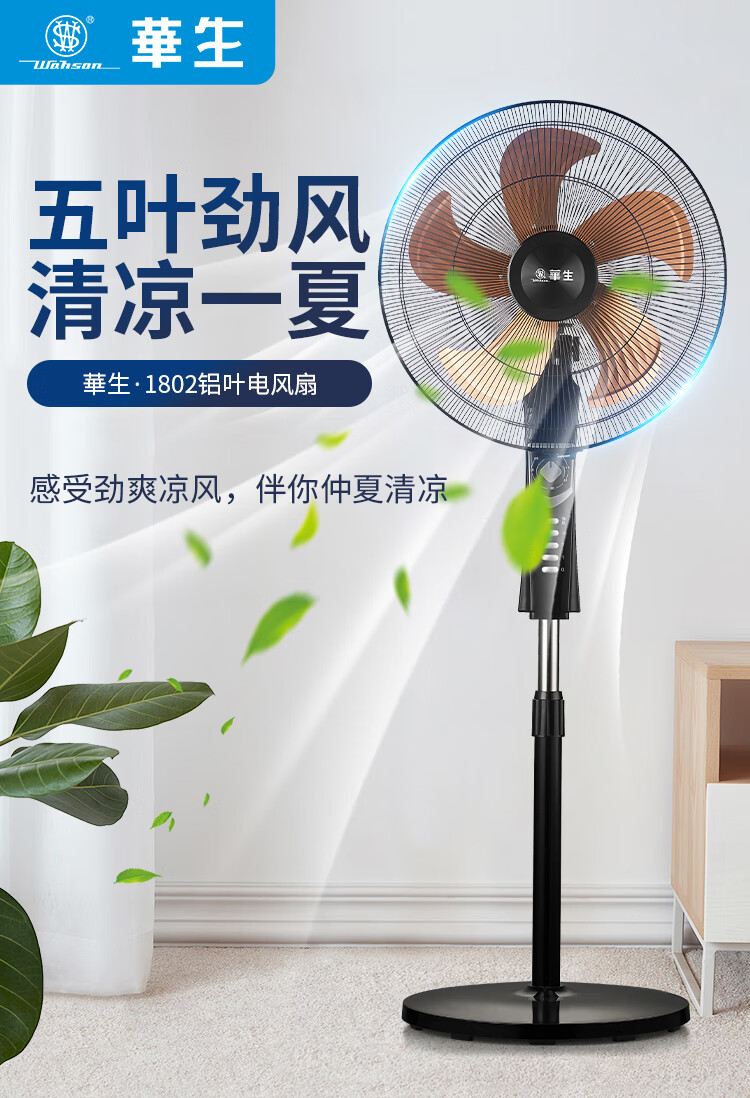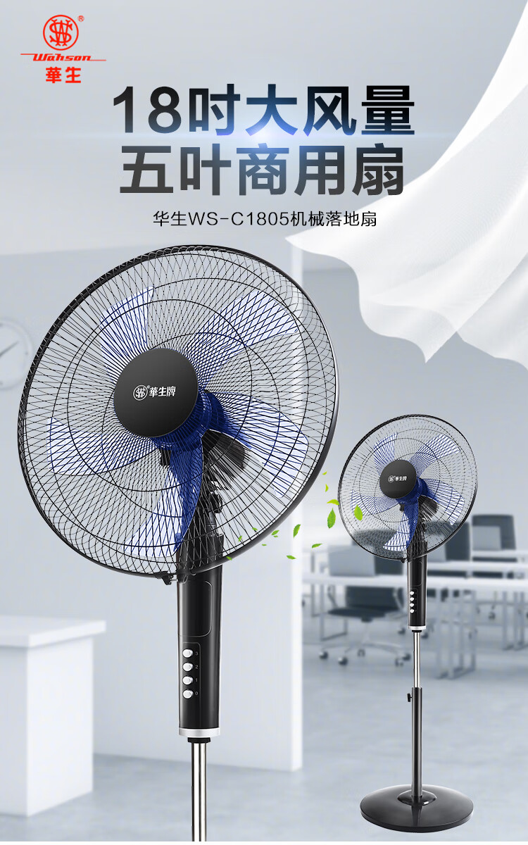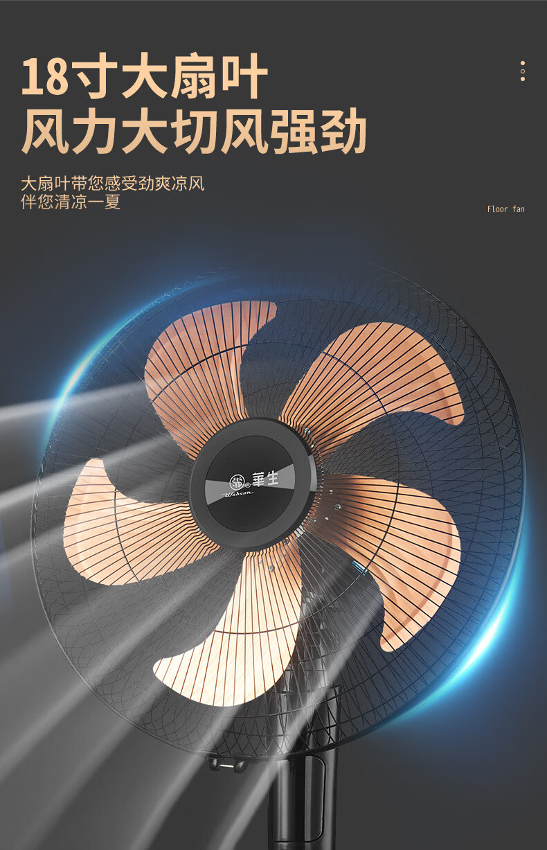 华生(Wahson)电风扇落地扇家用风扇立式大风力客厅宿舍五叶金属风扇轻音节能劲风远距电扇 18吋牛角扇三叶低噪大风量FS-D1806黑色