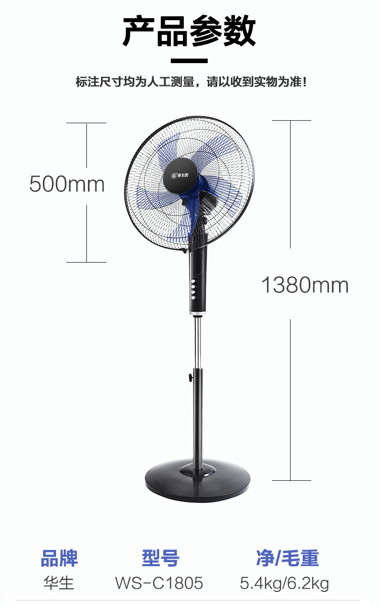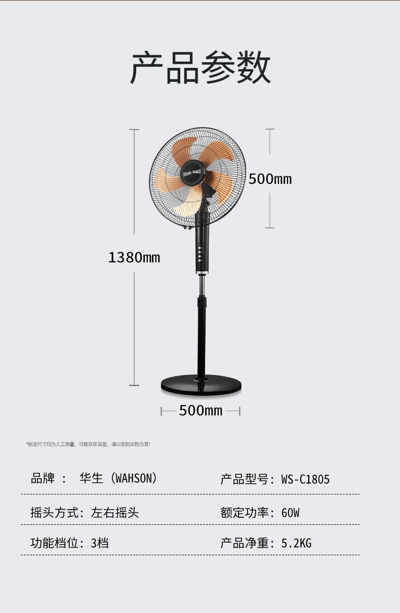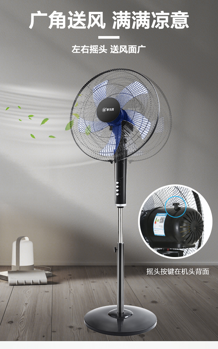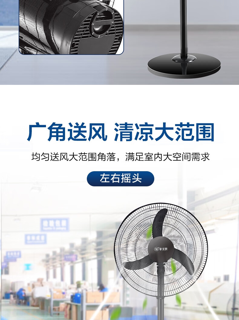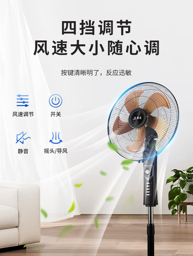 华生(Wahson)电风扇落地扇家用风扇立式大风力客厅宿舍五叶金属风扇轻音节能劲风远距电扇 18吋牛角扇三叶低噪大风量FS-D1806黑色