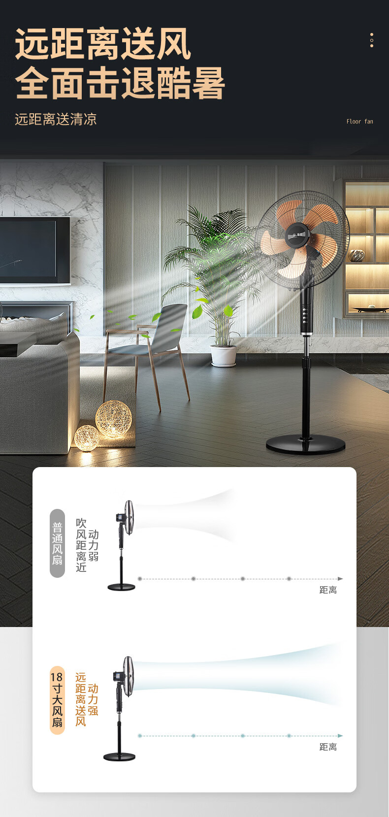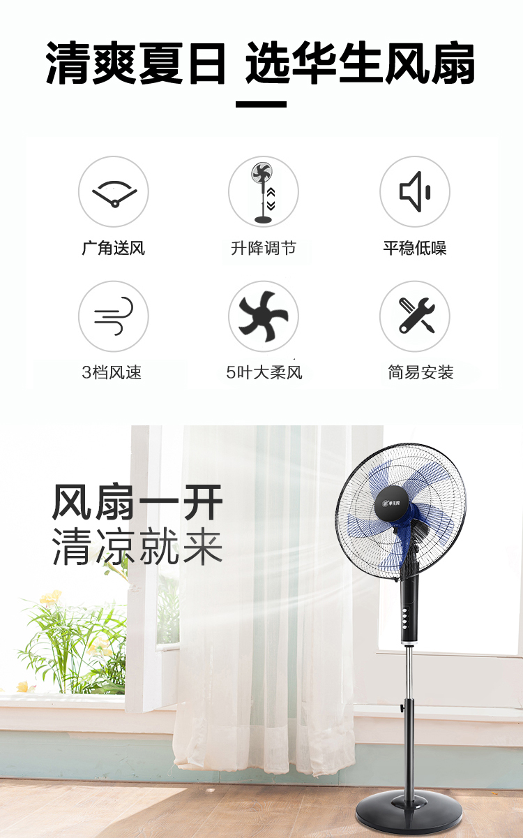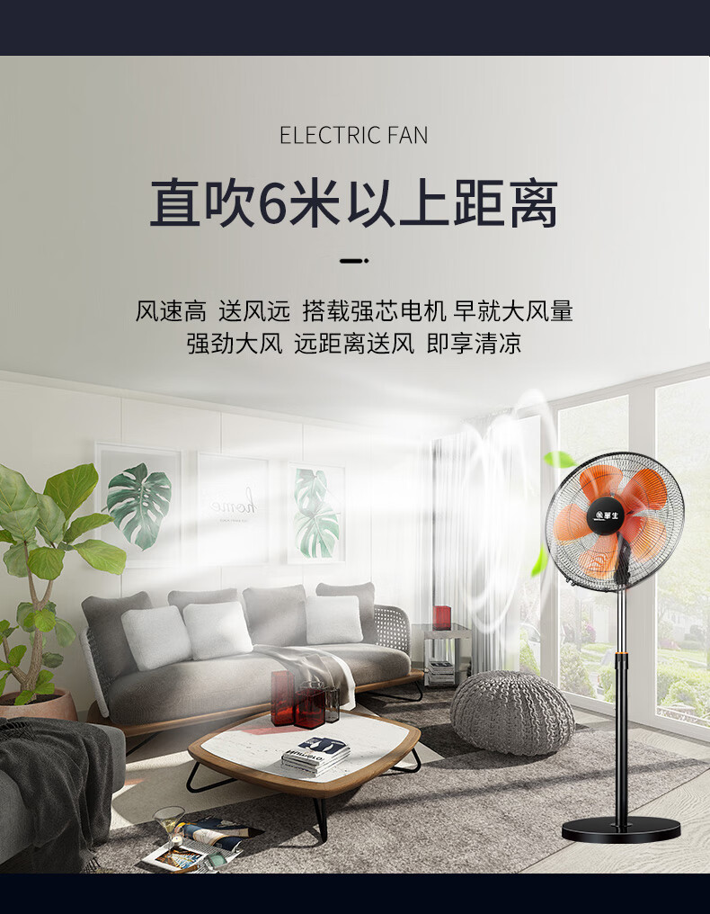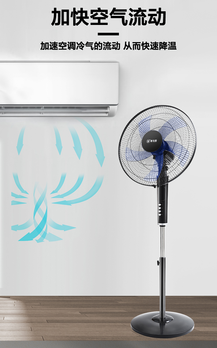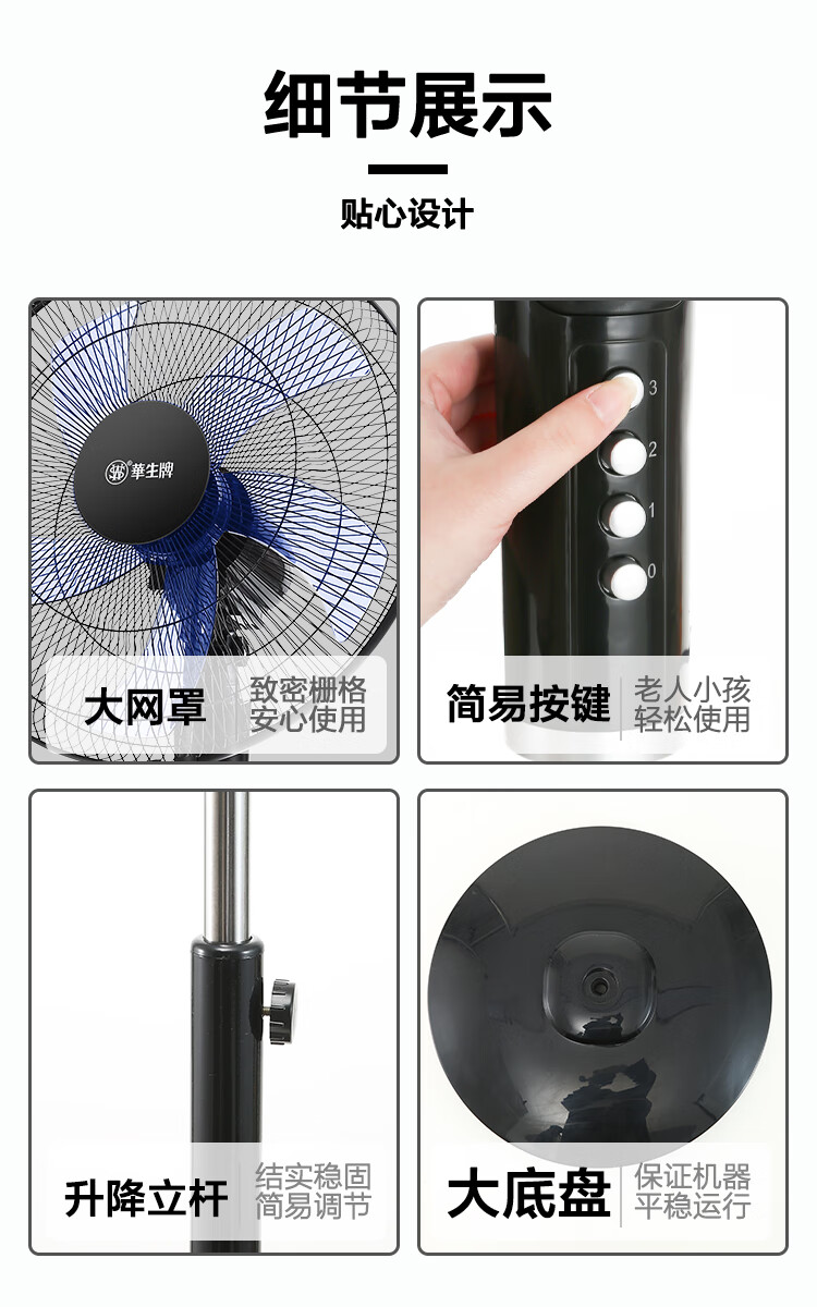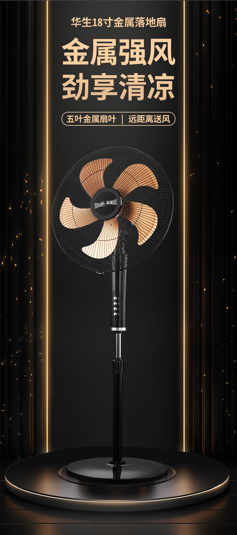 华生(Wahson)电风扇落地扇家用风扇立式大风力客厅宿舍五叶金属风扇轻音节能劲风远距电扇 18吋牛角扇三叶低噪大风量FS-D1806黑色