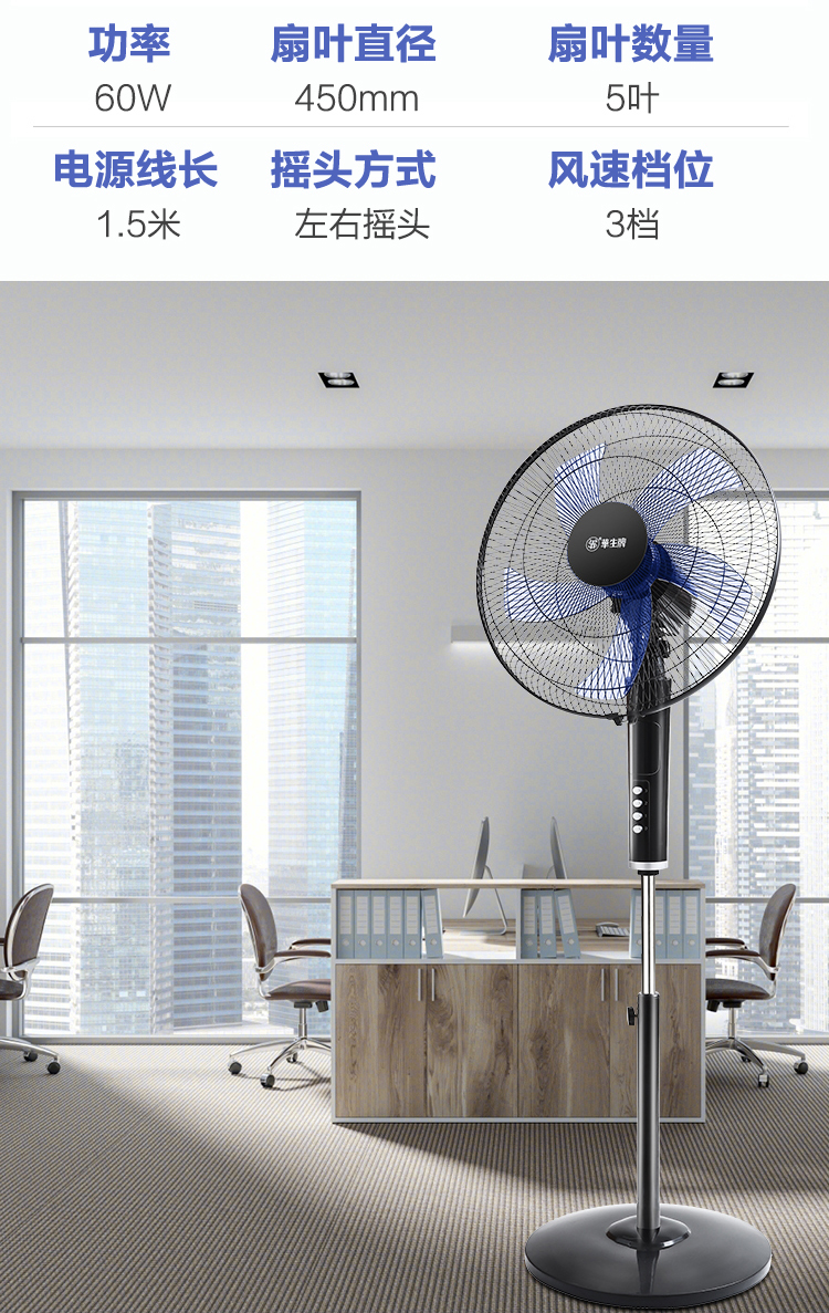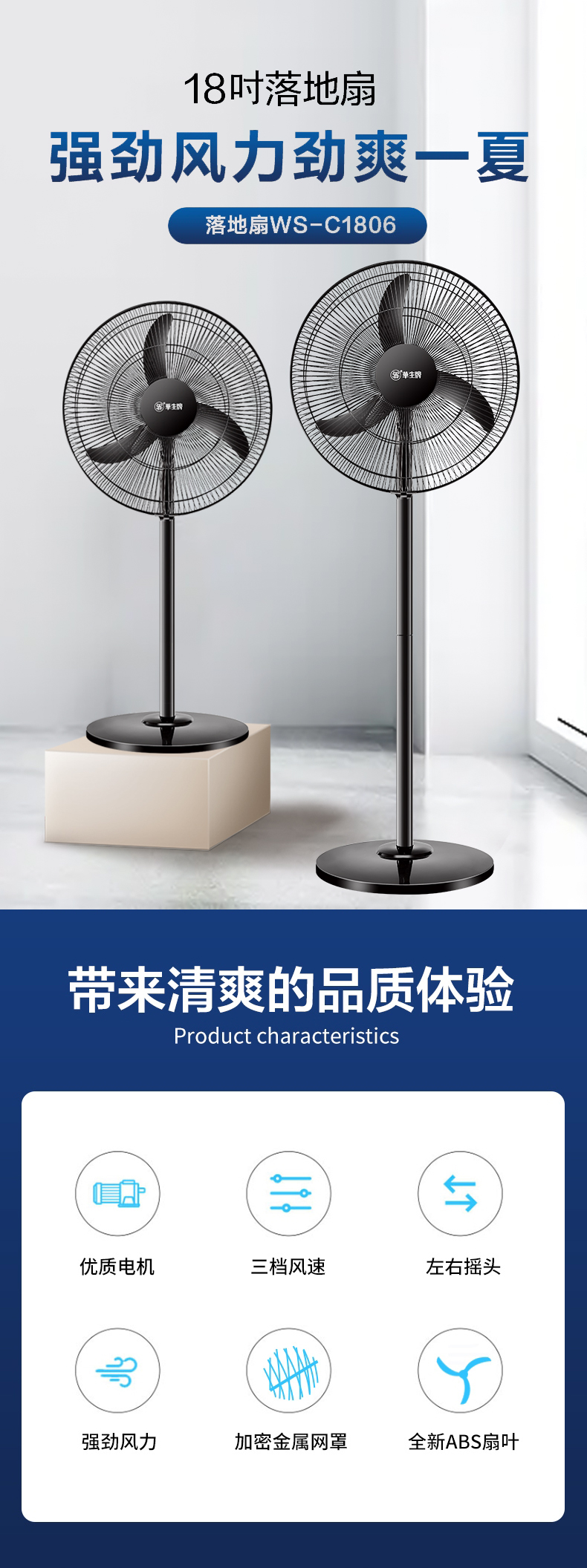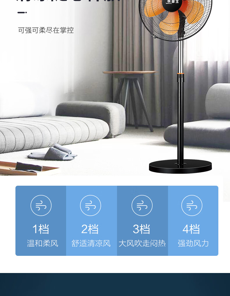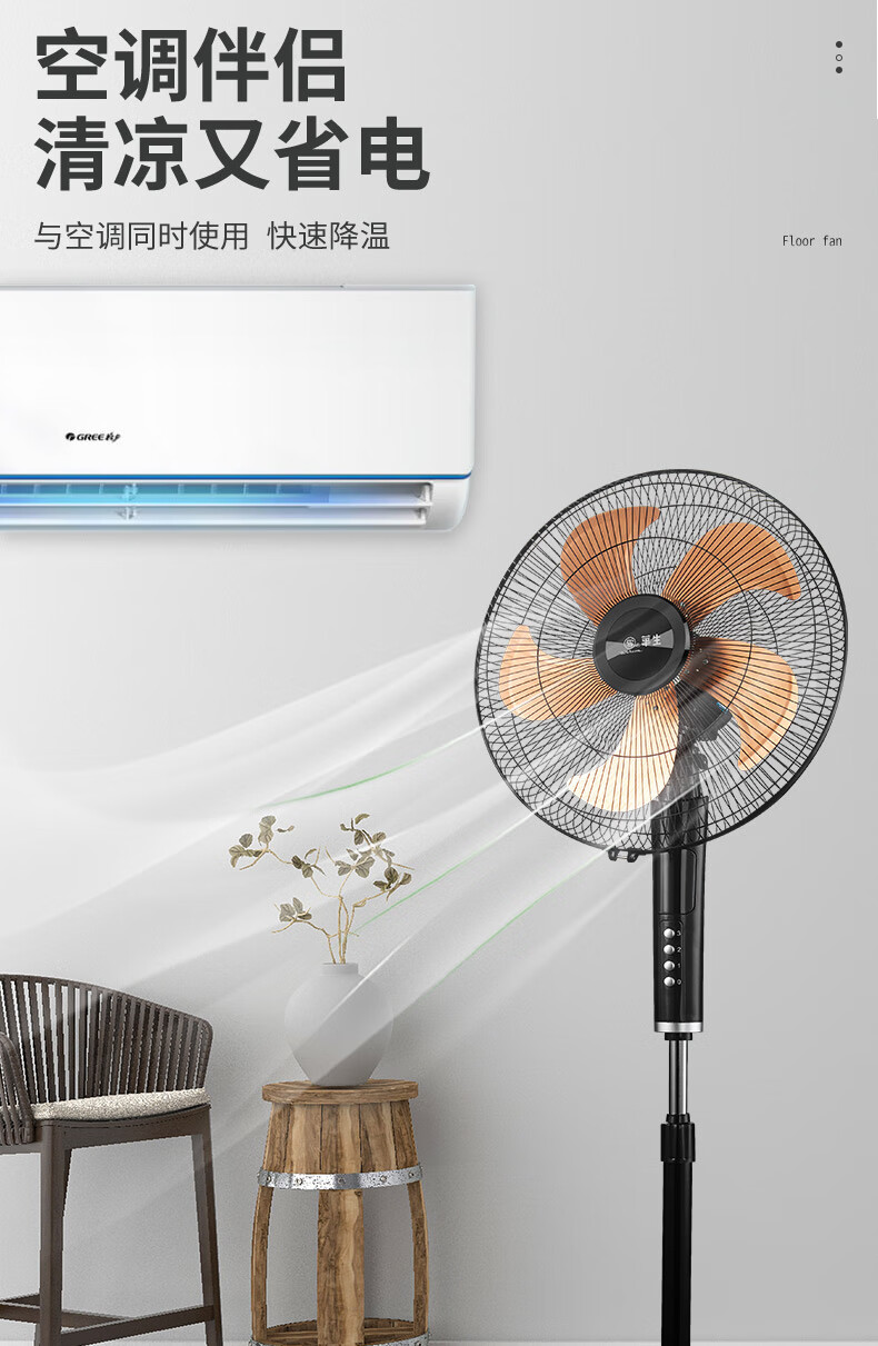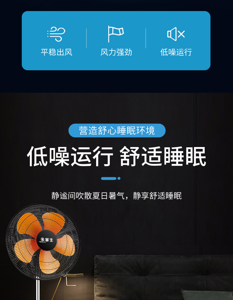 华生(Wahson)电风扇落地扇家用风扇立式大风力客厅宿舍五叶金属风扇轻音节能劲风远距电扇 18吋牛角扇三叶低噪大风量FS-D1806黑色