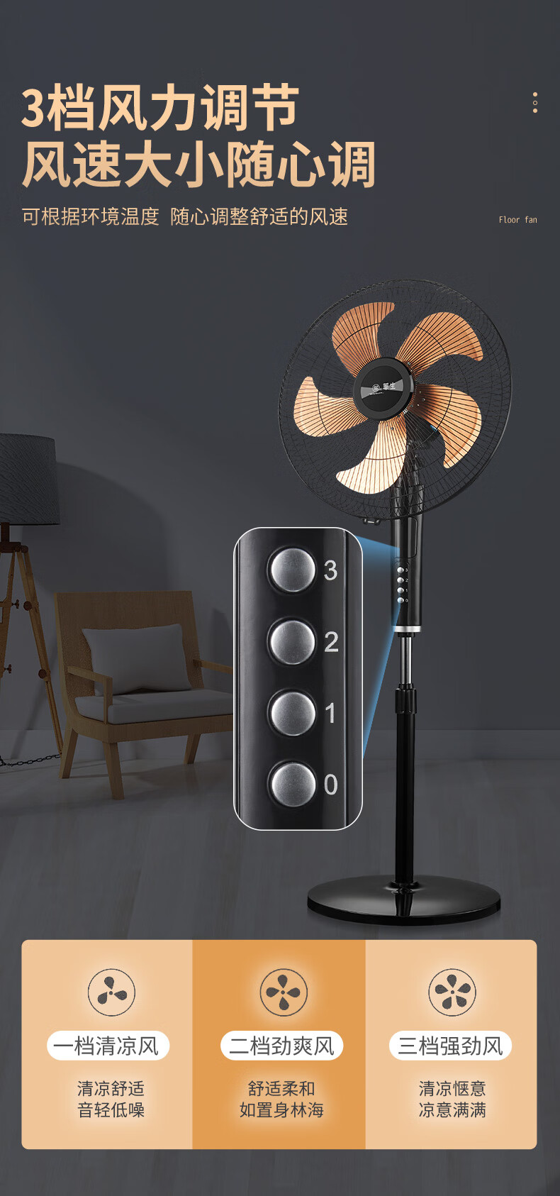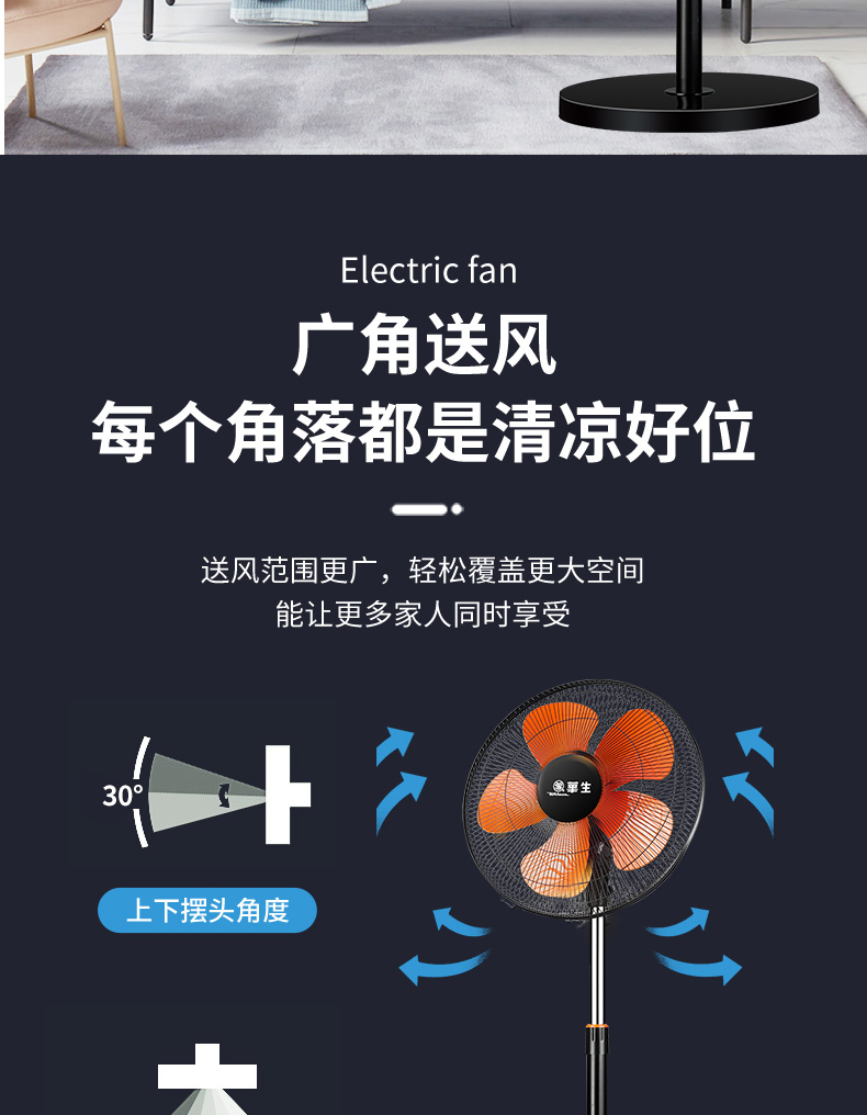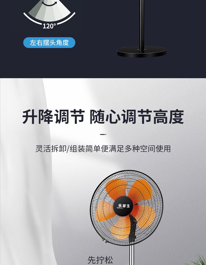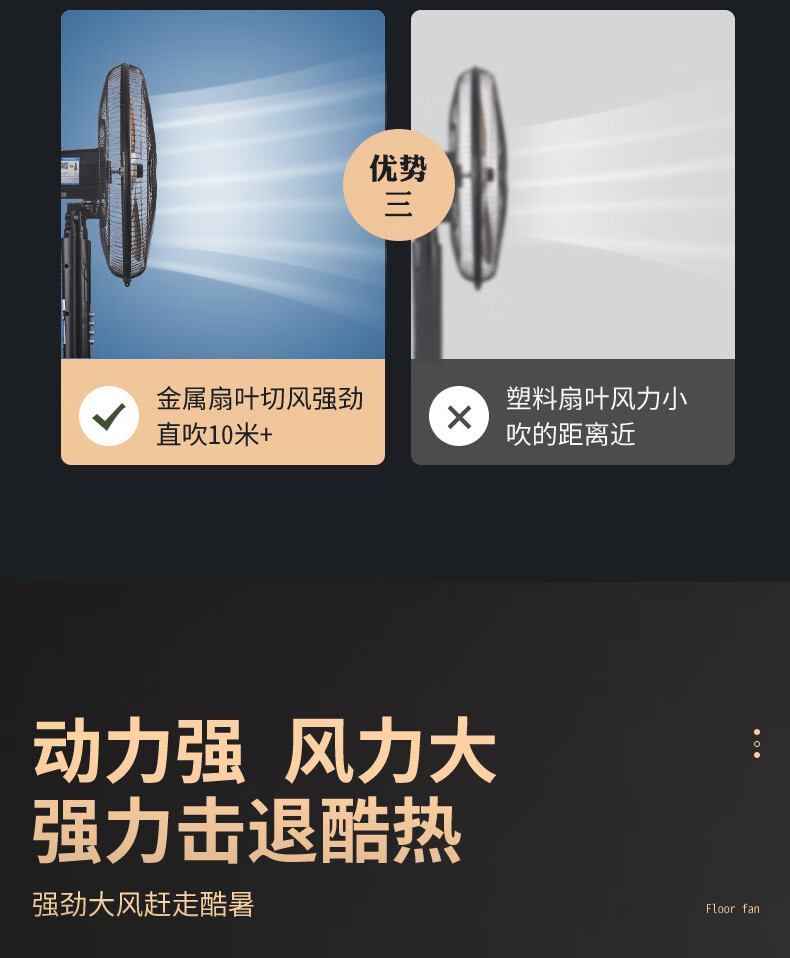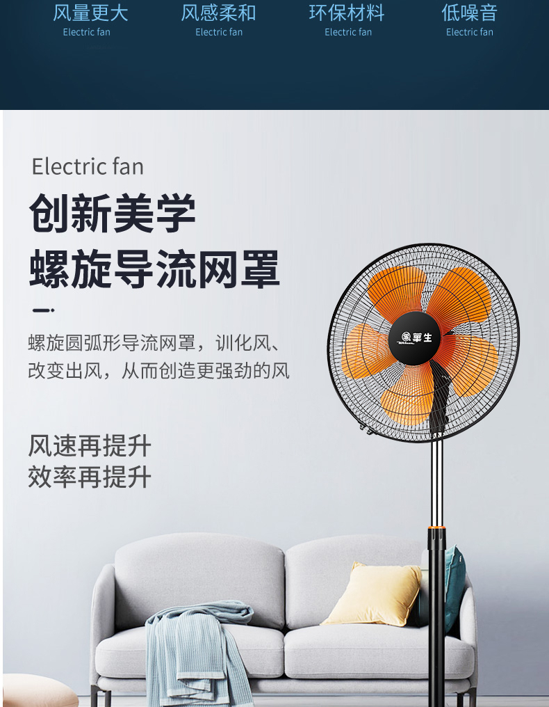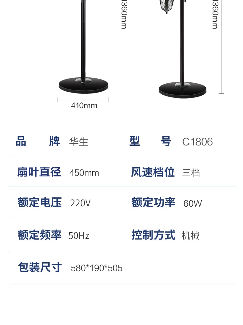 华生(Wahson)电风扇落地扇家用风扇立式大风力客厅宿舍五叶金属风扇轻音节能劲风远距电扇 18吋牛角扇三叶低噪大风量FS-D1806黑色