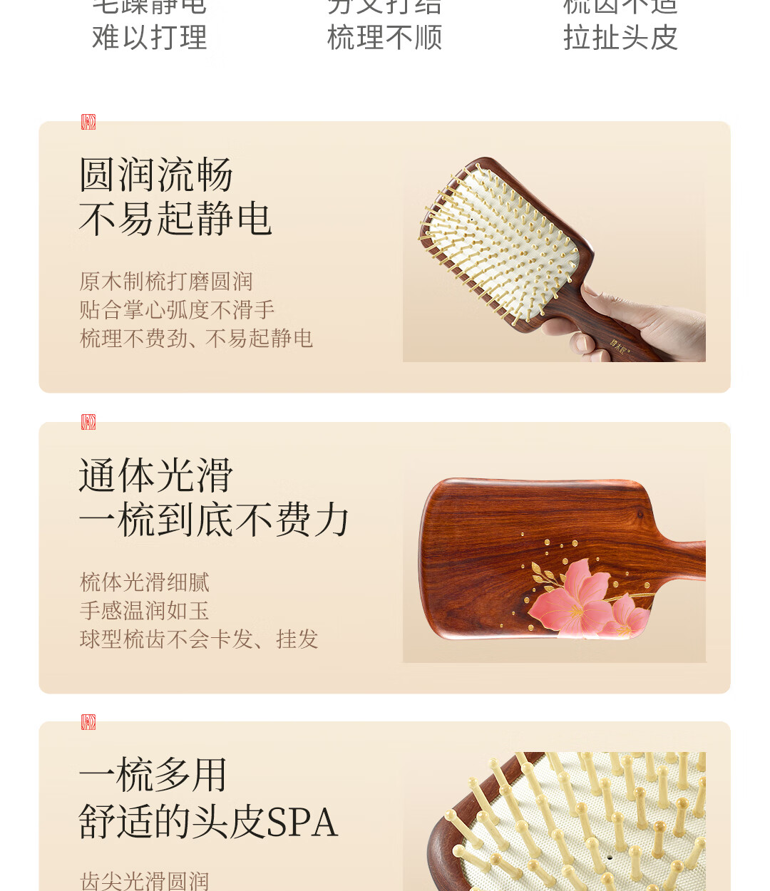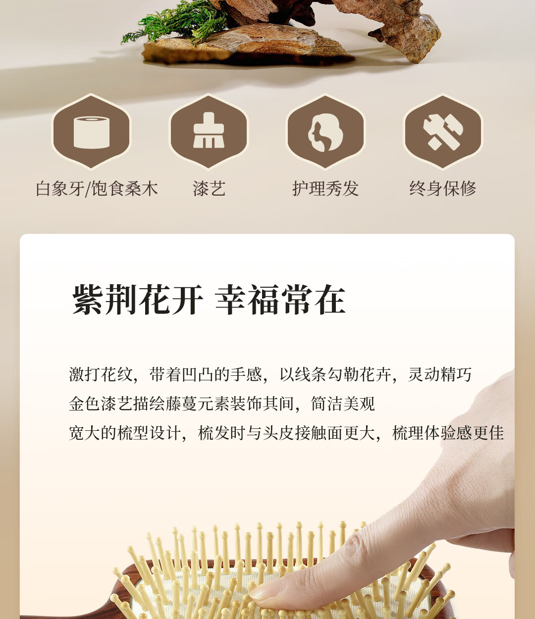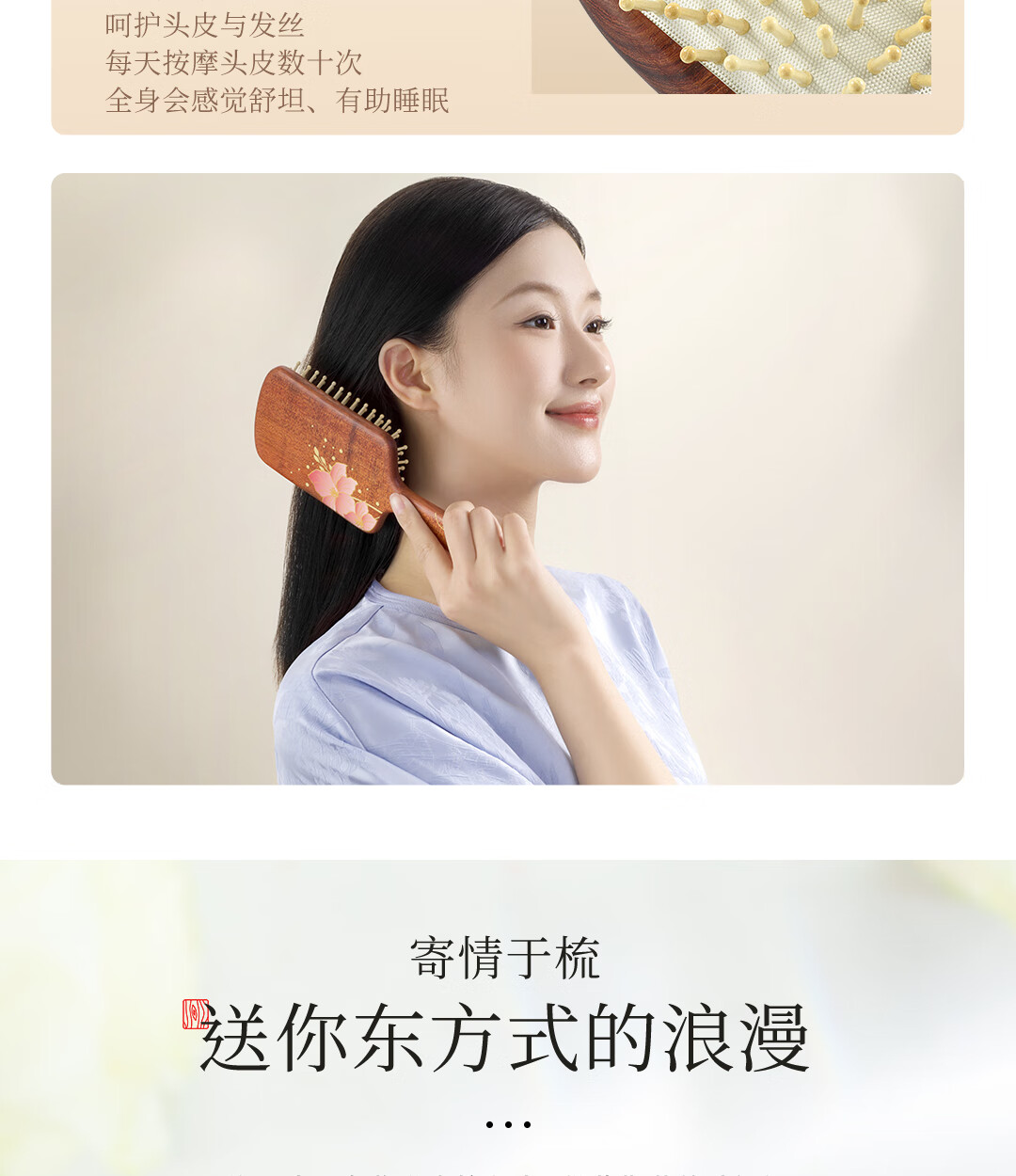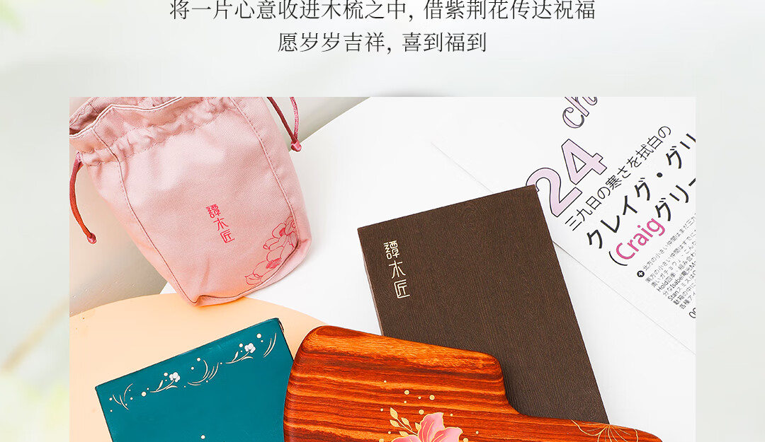 谭木匠 气垫梳子礼盒紫荆花开1-1居家日用护发按摩头皮送亲友木气囊梳子