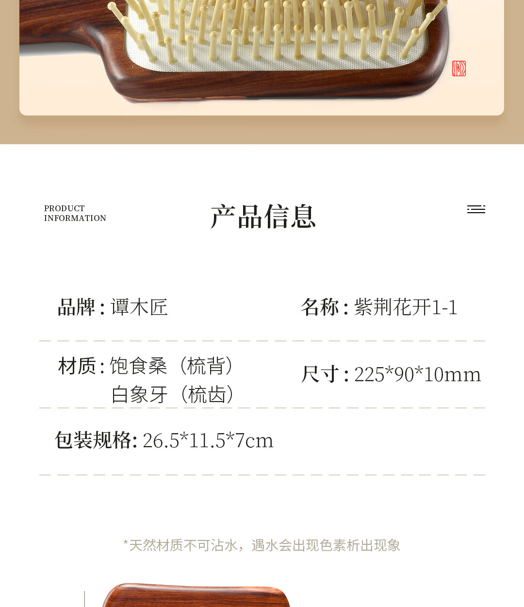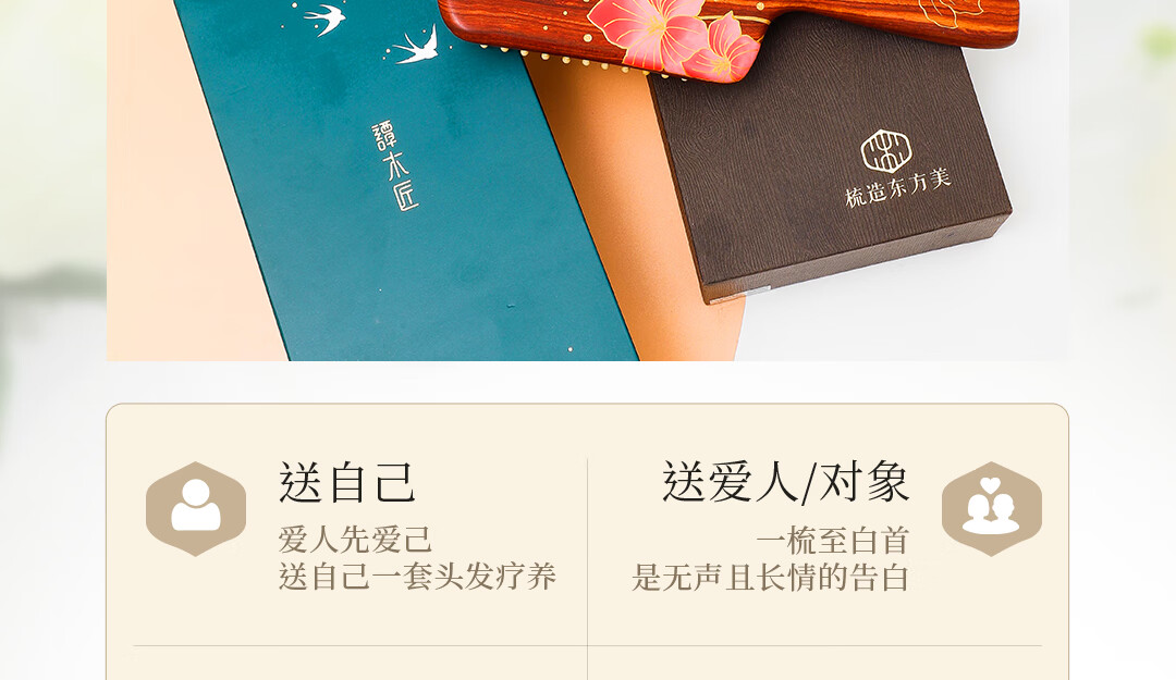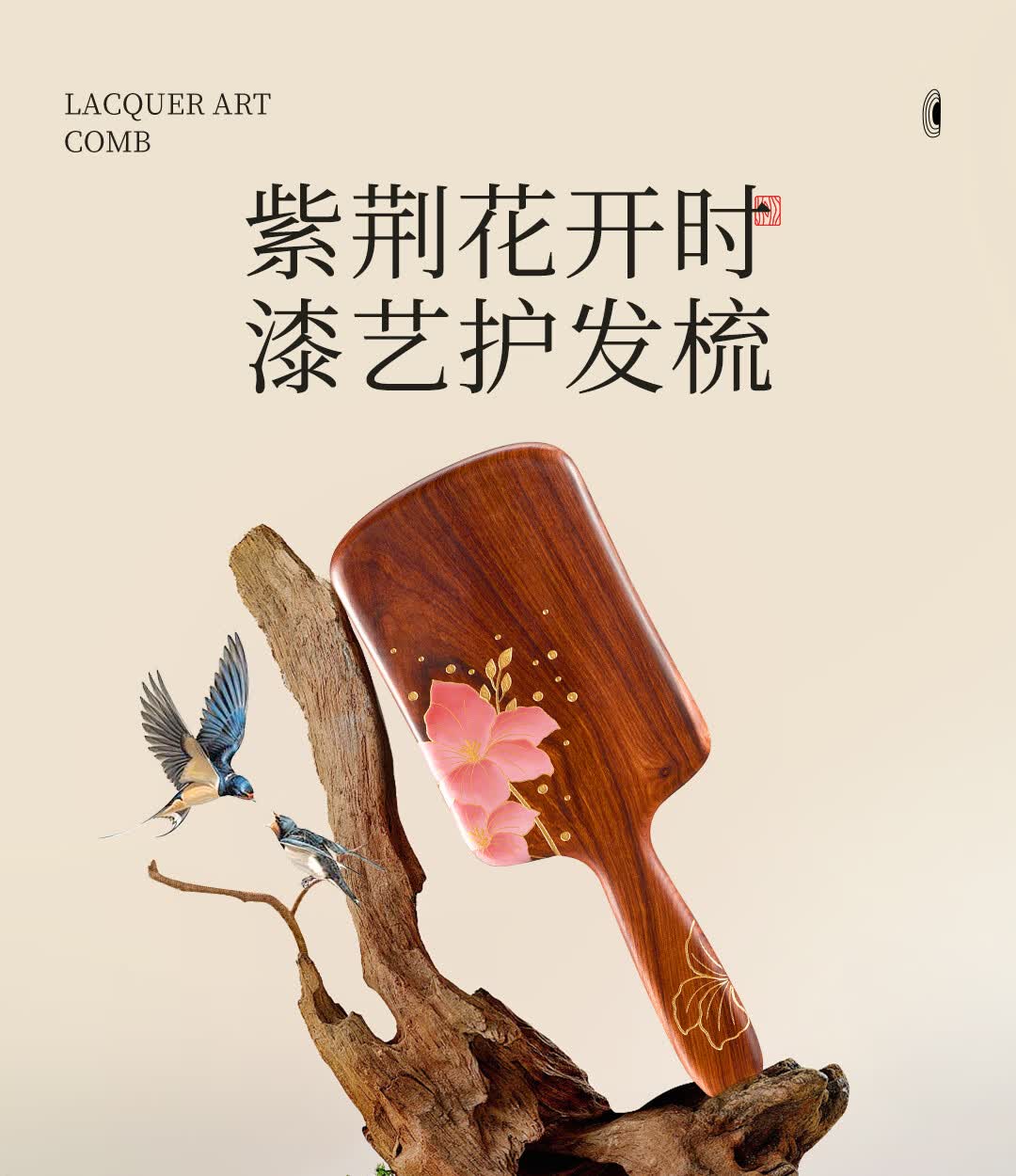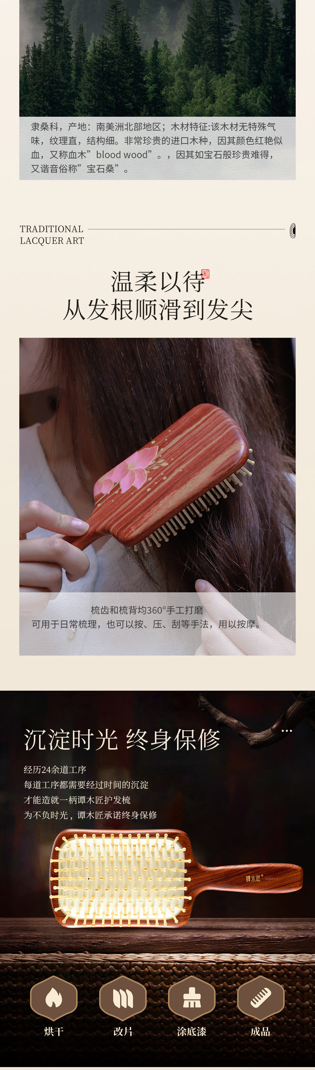 谭木匠 气垫梳子礼盒紫荆花开1-1居家日用护发按摩头皮送亲友木气囊梳子