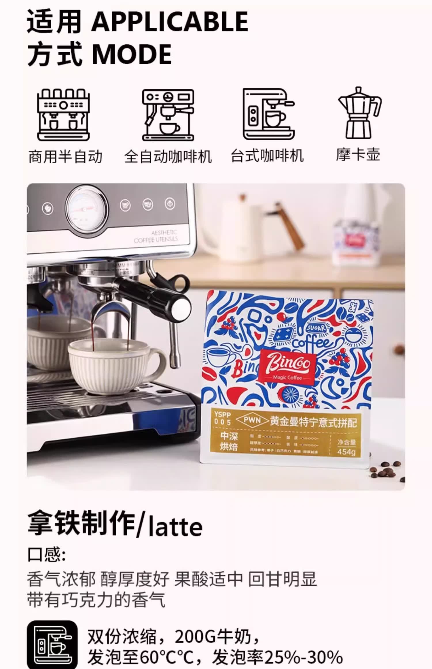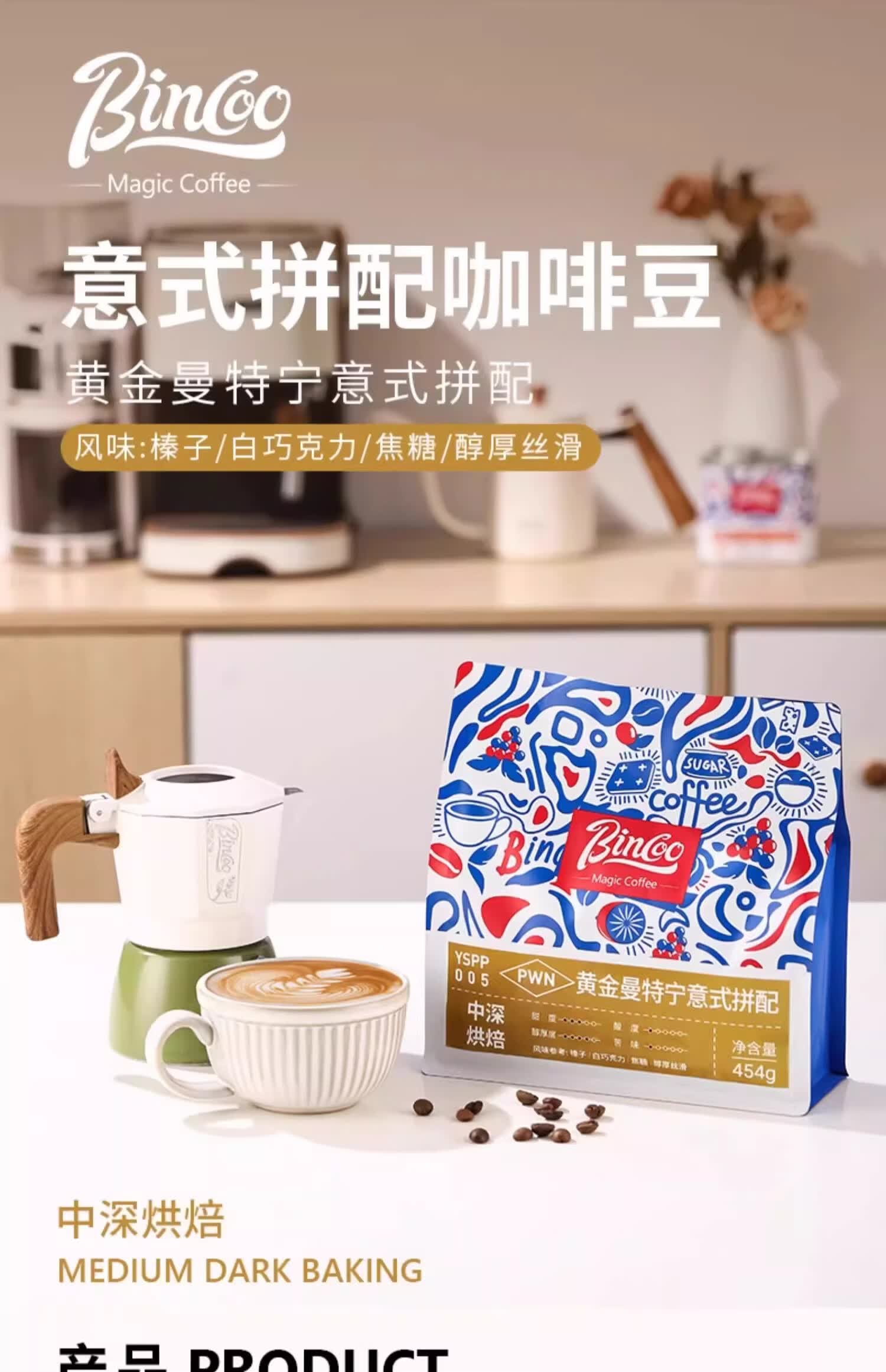 Bincoo果丁丁意式拼配咖啡豆中深烘焙咖啡机摩卡壶萃取冰美式拿铁 227g袋装