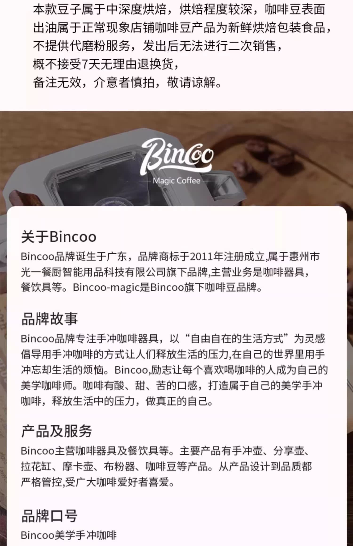 Bincoo耶加雪菲花田甜柠茶意式拼配咖啡豆中深烘焙咖啡机摩卡壶用 227g袋装