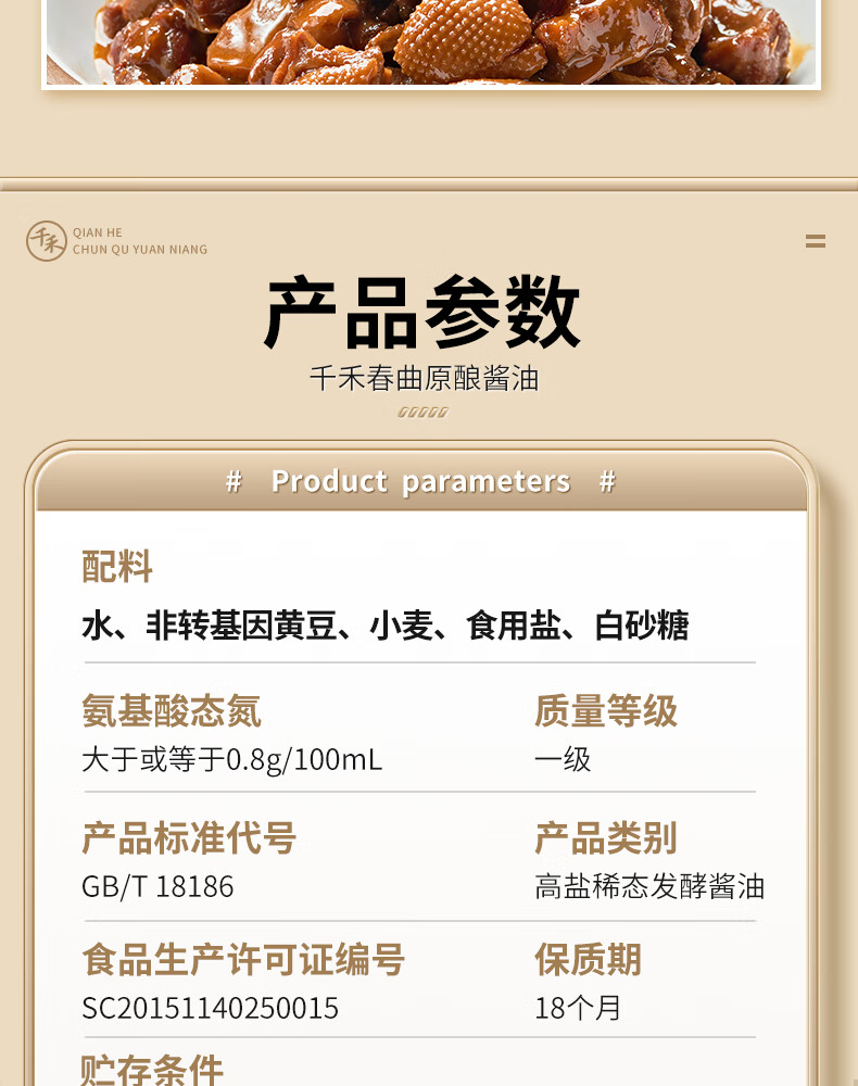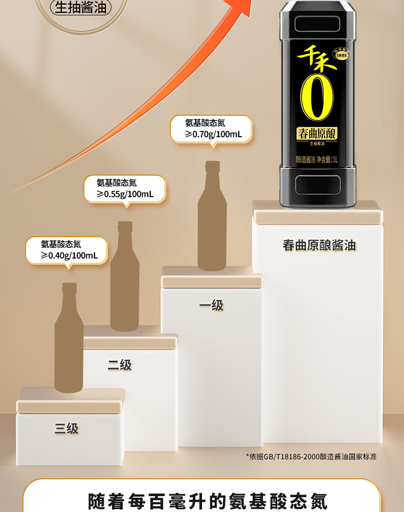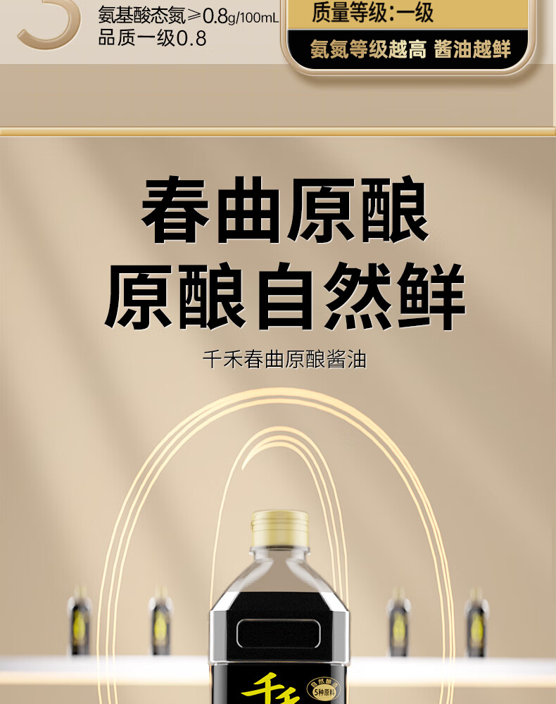 千禾 春曲原酿 生抽酱油 1L【0添加一级生抽】炒菜凉拌家用调料家用