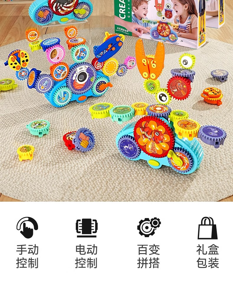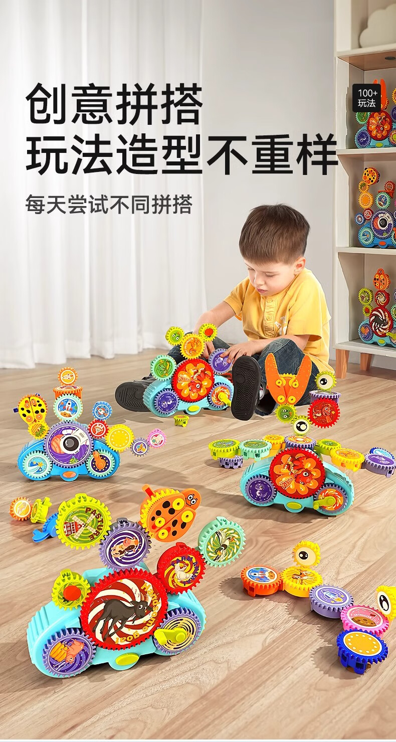 淘淘天才百变电动齿轮积木diy益智玩具男孩拼搭3-6岁2生日礼物创意