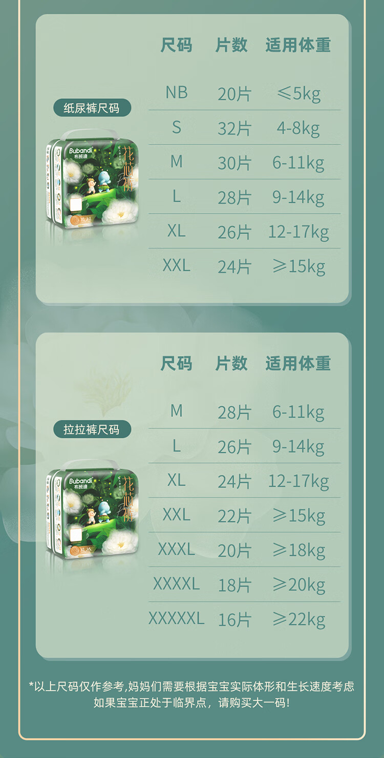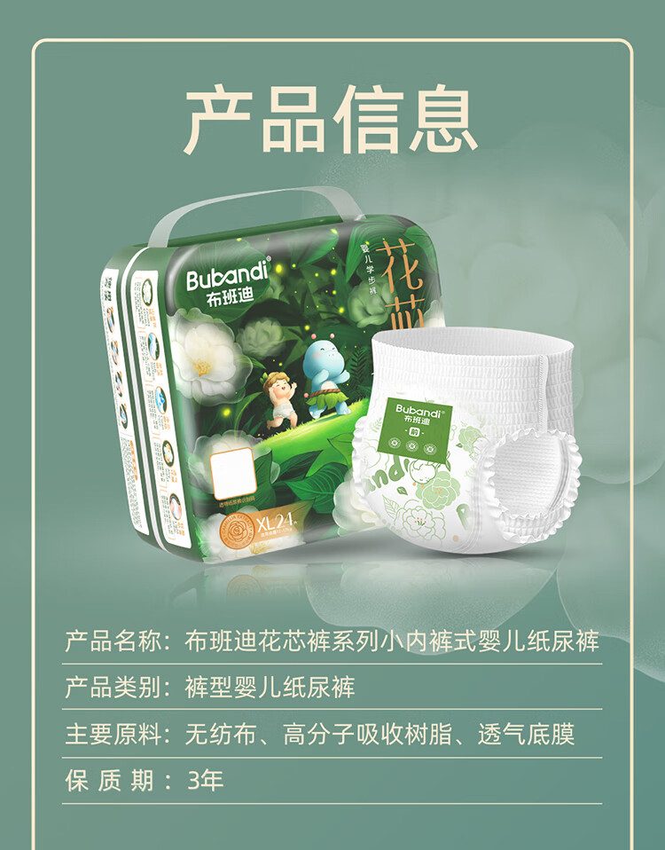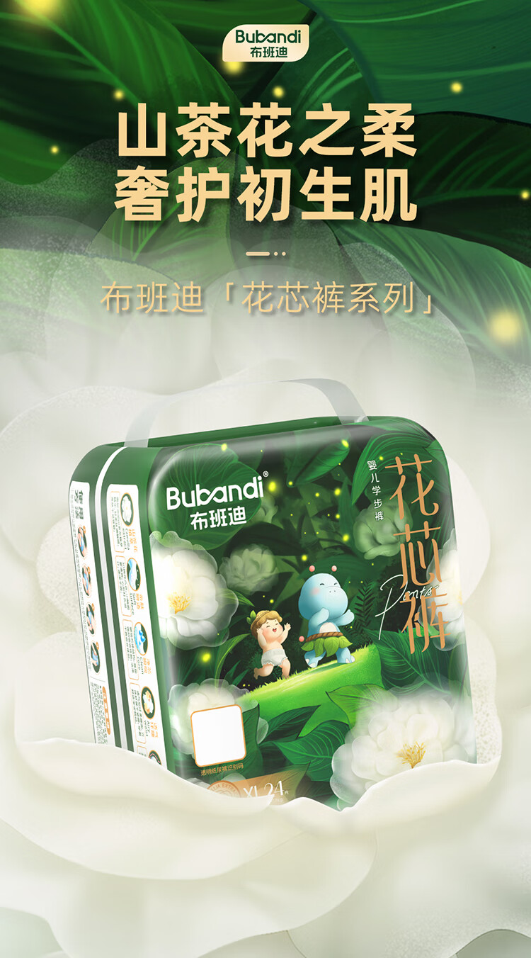 布班迪山茶花花芯裤拉拉裤XXL码88片超薄透气男女宝通用尿不湿