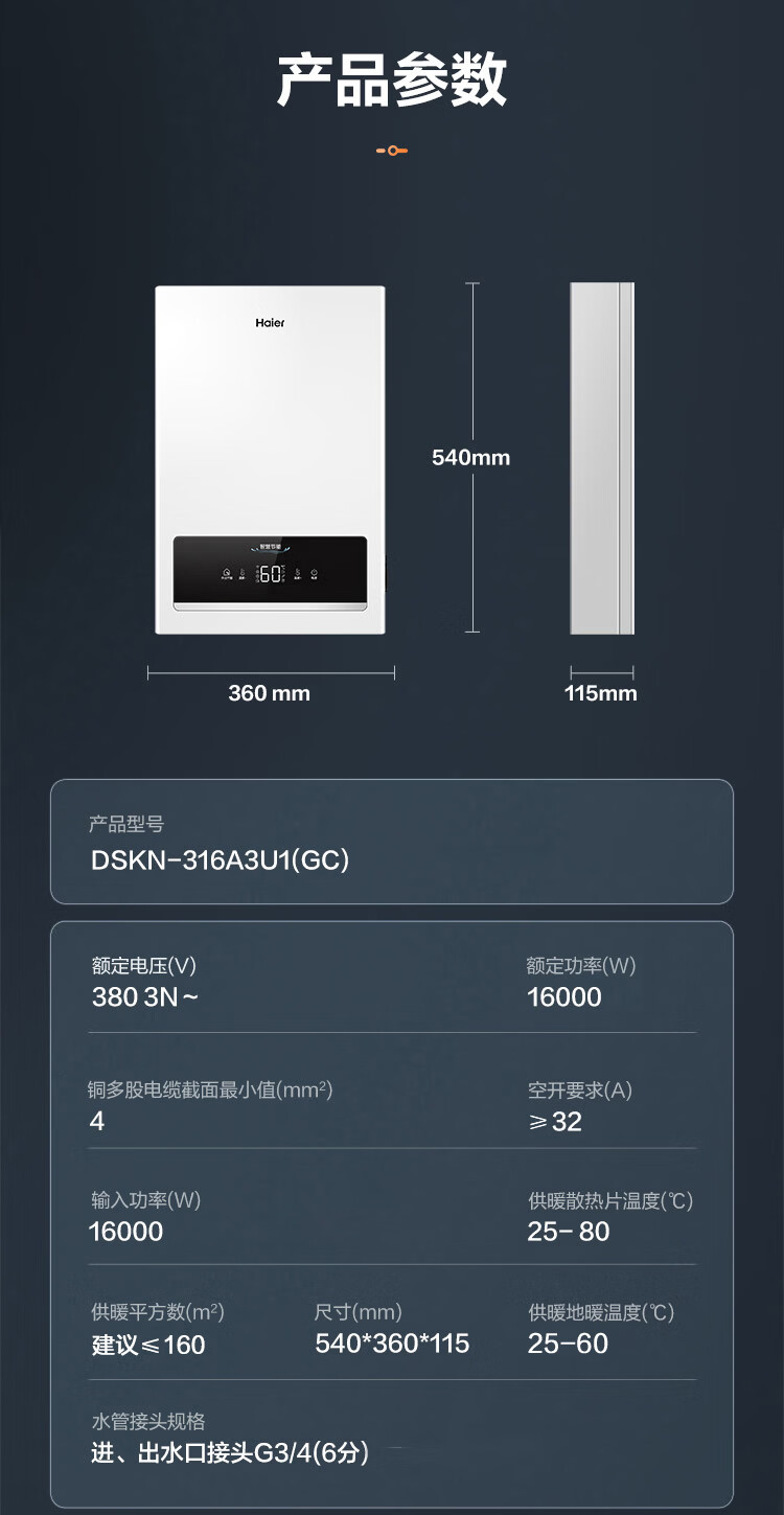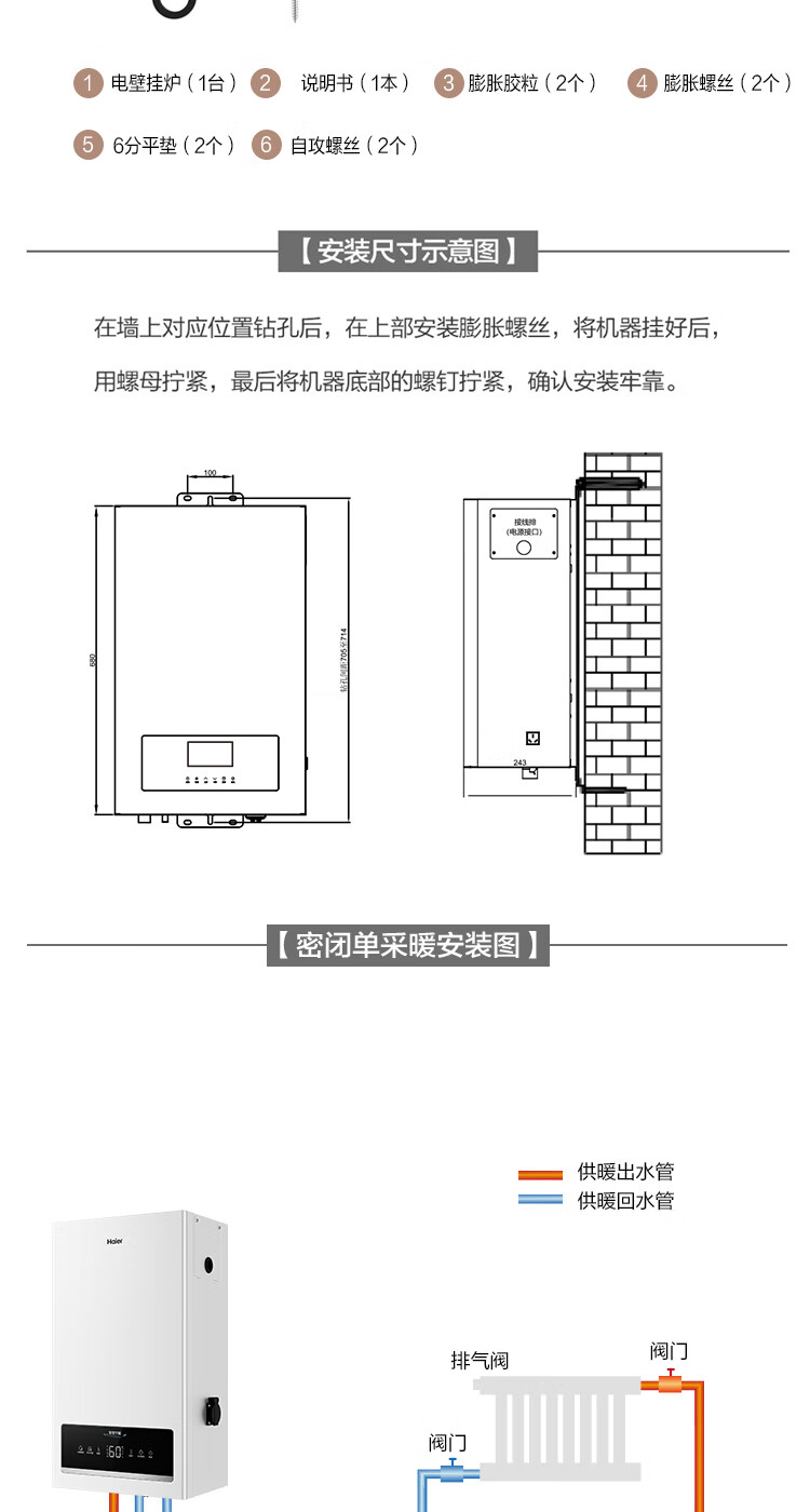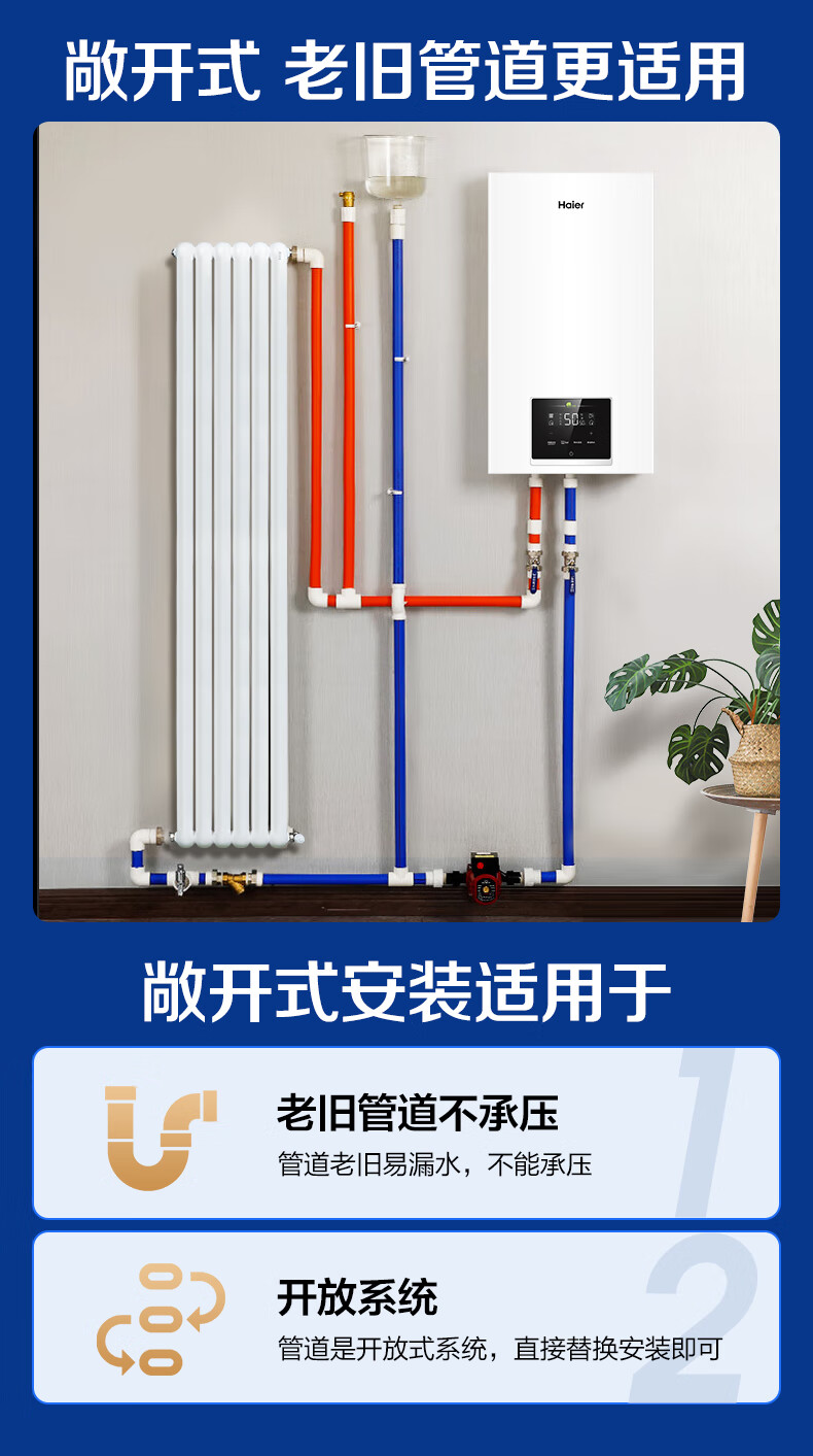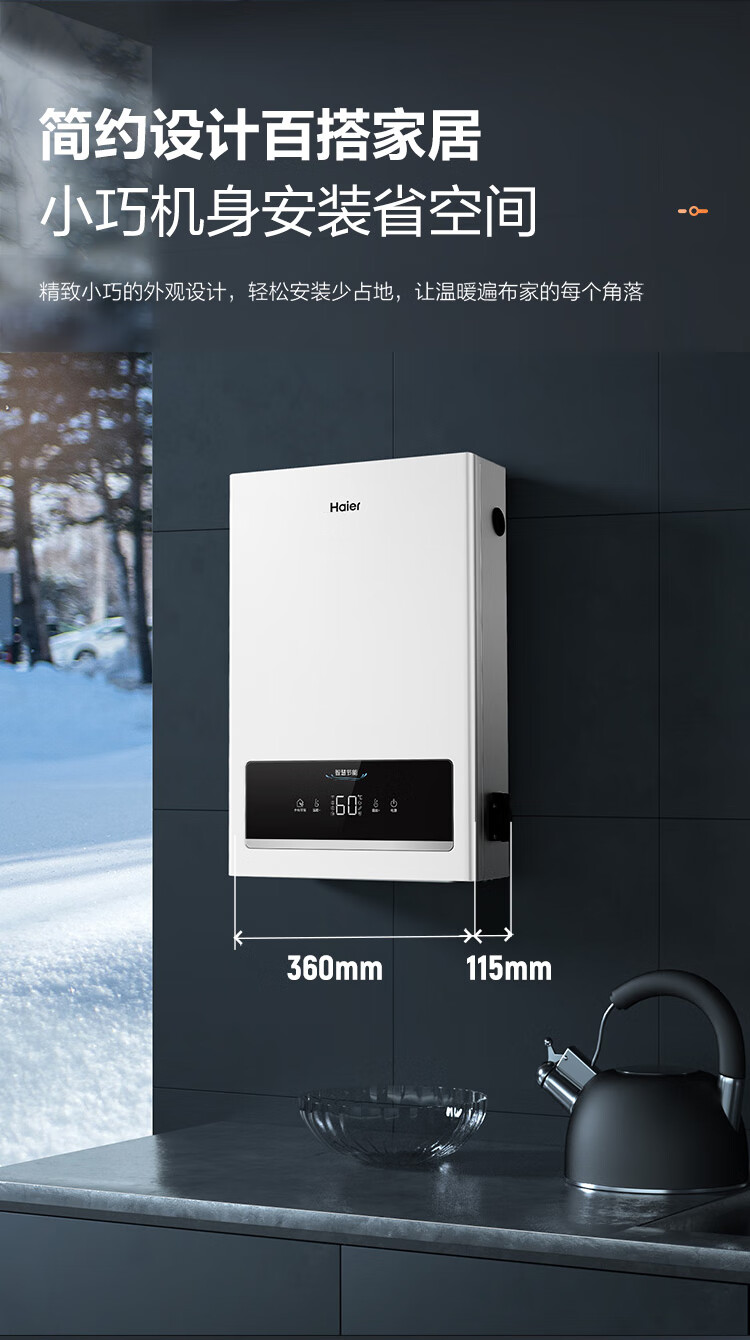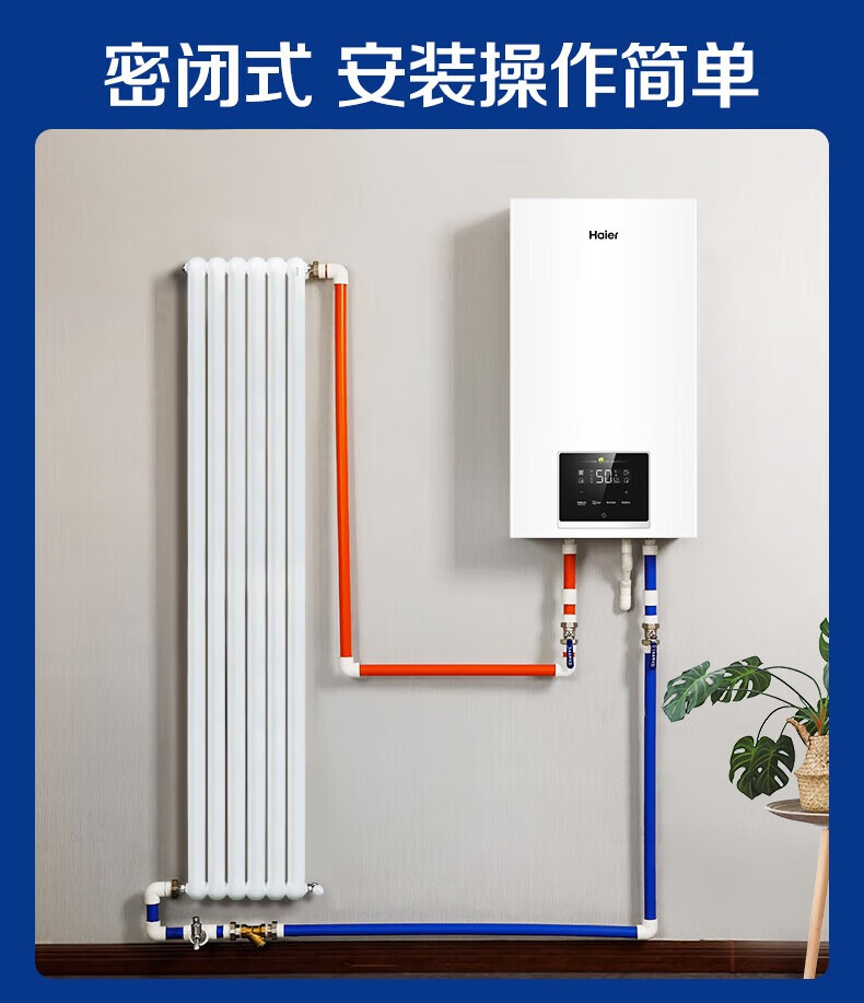 海尔(Haier)电壁挂炉采暖炉带暖气片带地暖电锅炉农村家用220v取暖用智能变频节能农村家用380v远程控制电锅炉 16KW适用121-160平【封闭式-380v】
