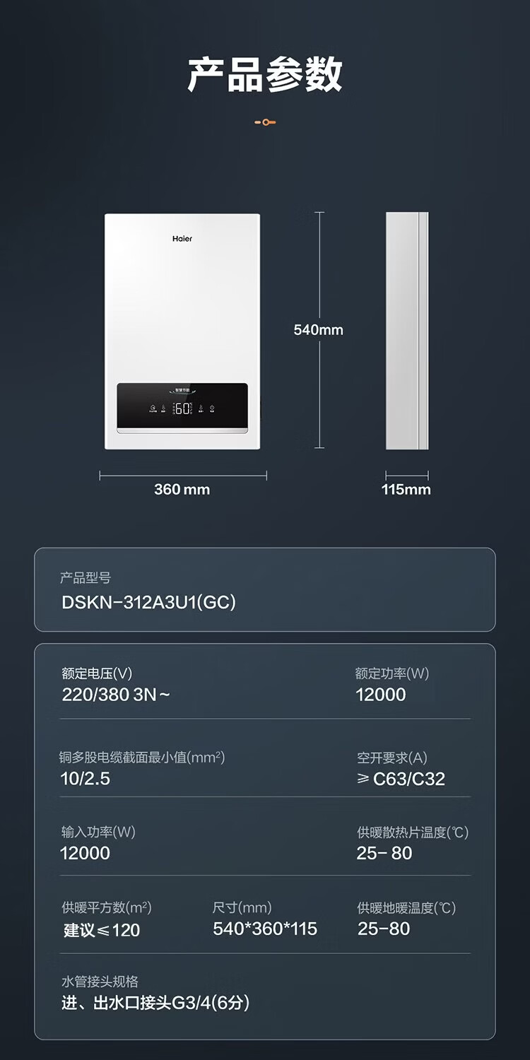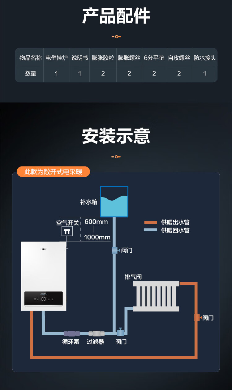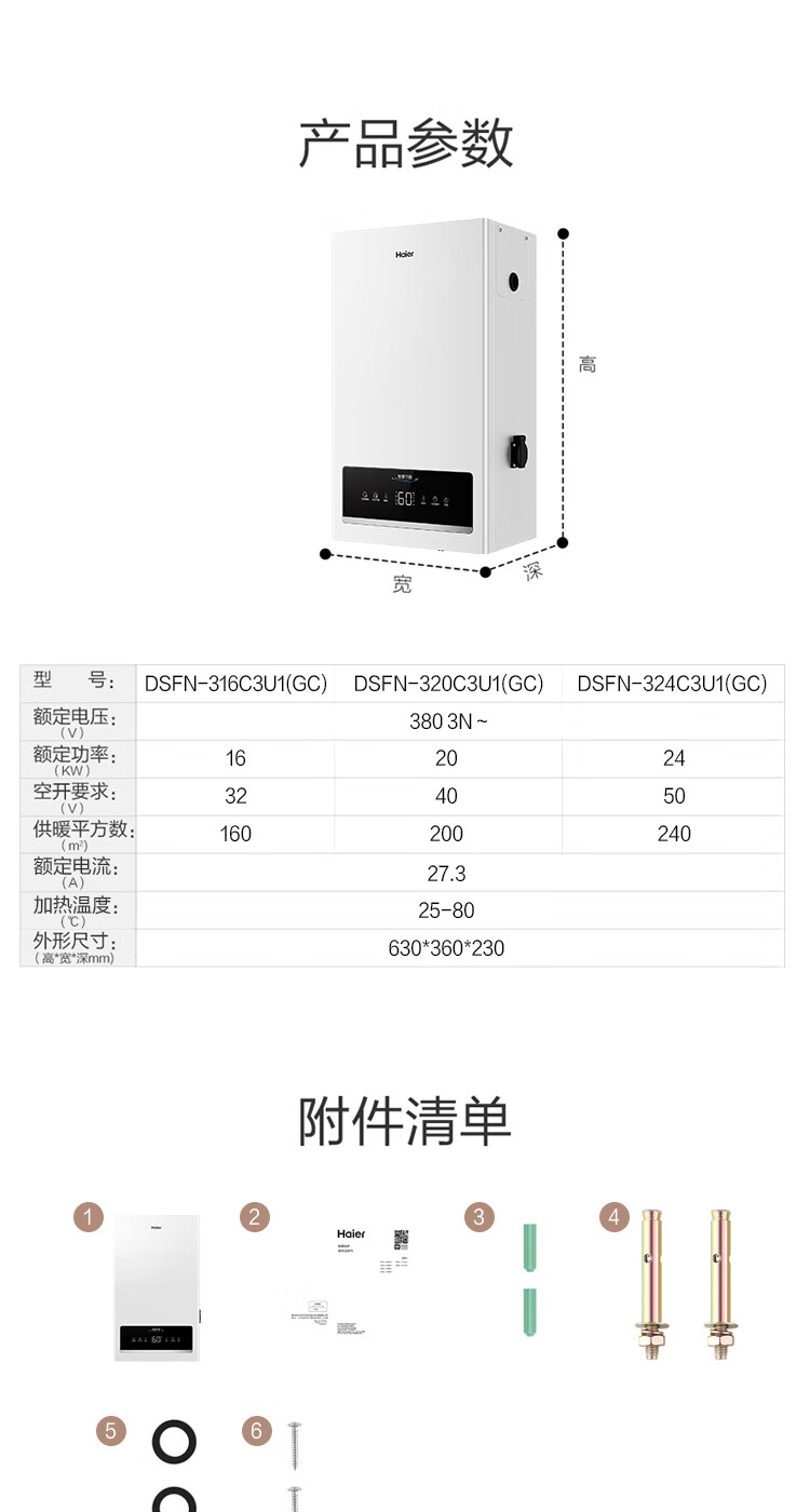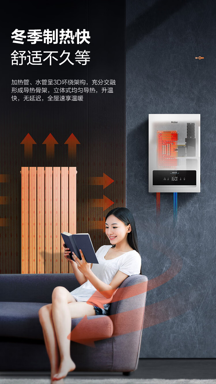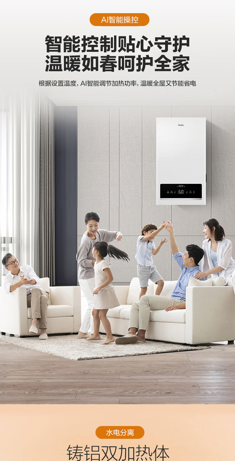 海尔(Haier)电壁挂炉采暖炉带暖气片带地暖电锅炉农村家用220v取暖用智能变频节能农村家用380v远程控制电锅炉 16KW适用121-160平【封闭式-380v】
