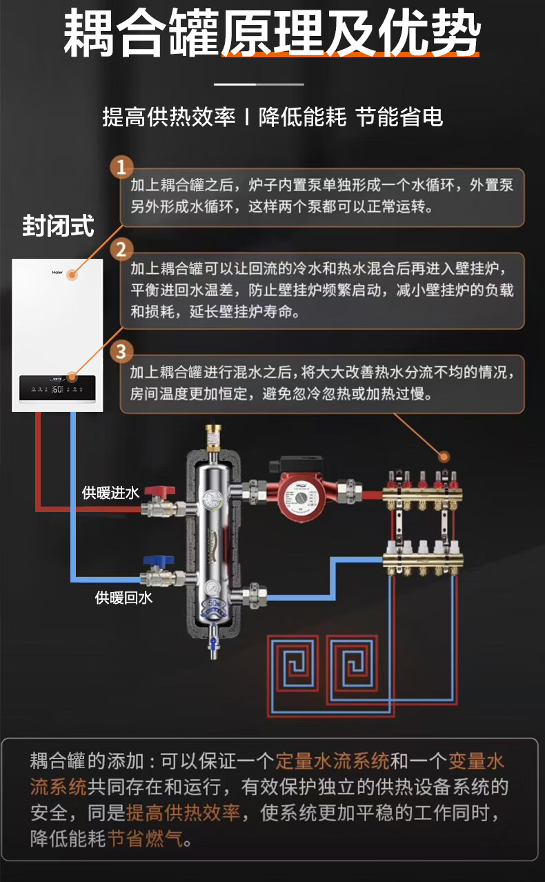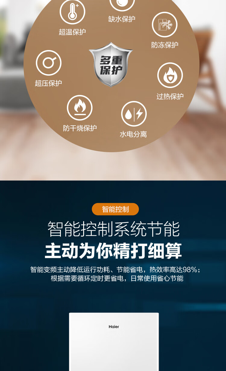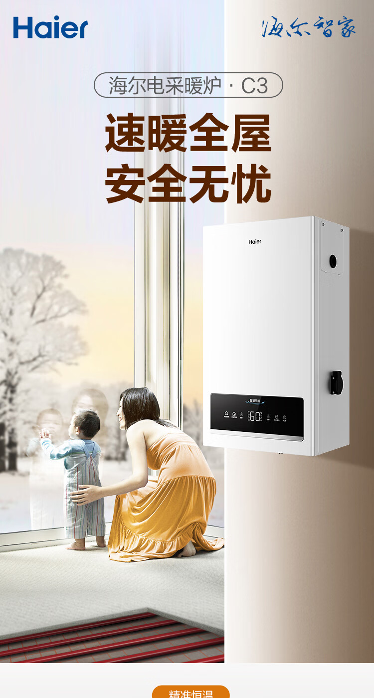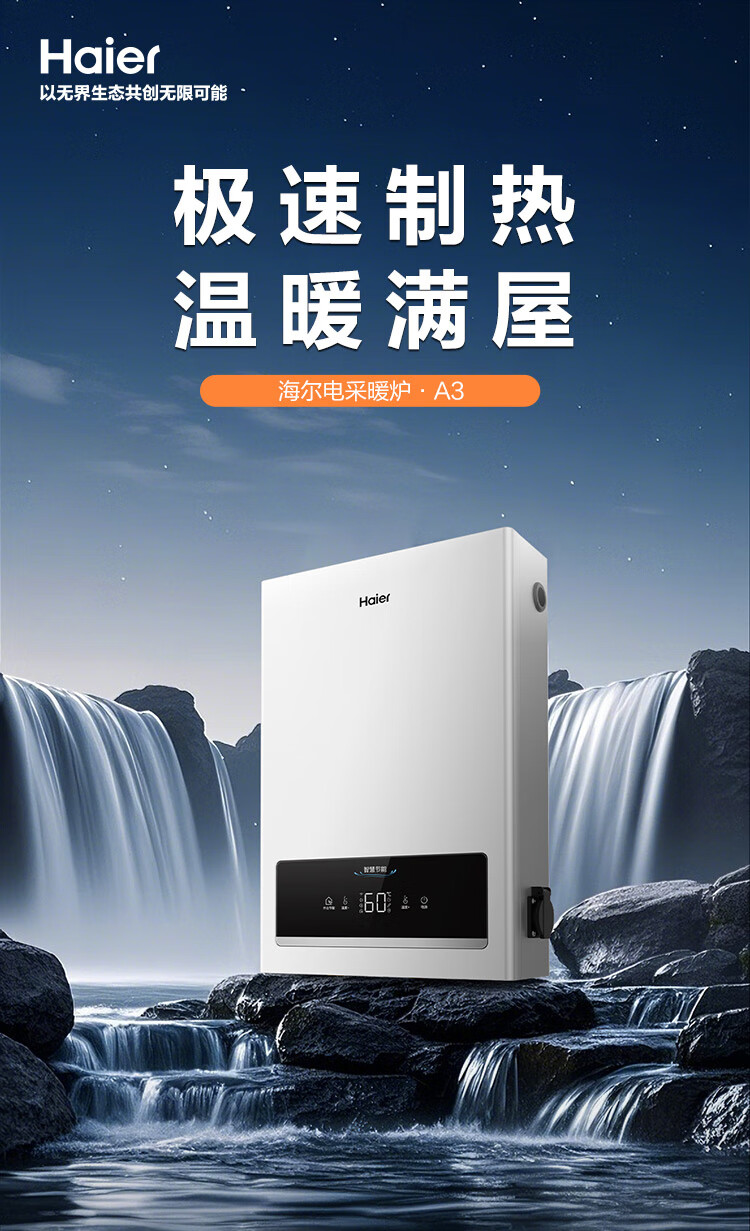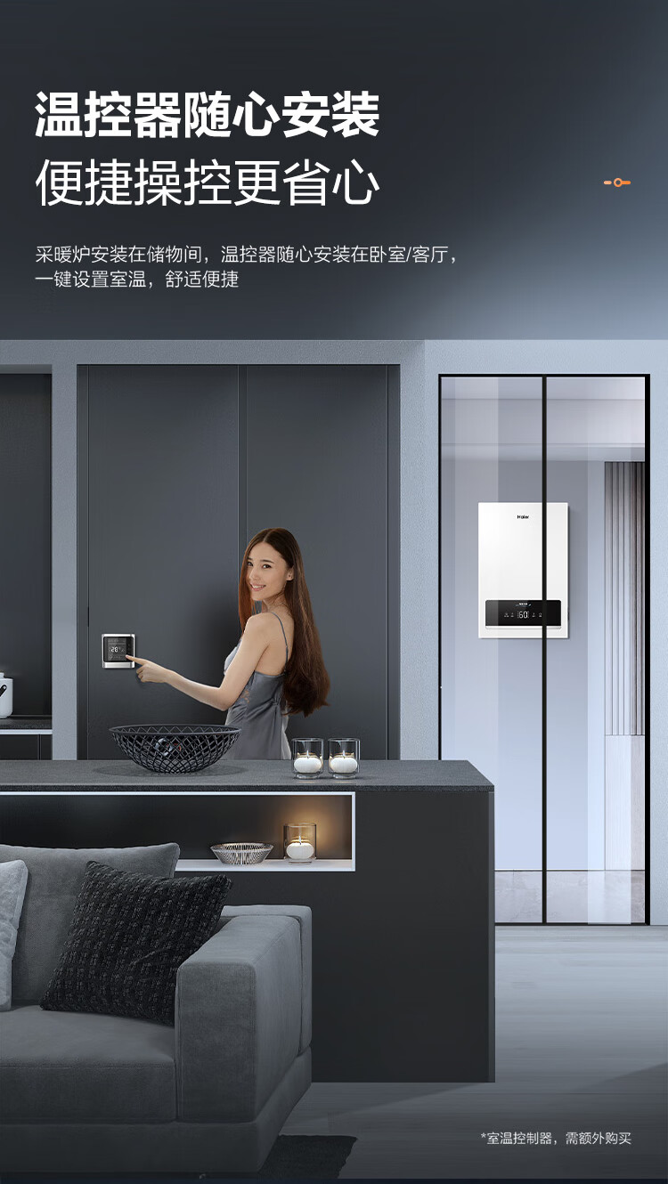 海尔(Haier)电壁挂炉采暖炉带暖气片带地暖电锅炉农村家用220v取暖用智能变频节能农村家用380v远程控制电锅炉 16KW适用121-160平【封闭式-380v】
